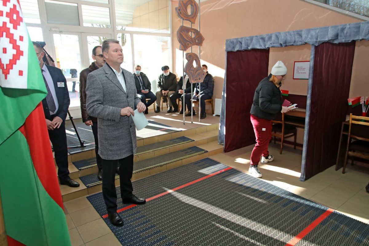 Председатель Бобруйского городского исполнительного комитета Александр Студнев проголосовал на республиканском референдуме по изменениям и дополнениям в Конституцию Беларуси на участке №27.