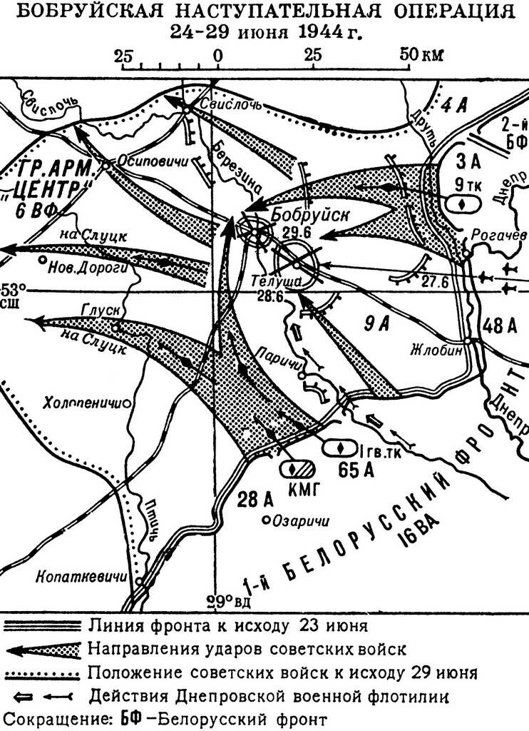 К июню 1944 года захватчики в нашем городе были готовы отчаянно, всеми силами и средствами, обороняться как с востока, так и с юга. Никакой отход из Бобруйска, превращенного в неприступную крепость, ими не допускался ни в коем случае. Позднее захваченный в плен командир немецкого 35-го армейского корпуса барон фон Лютцов признавался: «Корпус имел задачу упорно обороняться. Отход не предусматривался никакими планами». Но действительность опровергла намерения.