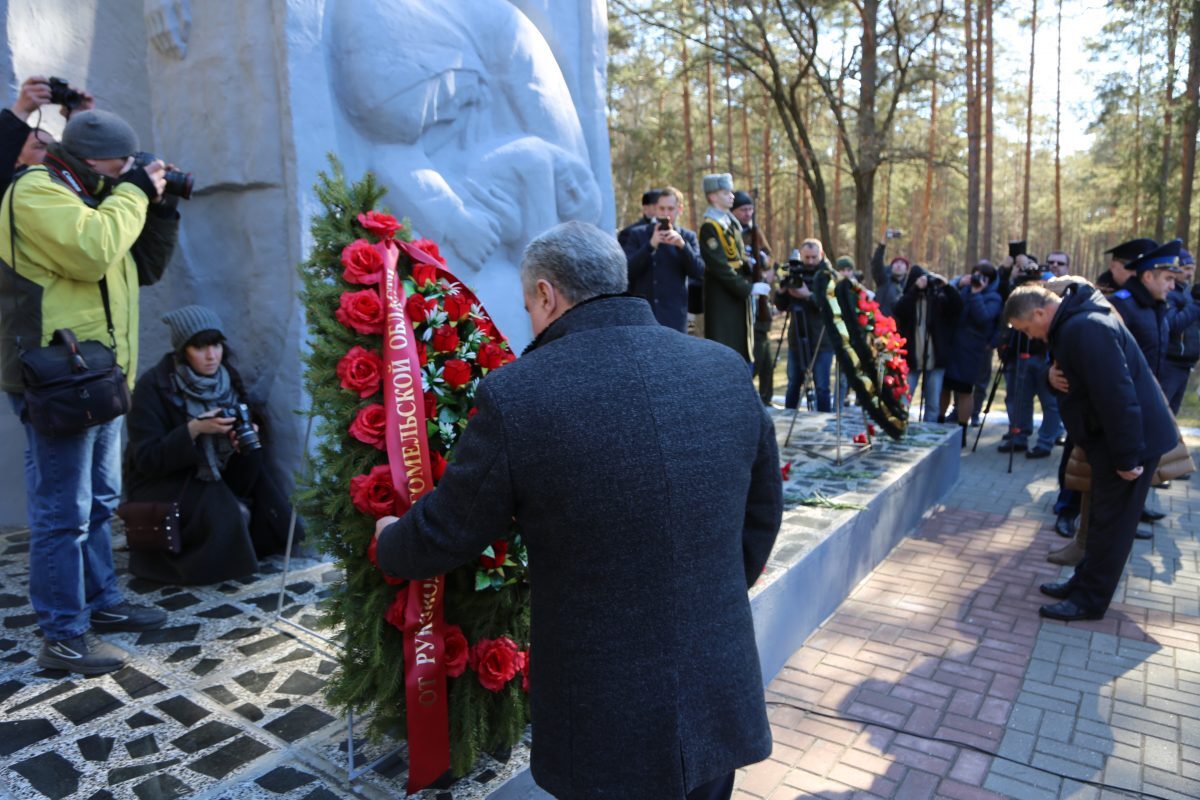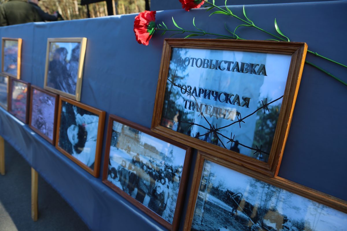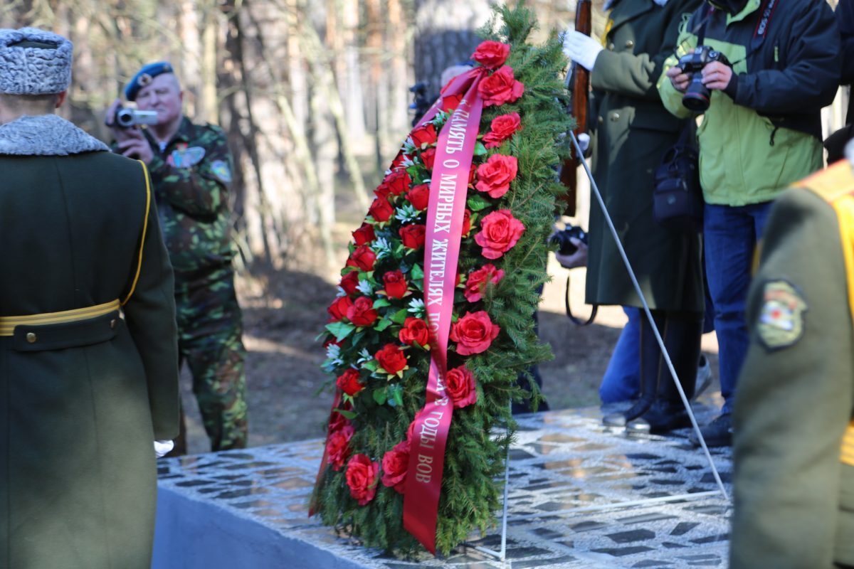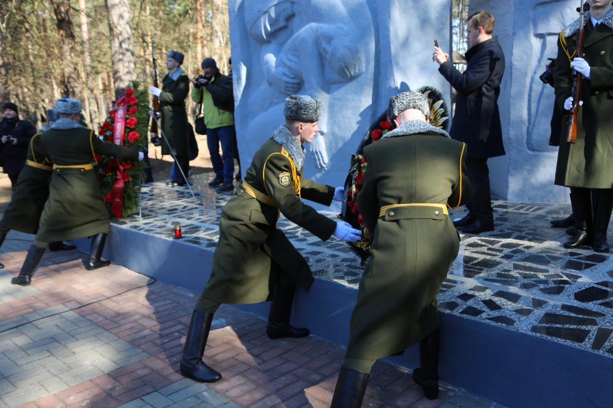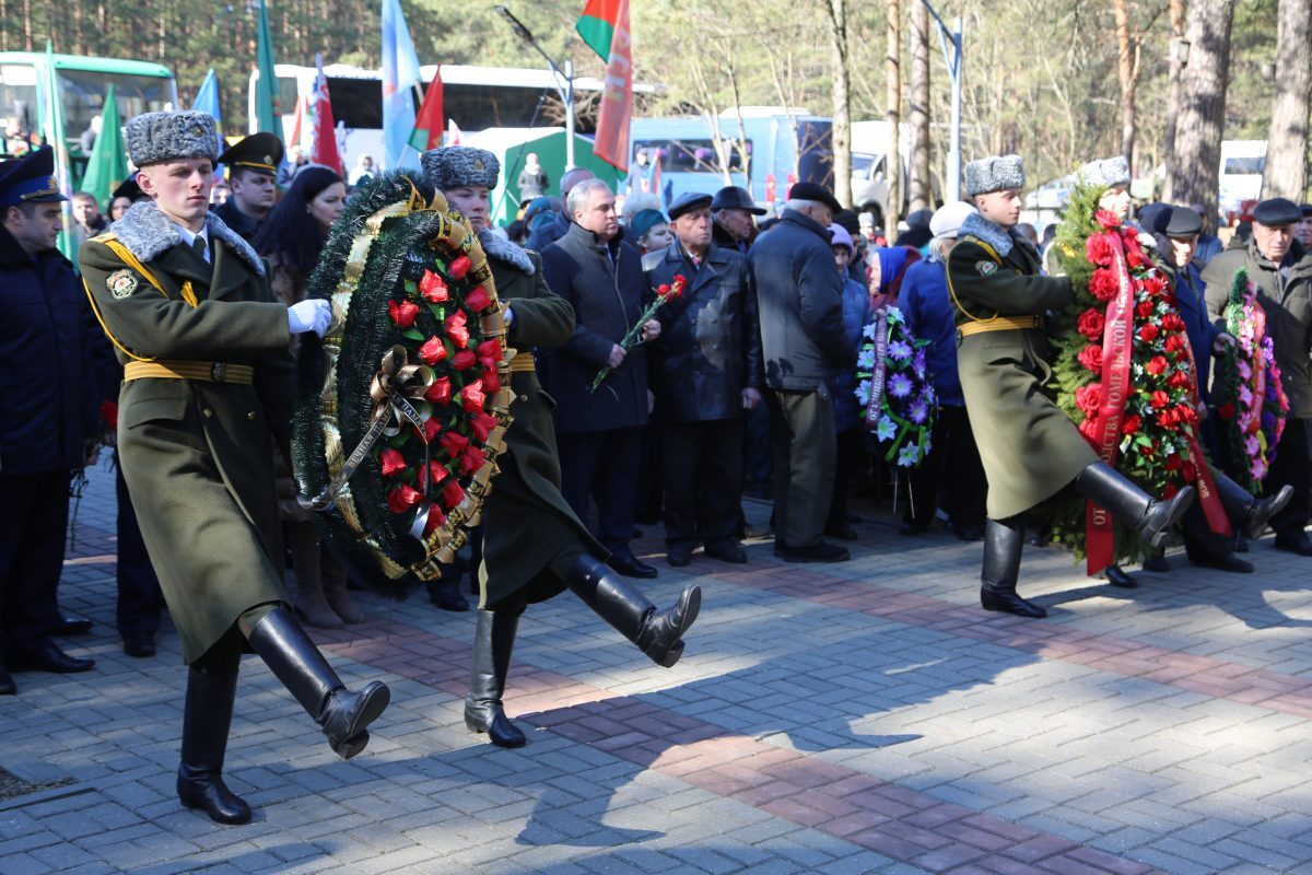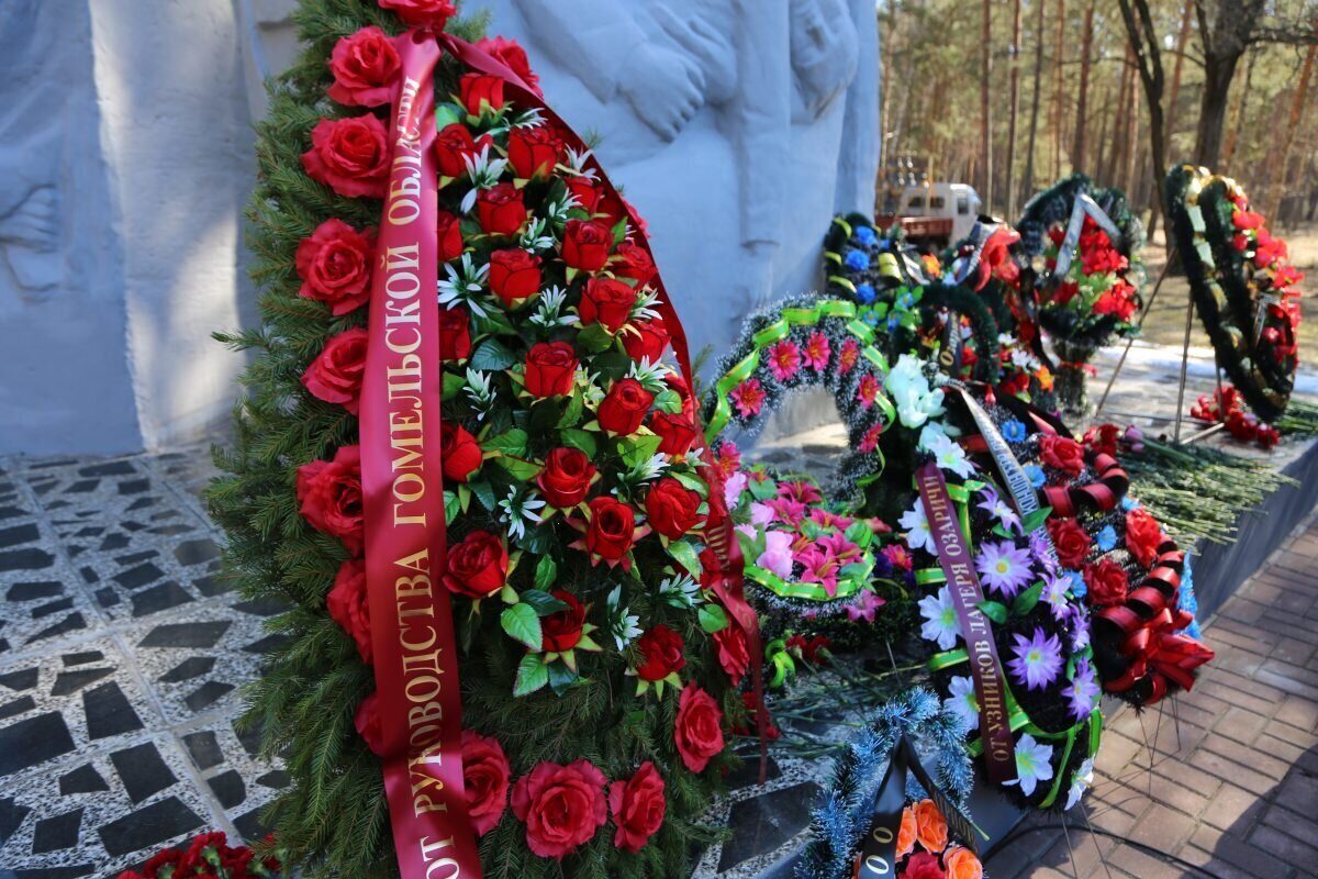 Участники мероприятия почтили память тысяч мирных жителей, погибших в Озаричах, минутой молчания, после чего возложили венки и цветы к мемориальному комплексу.