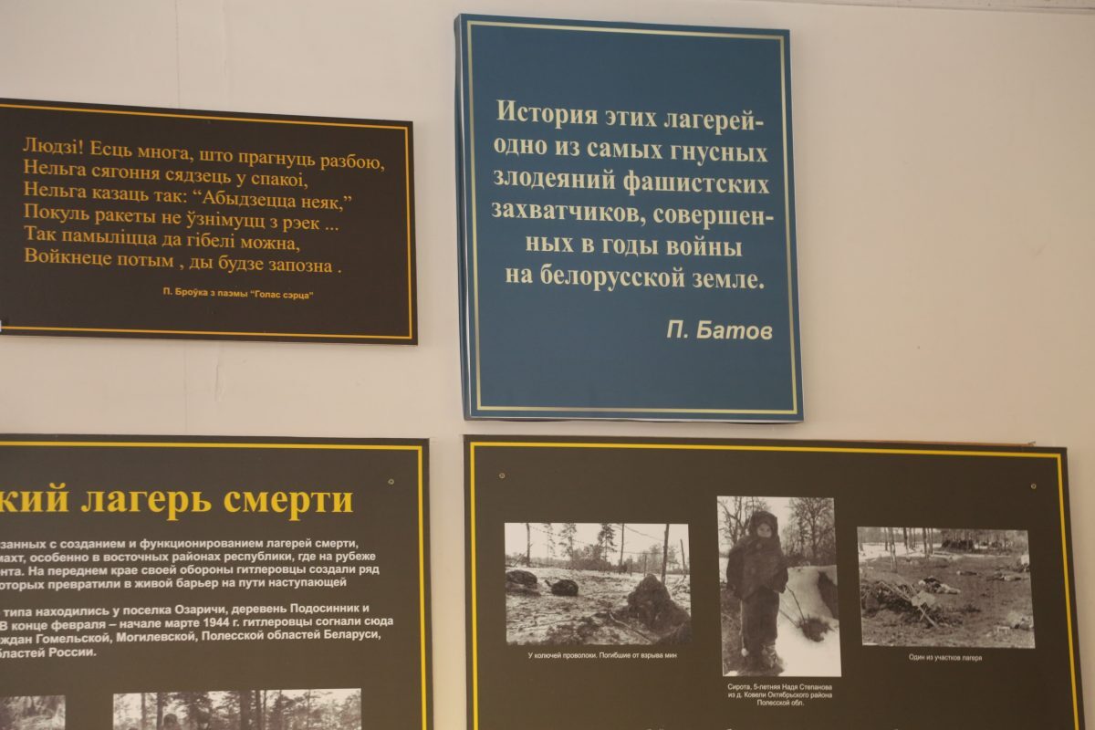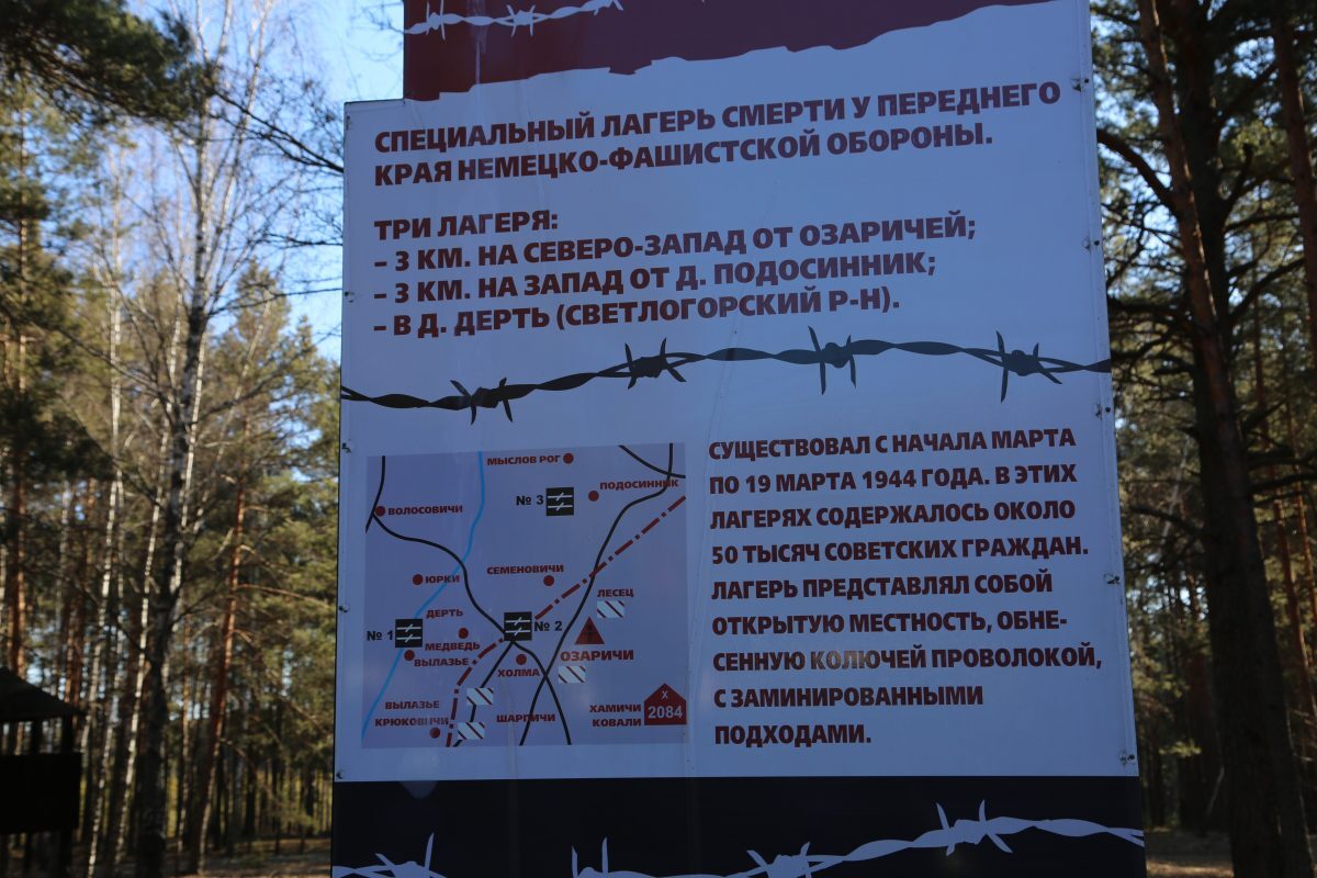 – Перед посещением мемориального комплекса мы побывали в музее памяти жертв концлагеря «Озаричи», а по возвращении в Бобруйск заехали в мемориальный комплекс, созданный в честь крупномасштабной белорусской наступательной операции «Багратион», одной из крупнейших военных операций за всю историю человечества, – продолжил Александр Виноградов. – Молодым людям рассказали о страшных событиях, связанных с концлагерем «Озаричи», они увидели книги, написанные бывшими узниками, посмотрели на экспонаты, найденные в земле, пропитанной кровью жертв фашизма. Сегодня просто необходимо знать самим и рассказывать другим, что пришлось здесь пережить узникам, воинам-освободителям, еще раз убедиться, какой большой ценой были достигнуты освобождение и спасение узников, и понять, что нам есть что беречь и что отстаивать. Факты геноцида должны помочь молодому поколению понять, что взаимопонимания в обществе можно достичь, только когда истинное зло будет названо злом.