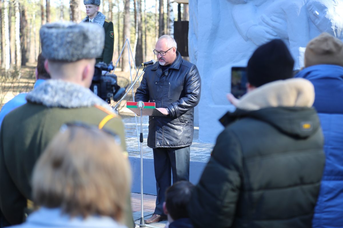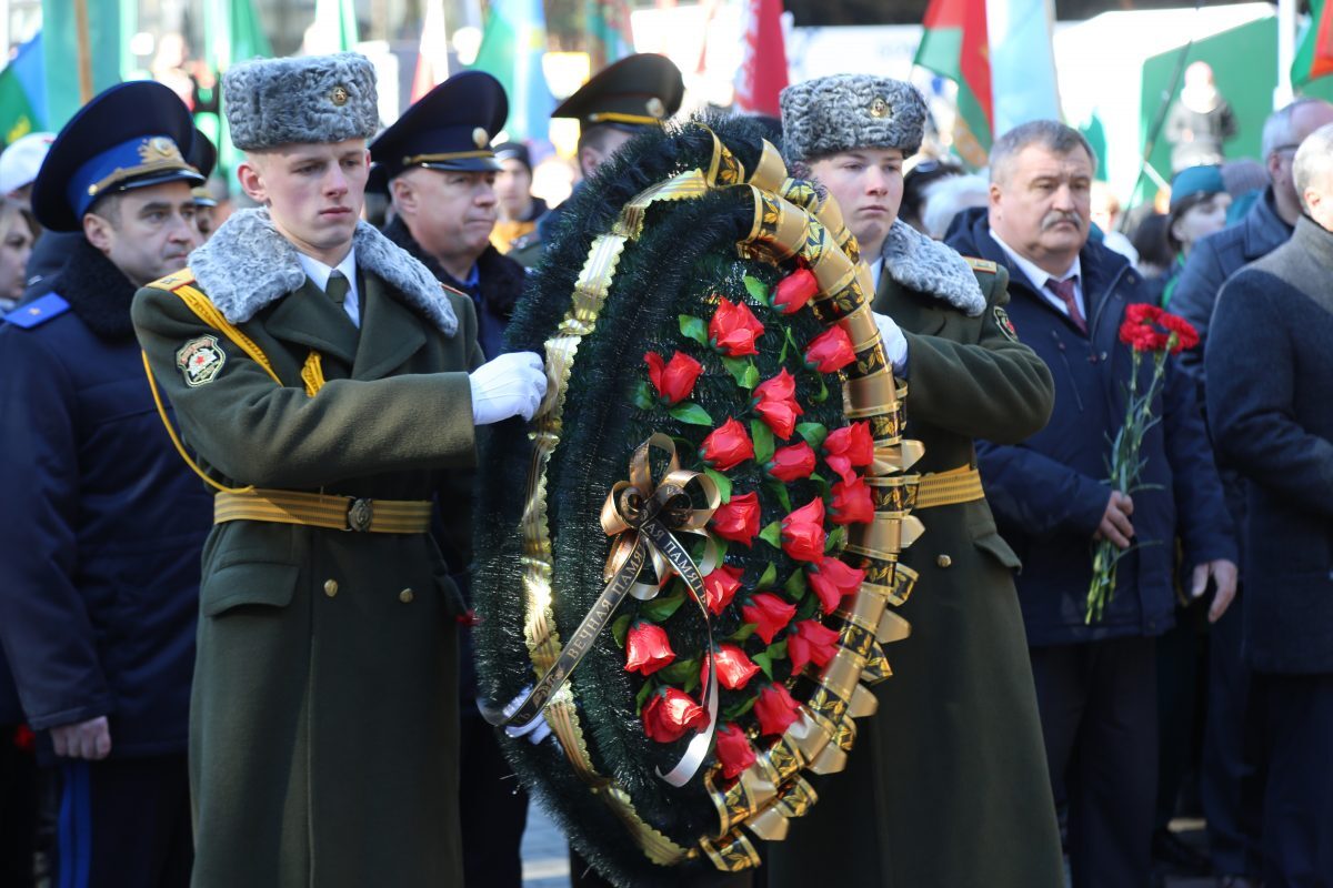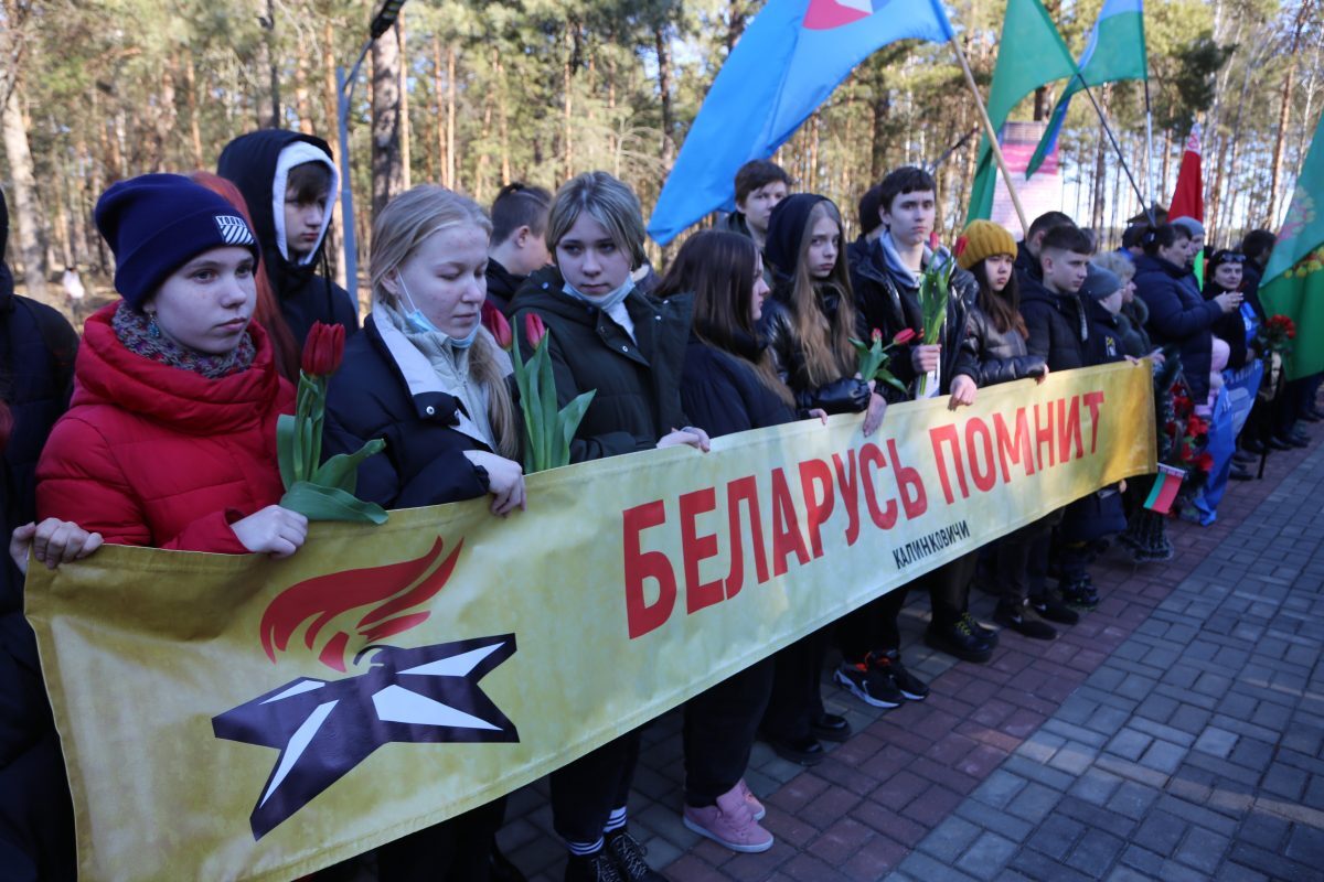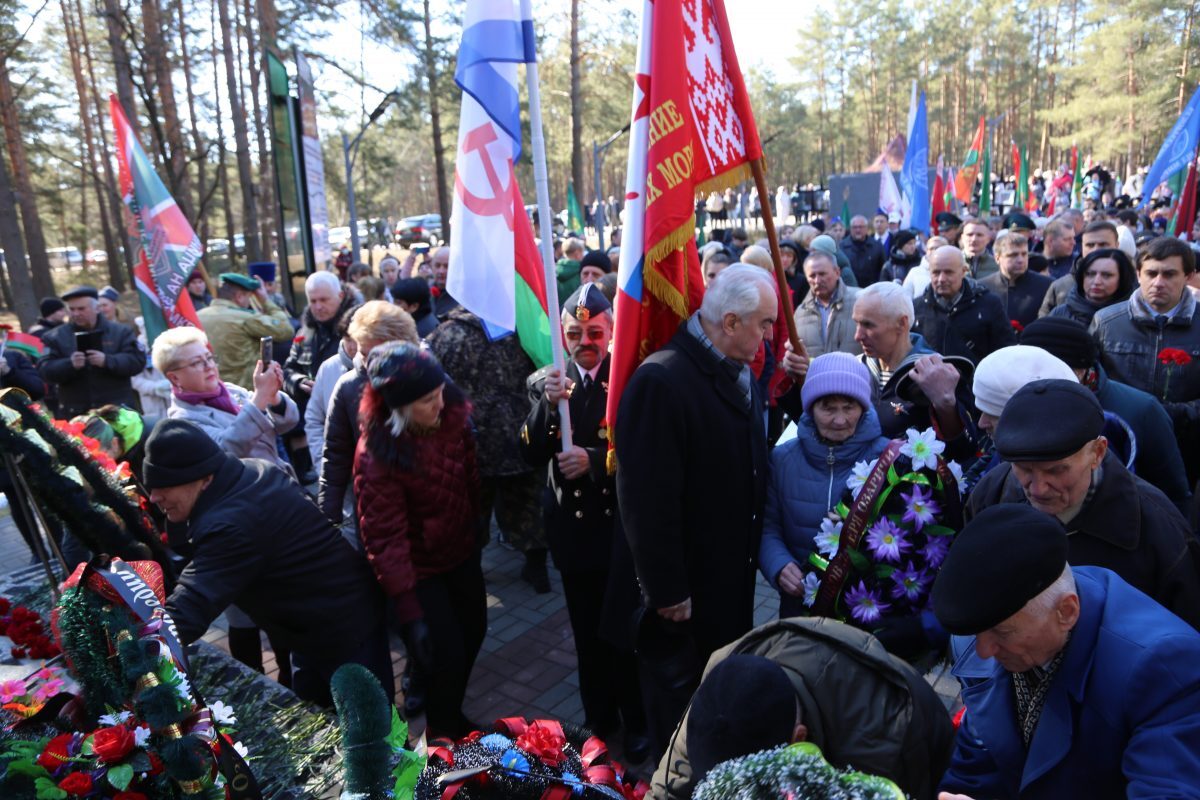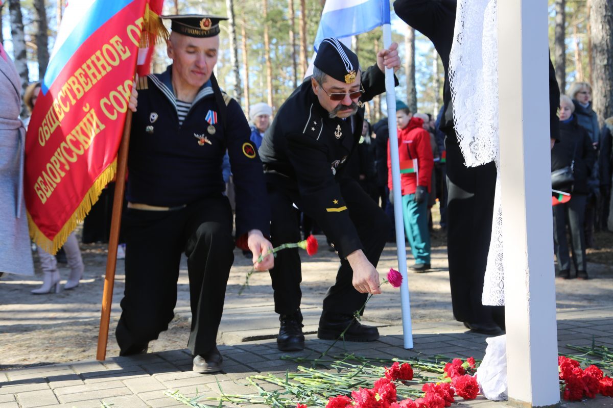 В митинге-реквиеме приняли участие патриоты из города на Березине: председатель Бобруйской городской организации общественного объединения «Белорусский союз военных моряков» Сергей Стрельцов вместе с моряками – старшиной первой статьи Михаилом Белявским, мичманом Владимиром Майданником, председатель Совета Могилевской областной организации общественного объединения «Белорусский союз офицеров» Александр Виноградов, ветеран 103-й Витебской отдельной гвардейской воздушно-десантной дивизии Владимир Каковка, ветераны пограничных войск Роман Мирошниченко, Виктор Рудковский, Олег Мазуренко, заместитель директора по воспитательной работе ГУО «Средняя школа №9 г. Бобруйска», член первичной профсоюзной организации Мария Евдокимчева с педагогическим коллективом и учащимися 9 «А» и «Б» классов.