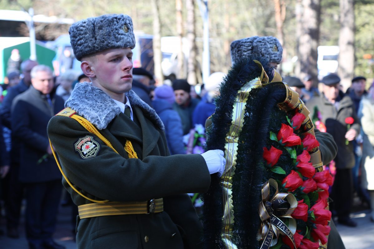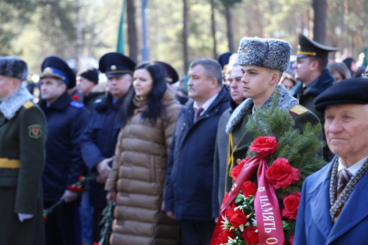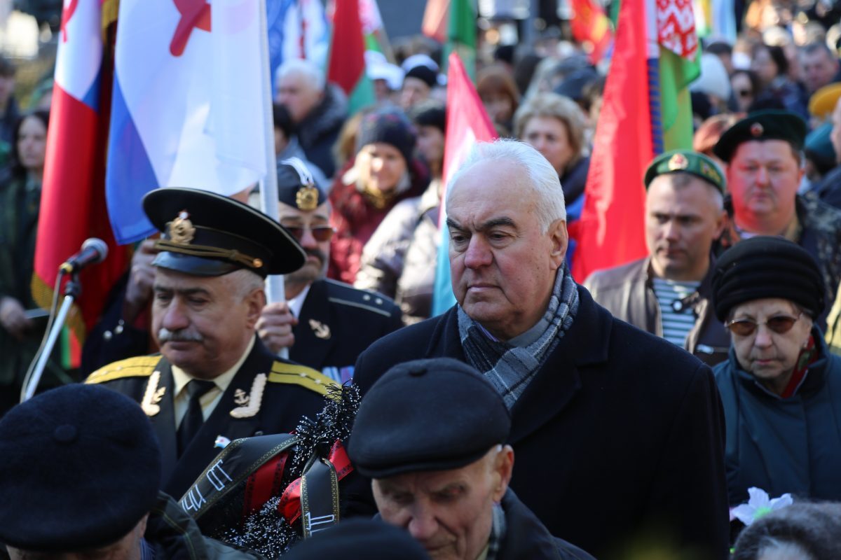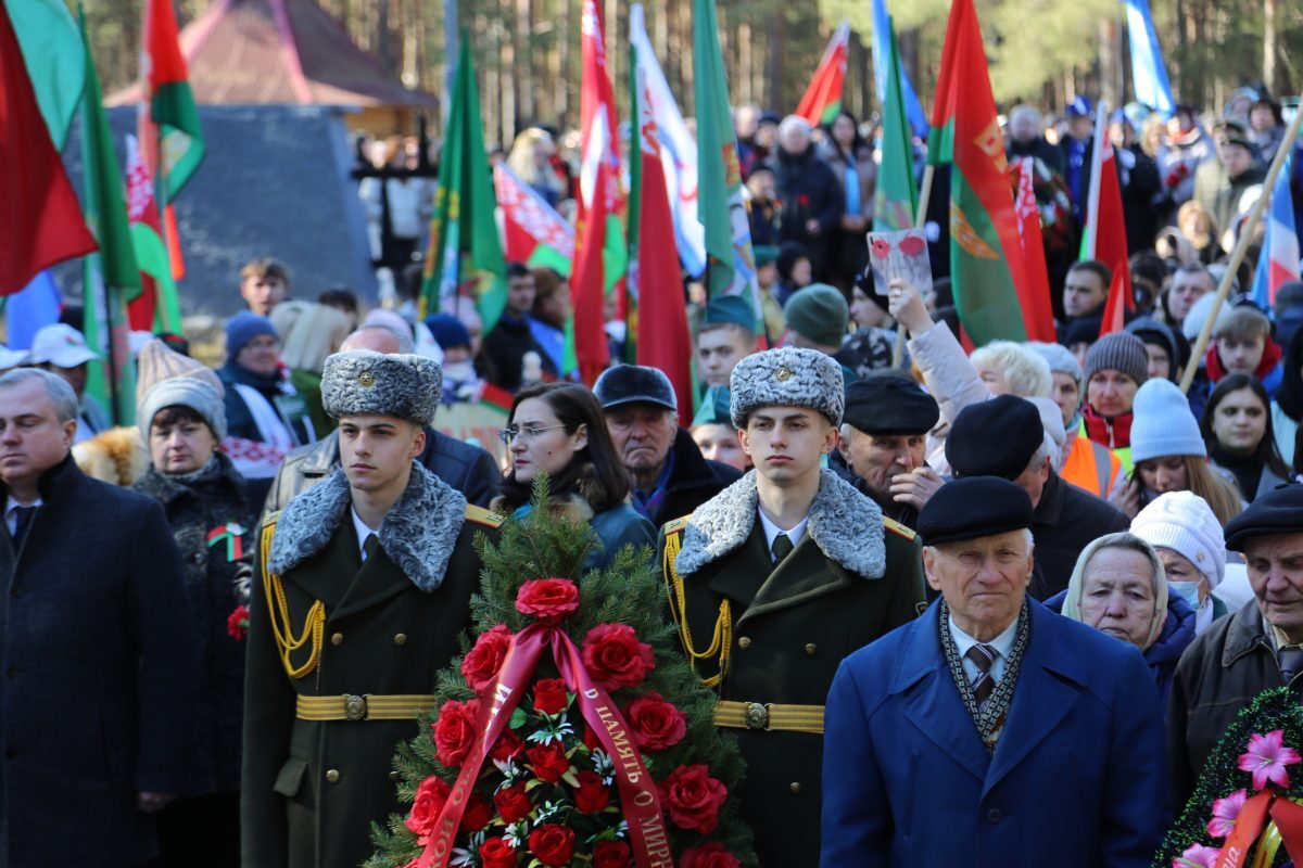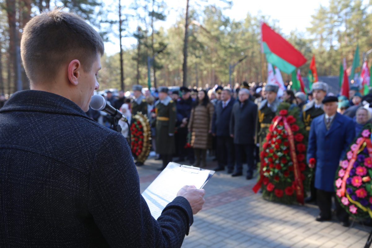 В митинге-реквиеме приняли участие патриоты из города на Березине: председатель Бобруйской городской организации общественного объединения «Белорусский союз военных моряков» Сергей Стрельцов вместе с моряками – старшиной первой статьи Михаилом Белявским, мичманом Владимиром Майданником, председатель Совета Могилевской областной организации общественного объединения «Белорусский союз офицеров» Александр Виноградов, ветеран 103-й Витебской отдельной гвардейской воздушно-десантной дивизии Владимир Каковка, ветераны пограничных войск Роман Мирошниченко, Виктор Рудковский, Олег Мазуренко, заместитель директора по воспитательной работе ГУО «Средняя школа №9 г. Бобруйска», член первичной профсоюзной организации Мария Евдокимчева с педагогическим коллективом и учащимися 9 «А» и «Б» классов.