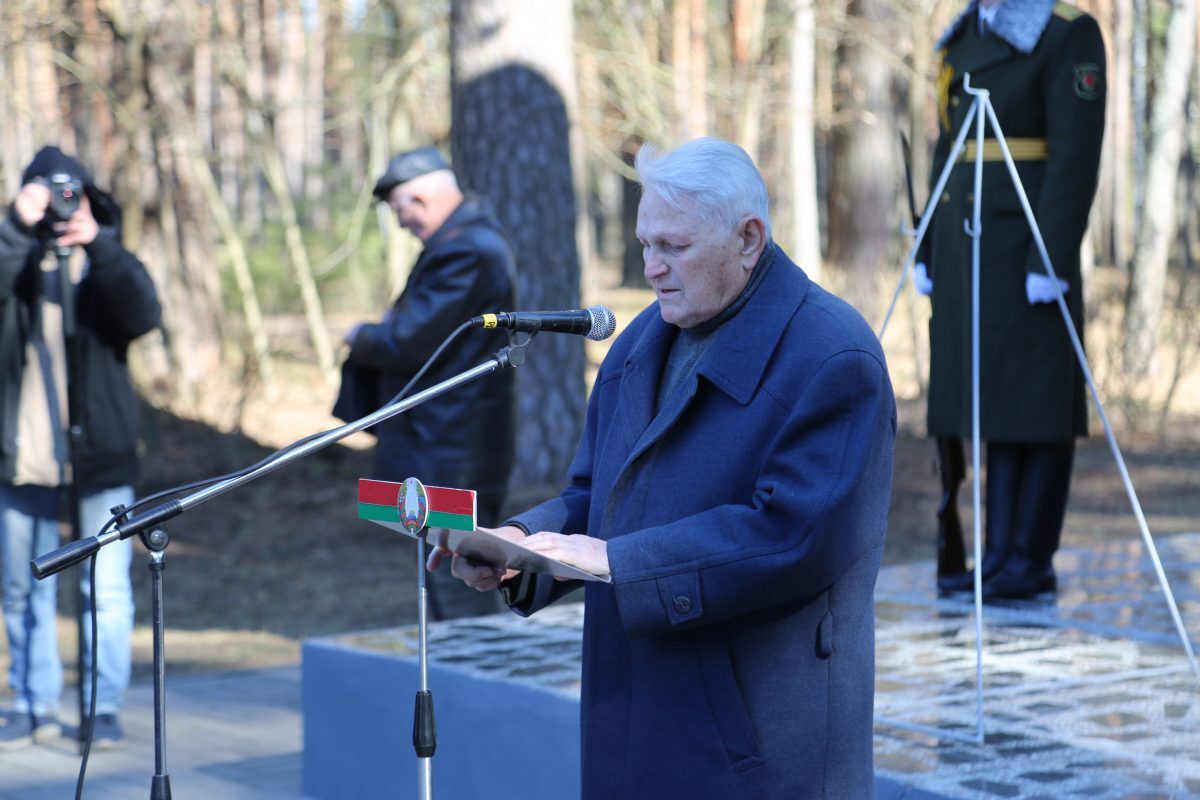 – Мы приехали сюда из Бобруйска, чтобы отдать дань памяти, уважения и чести, – рассказал Владимир Каковка. – Здесь у меня всегда появляются слезы. Почему? Потому что мой отец ребенком был здесь со своей мамой. Я привозил его сюда позднее – в 1982 году. Он всегда говорил, что многое простительно, но только не война. Моя бабушка навсегда осталась в другом конце лагеря, в этом болоте. Отцу тогда было около 14 лет, его сестренке – всего лишь пять. Я хочу сказать, что Год исторической памяти очень важен для нас. Нужно рассказывать нашим детям, внукам о тех ужасных событиях прошлых лет, нужно чтить и помнить, благодарить судьбу и быть благодарными за мирное небо нашему Президенту, за то, что он отстоял нашу святую Родину и защитил страну. Я благодарен нашим пограничникам, войскам, которые в это непростое время стоят на страже закона в боевой готовности и защищают территориальную целостность Республики Беларусь. Если мы все будем вместе, нас никто не сломает!