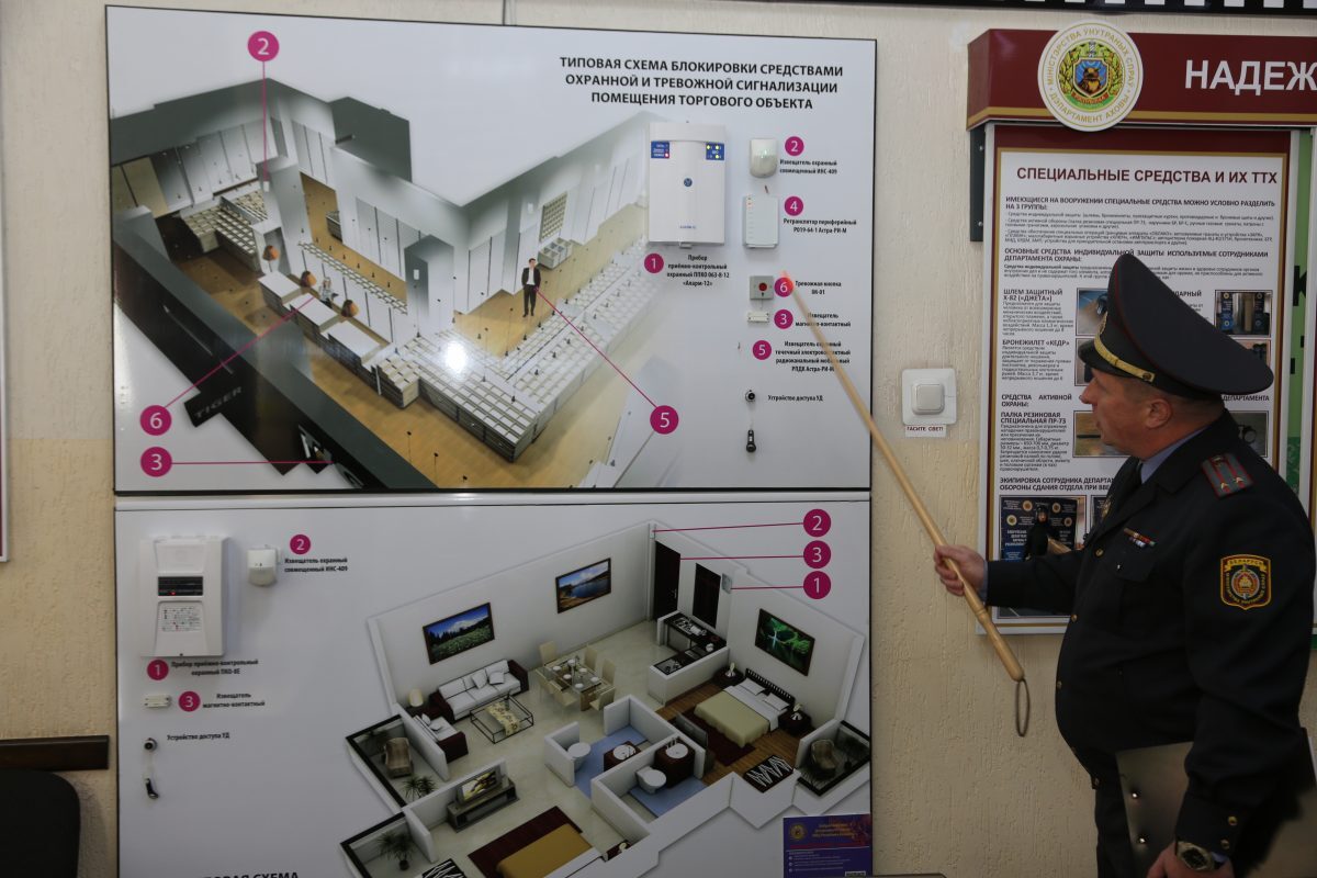 Во время визита гости побывали в здании Бобруйского отдела Департамента охраны, где для них провели небольшую экскурсию и наглядно продемонстрировали работу сотрудников при вызове на сигнал тревоги из охраняемого объекта. Показали дежурную часть и учебный класс, где проводятся служебные занятия и личный состав проходит инструктаж перед заступлением на службу. В питомнике служебных собак представители делегаций увидели, что умеют и как живут четвероногие питомцы, которые несут службу вместе с сотрудниками Департамента. Специалисты-кинологи показали элементы дрессировки, преодоление полосы препятствий и задержание условного преступника служебными собаками.