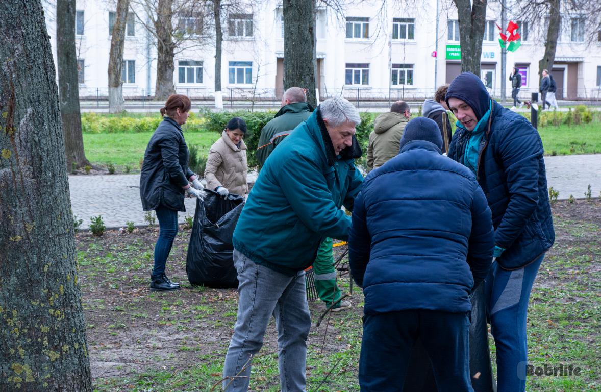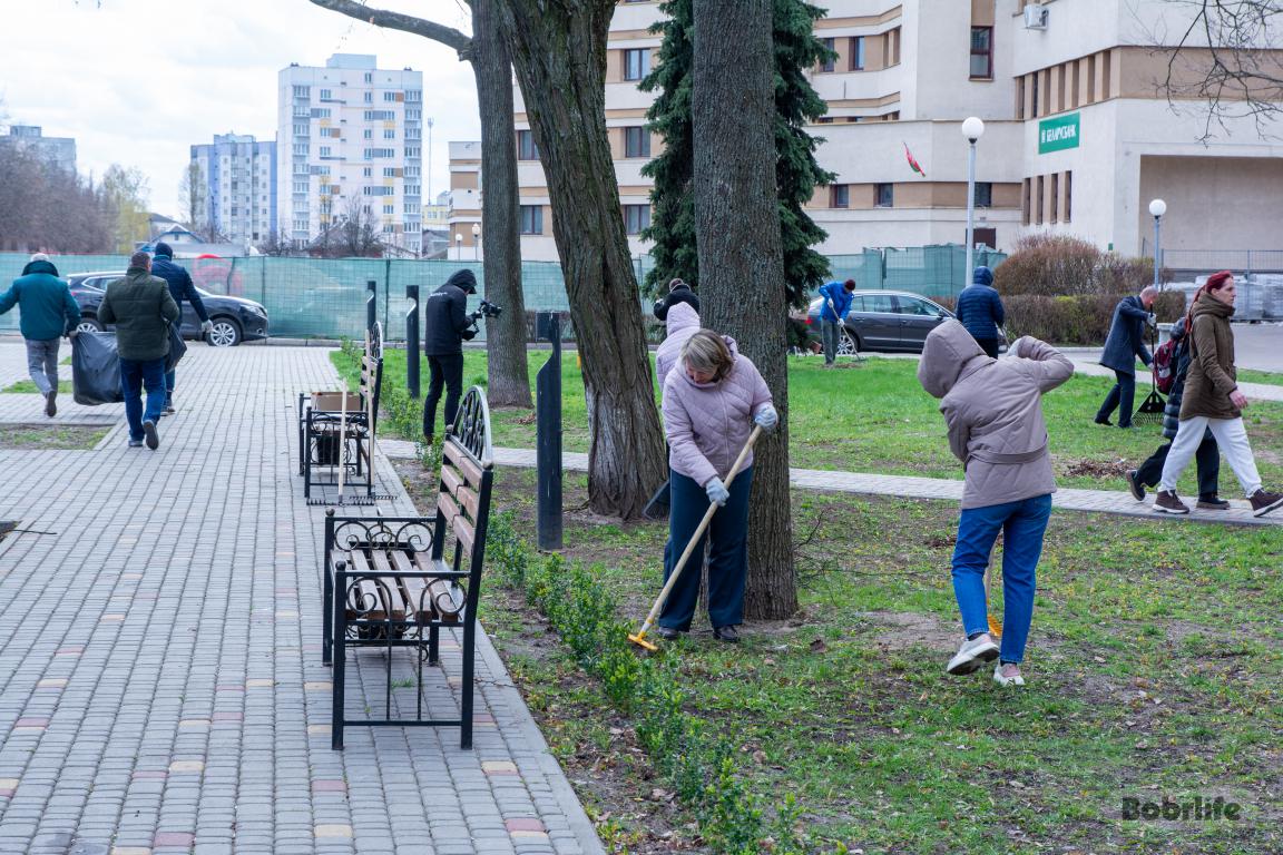 В ходе благой инициативы на уборку вышли работники ОАО «Белагропромбанк» и ЦБУ №703 ОАО «АСБ Беларусбанк». Они привели в порядок прилегающий сквер Дружбы. Порядка 40 членов трудовых коллективов, вооружившись граблями, лопатами и мешками, с азартом принялись за дело. Трудящиеся быстро убрали ветки и мусор, сгребли сухую растительность. Благодаря совместным усилиям территория быстро обрела чистый и ухоженный вид.