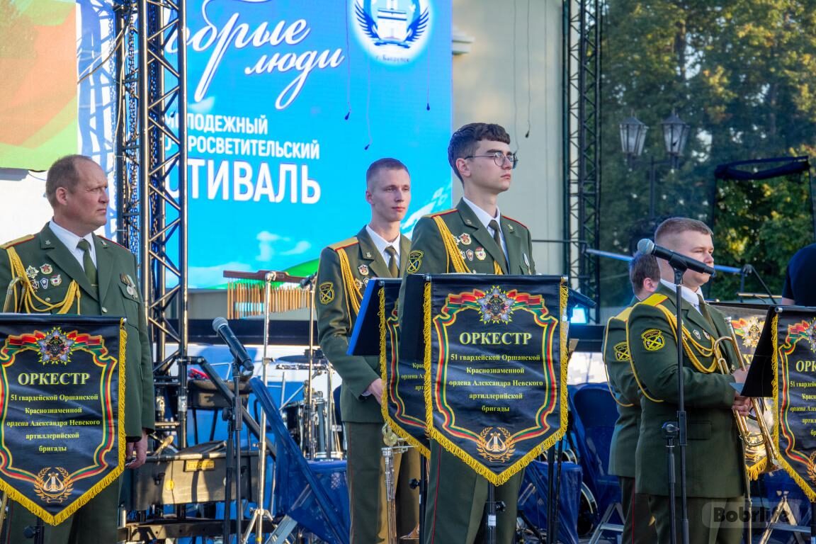 Молодежный духовно-просветительский фестиваль «Добрыя людзi» удивляет не только приятной атмосферой, но и талантами белорусов. Перед зрителями выступил духовой военный оркестр 51-й гвардейской Оршанской Краснознаменной ордена Александра Невского артиллерийской бригады из Осиповичей под руководством военного дирижера Дмитрия Федрушина.