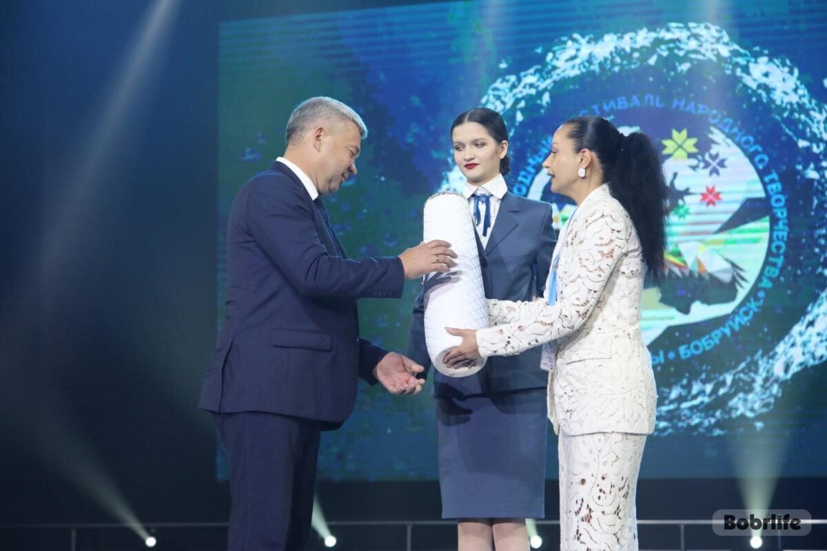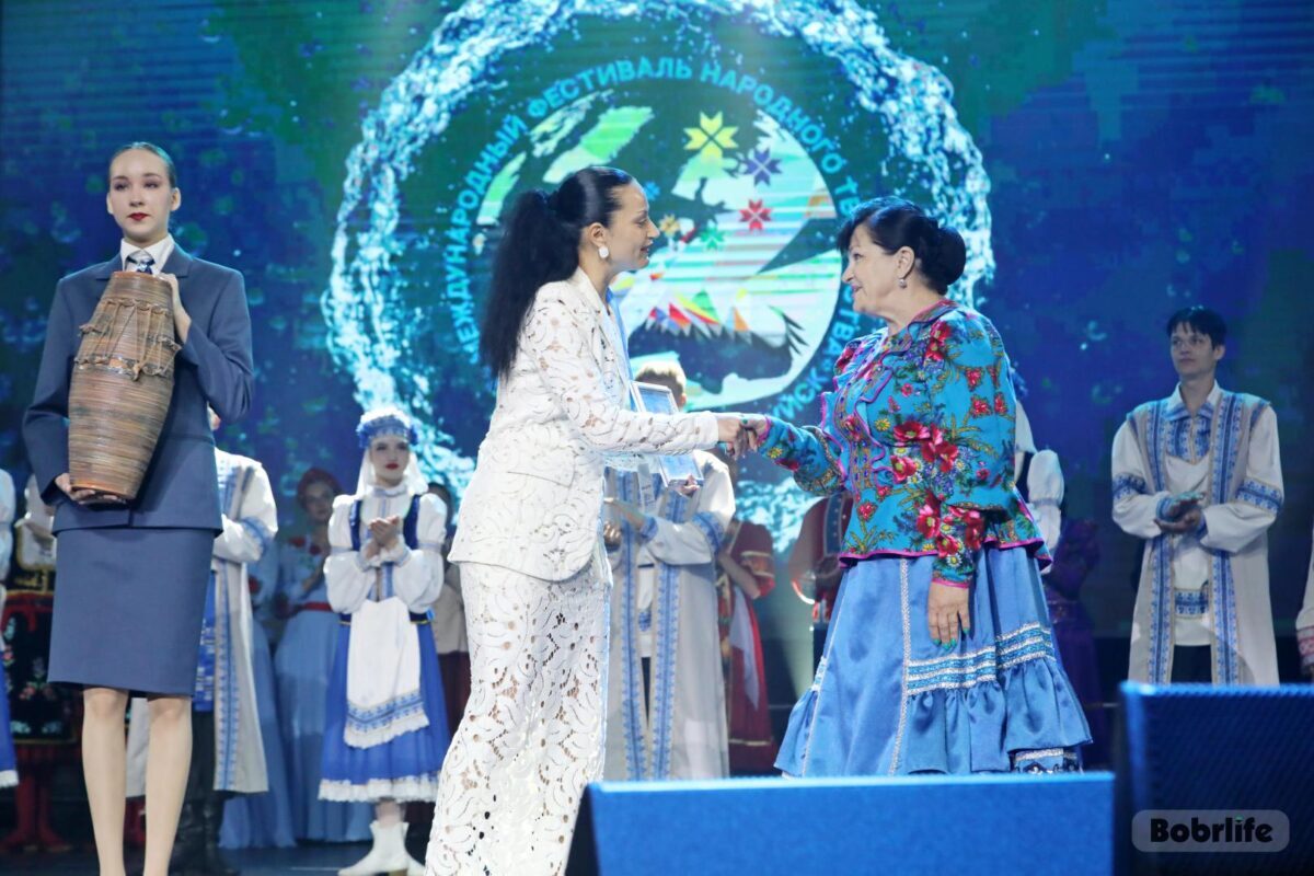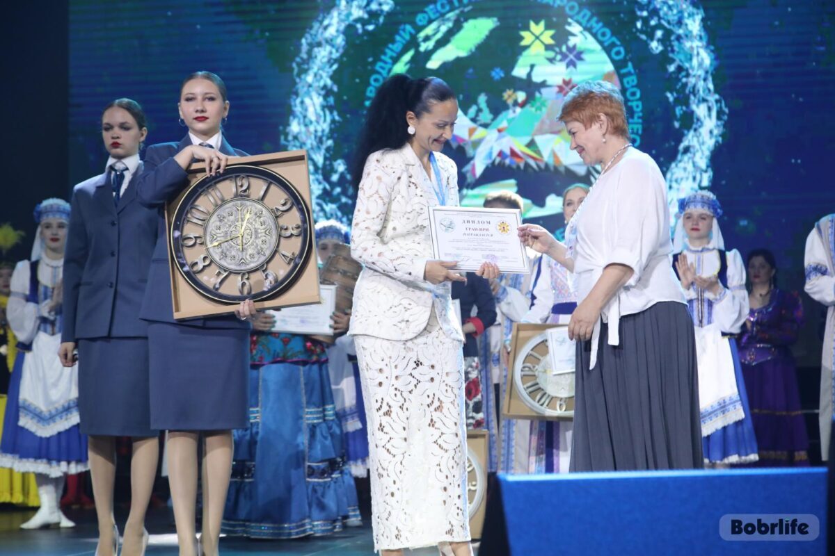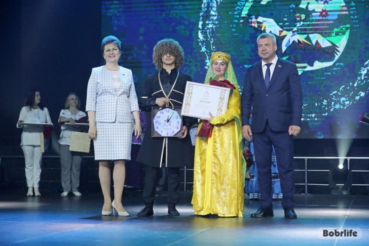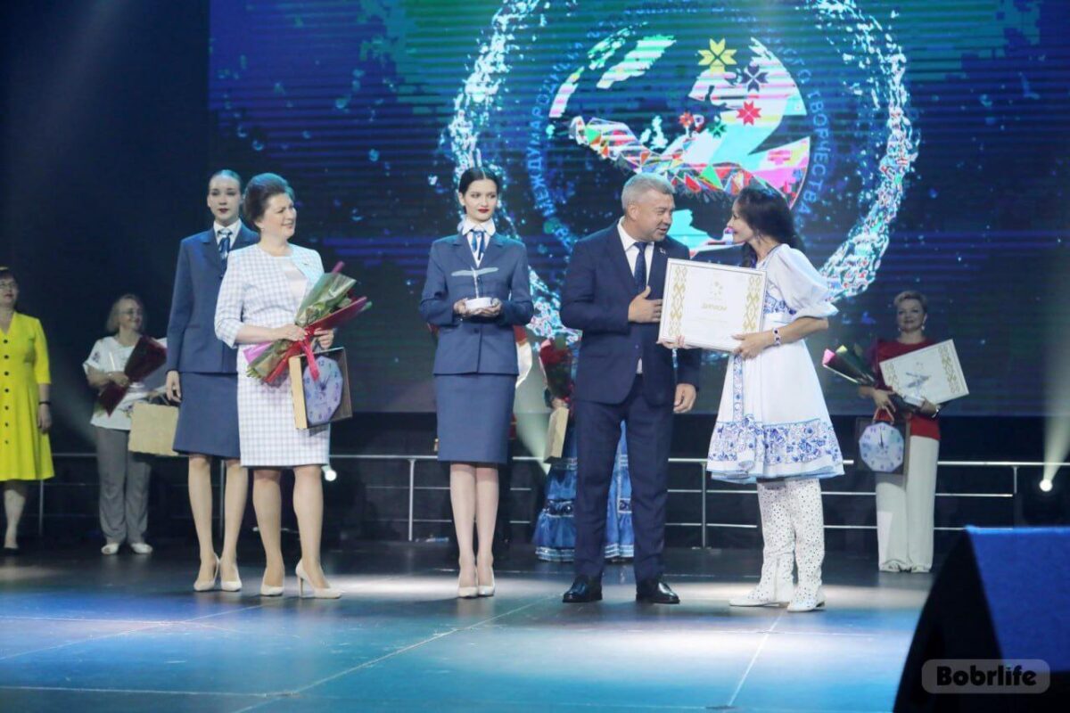 Перед началом концертной программы на сцену поднялась председатель Белорусского профсоюза работников культуры, информации, спорта и туризма Татьяна Филимонова с приятной миссией – наградить победителей выставки-конкурса декоративно-прикладного творчества «Пусть нашей дружбы хоровод танцуют куклы». В этот раз участники представили 17 замечательных кукол ручной работы в национальном стиле, и жюри пришлось нелегко в выборе лучших.