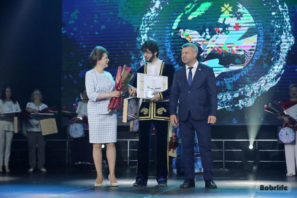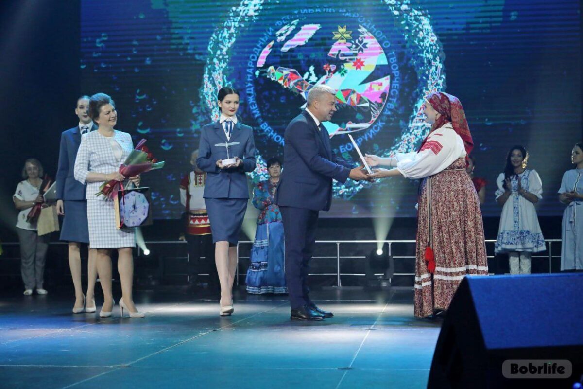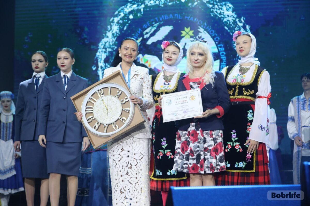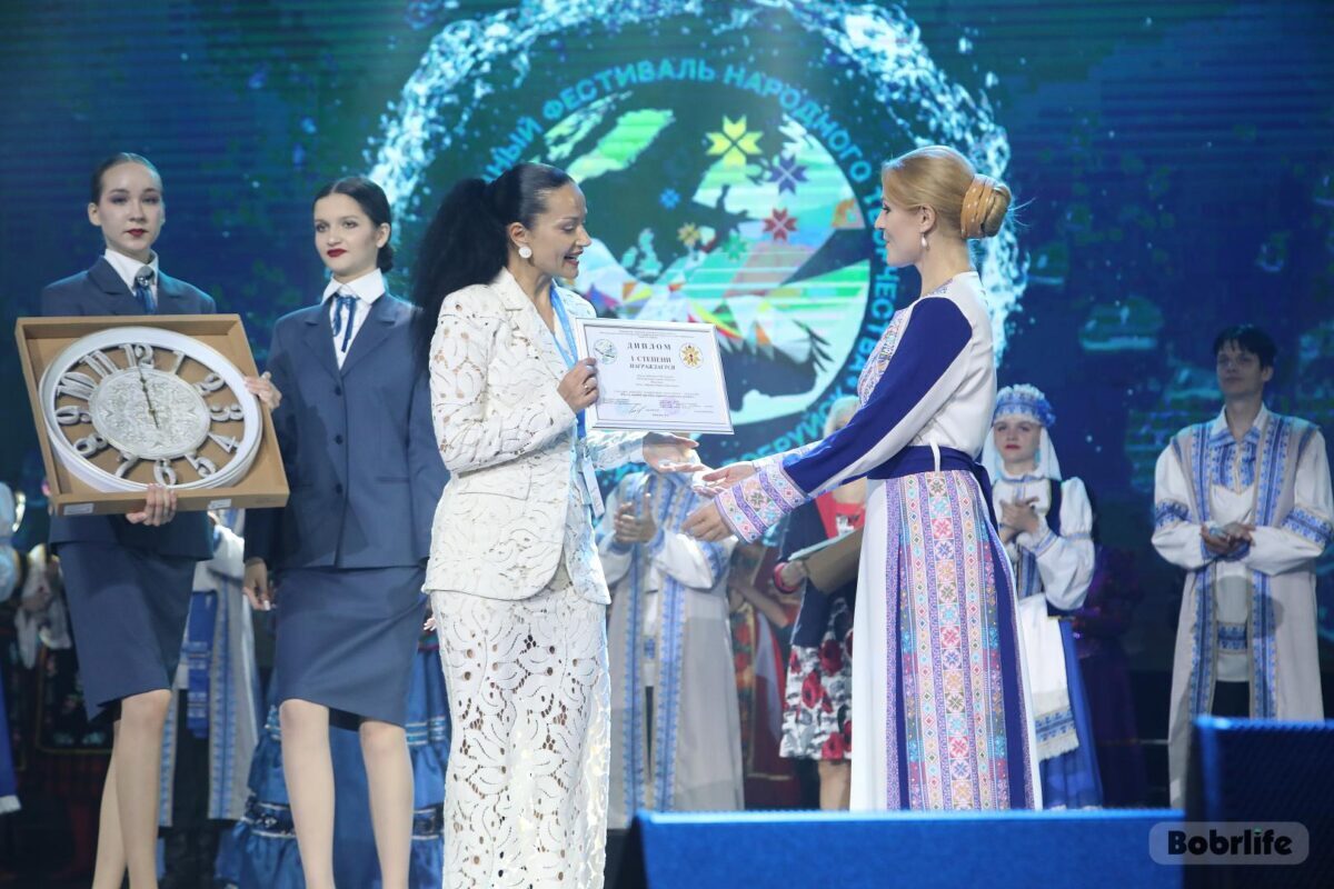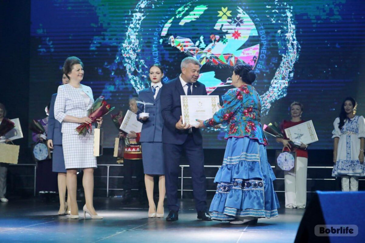 Перед началом концертной программы на сцену поднялась председатель Белорусского профсоюза работников культуры, информации, спорта и туризма Татьяна Филимонова с приятной миссией – наградить победителей выставки-конкурса декоративно-прикладного творчества «Пусть нашей дружбы хоровод танцуют куклы». В этот раз участники представили 17 замечательных кукол ручной работы в национальном стиле, и жюри пришлось нелегко в выборе лучших.