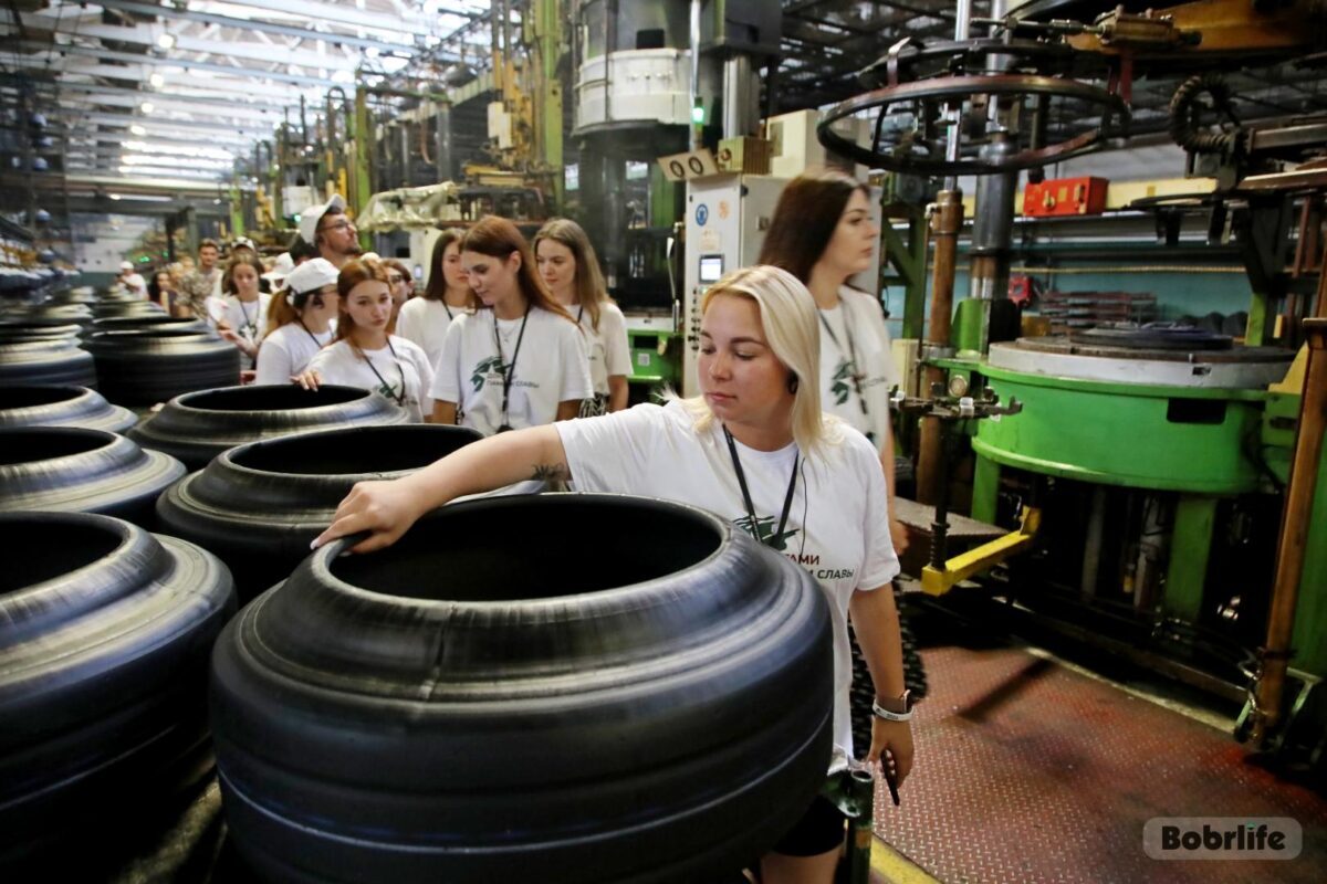 Участники международного молодежного патриотического проекта «Дорогами памяти и славы» из Беларуси и регионов России второй день находятся в Бобруйске. 1 июля молодежь посетила градообразующее предприятие – ОАО «Белшина». Об истории и современности промышленного гиганта рассказали в местном музее. На экскурсии по двум заводам – массовых и сверхкрупногабаритных шин – ребята прочувствовали масштаб производства. В цехах увидели, как проходит технологический процесс создания «обуви» для различного транспорта, как работает оборудование и трудятся люди на линиях резиносмешения, вулканизации, сборки. На память о визите останутся фото на фоне внушительных размеров шин, выпускаемых на предприятии.