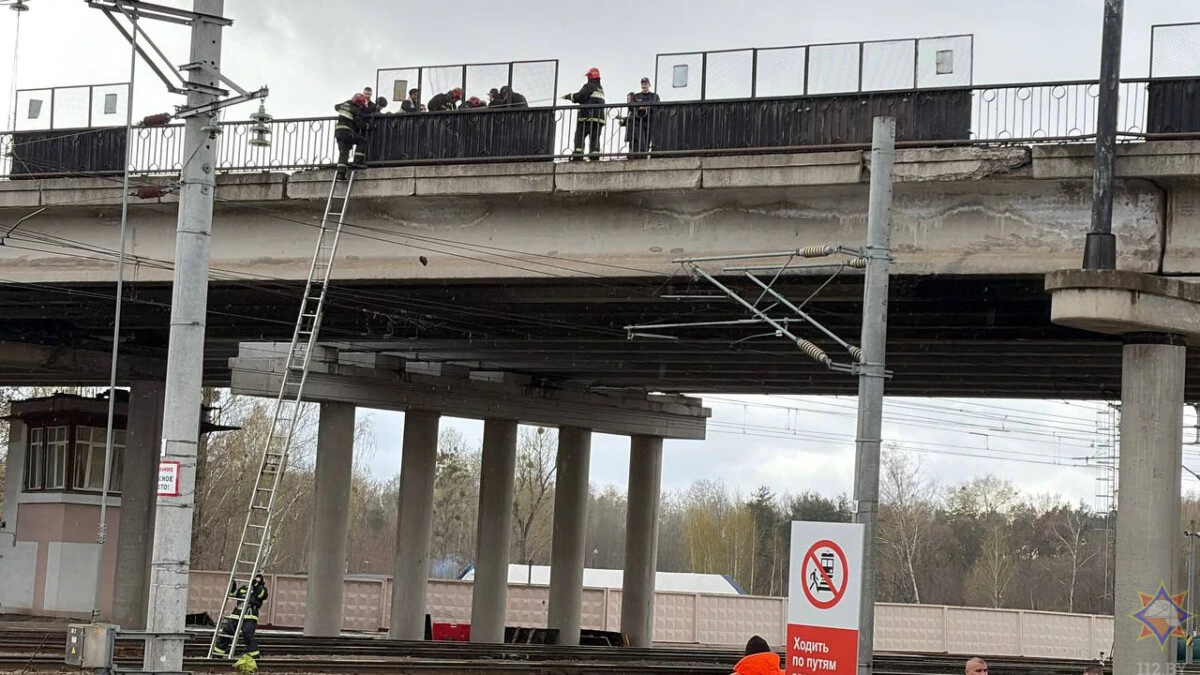 Прибывшие работники МЧС обнаружили мужчину, который намеревался спрыгнуть на железнодорожные пути. Чтобы предотвратить беду, спасатели стали беседовать с ним, пока работники железной дороги отключали электроснабжение контактной подвесной сети.