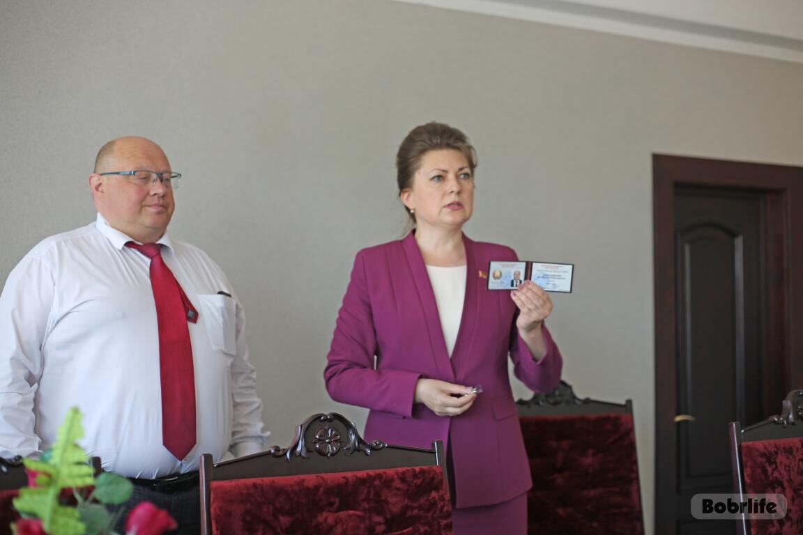 Председатель Бобруйского городского Совета депутатов Ирина Рынейская провела информационную встречу с коллективом ЗАО «БобруйскМебель» 18 июня. В начале диалога Ирина Николаевна торжественно вручила удостоверение депутата Бобруйского городского Совета депутатов директору предприятия Владимиру Маркушевскому.