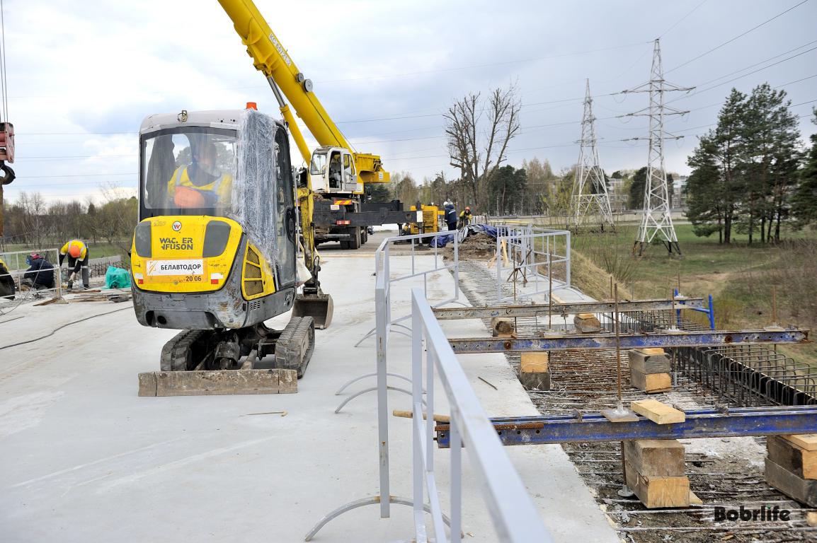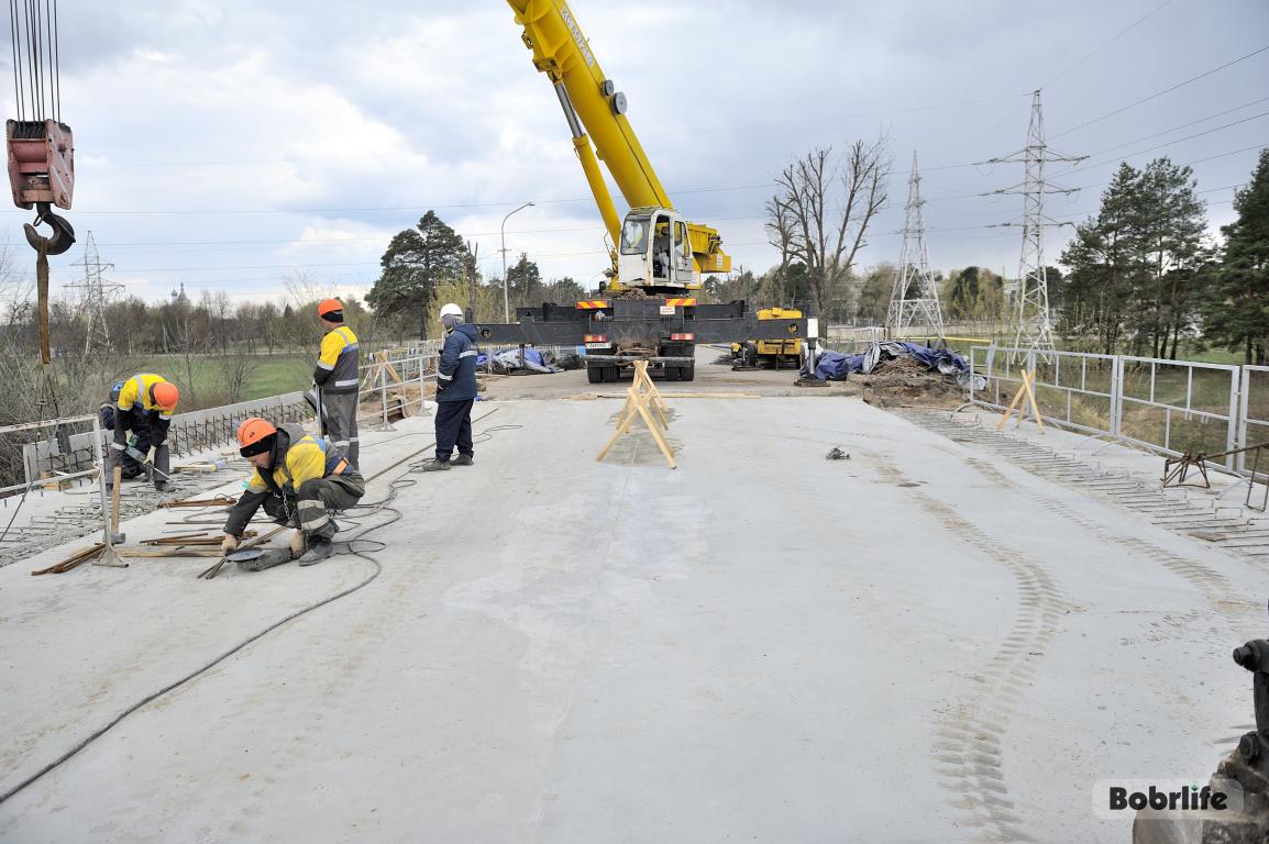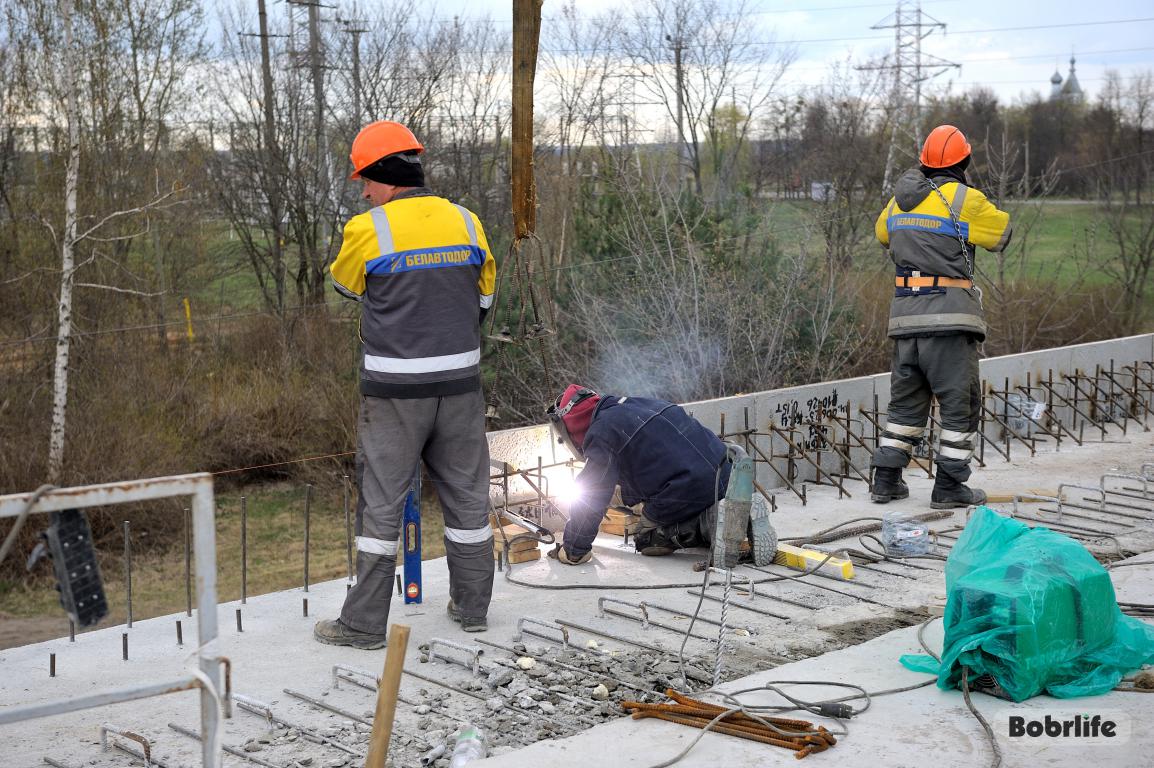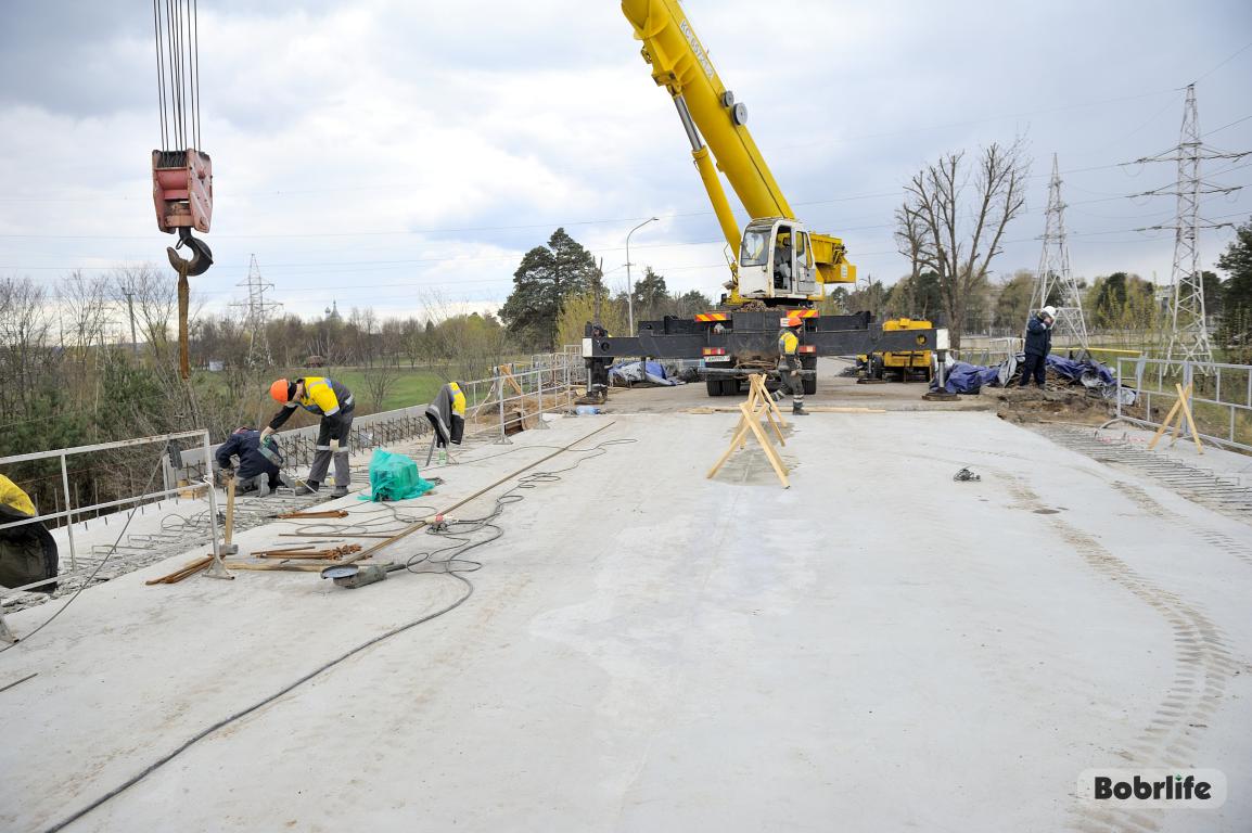 В Бобруйске продолжаются ремонтные работы на путепроводе на улице Карла Маркса. Отметим, что на данный момент заменены крайние балки первого и третьего пролетных строений, обрушение которых и к привело аварийной ситуации в начале марта. Здесь также была произведена укладка нового бетонного покрытия.