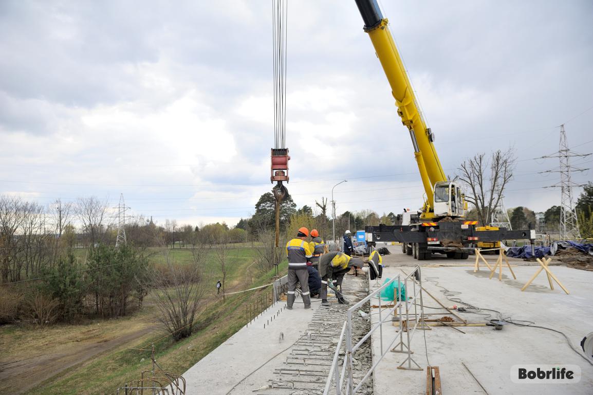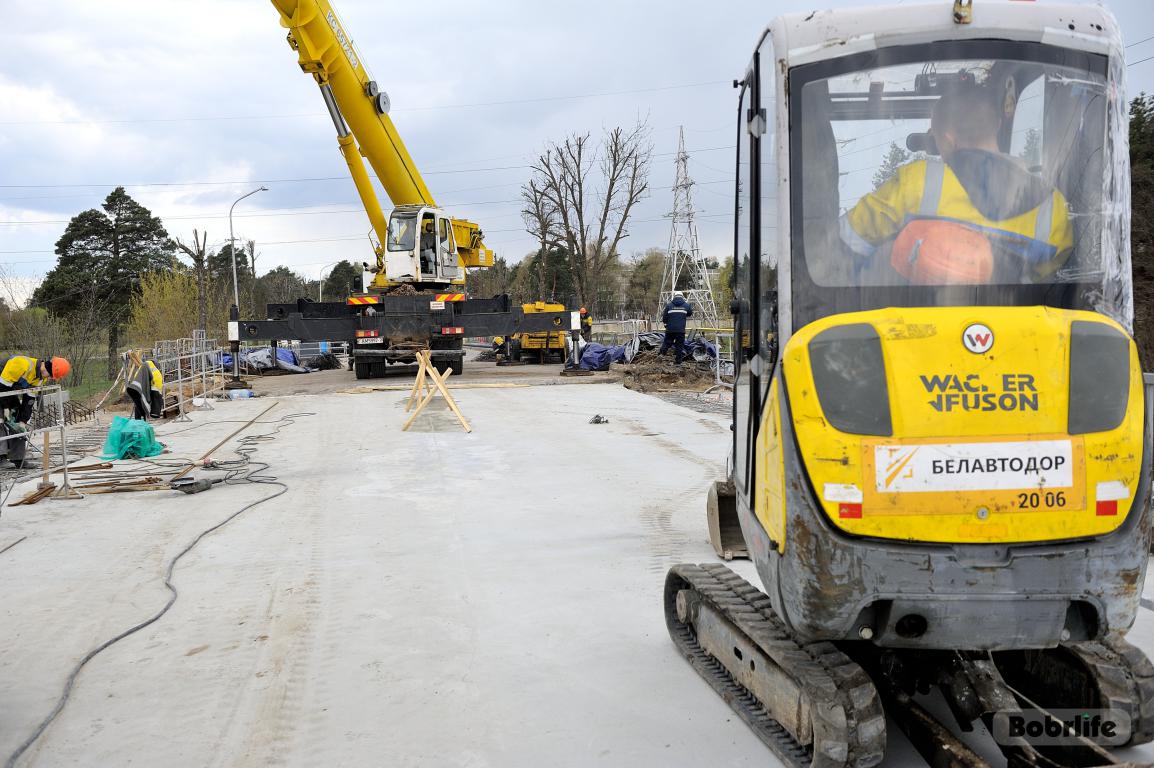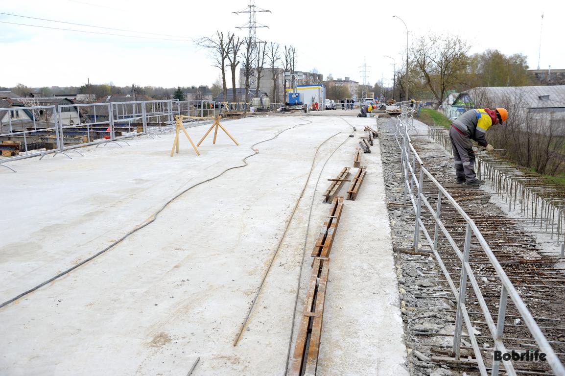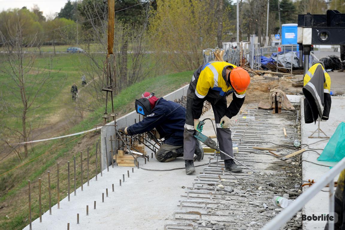 В Бобруйске продолжаются ремонтные работы на путепроводе на улице Карла Маркса. Отметим, что на данный момент заменены крайние балки первого и третьего пролетных строений, обрушение которых и к привело аварийной ситуации в начале марта. Здесь также была произведена укладка нового бетонного покрытия.