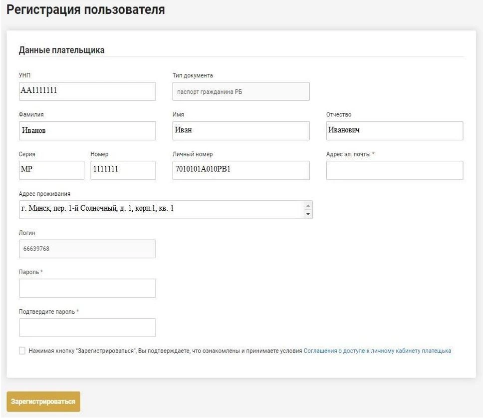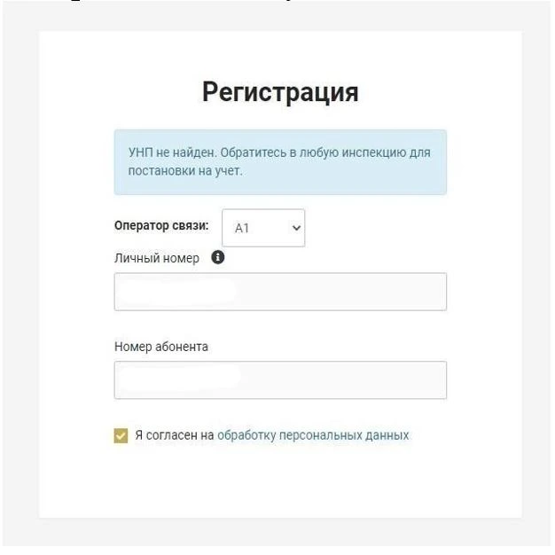 - пользователь состоит на учете в налоговых органах (физическому лицу присвоен УНП);