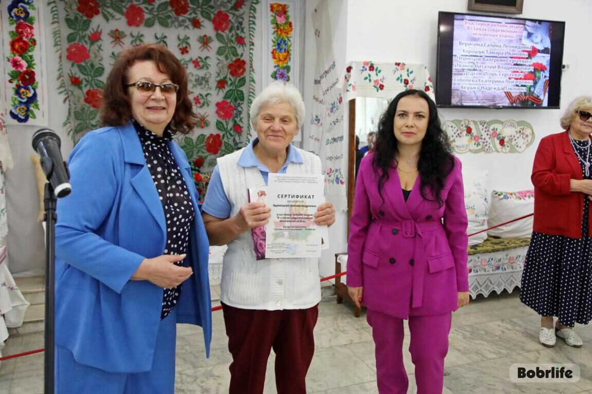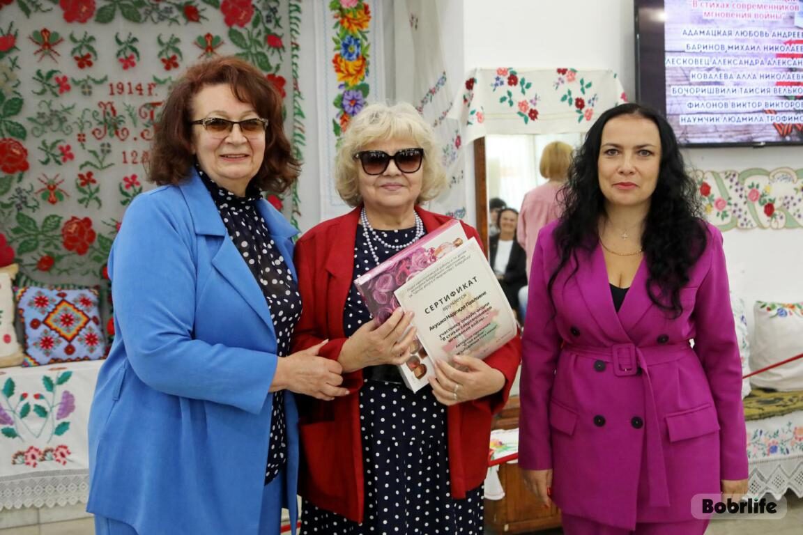 Присоединилась со словами признательности председатель Бобруйской городской организации Белорусского профсоюза работников культуры, информации спорта и туризма Елена Чеботарева: «Ваши стихи проникли в душу и тронули до слез. Их невозможно слушать равнодушно никому. Уверена, что никогда человечество не утратит значимость таких важных слов, как семья, мир, друг, патриотизм, Родина. Без них нельзя жить счастливо. Огромное спасибо всему коллективу Центра, что находите возможность соединить эти потрясающие значения и людей, которые несут их в своем творчестве».