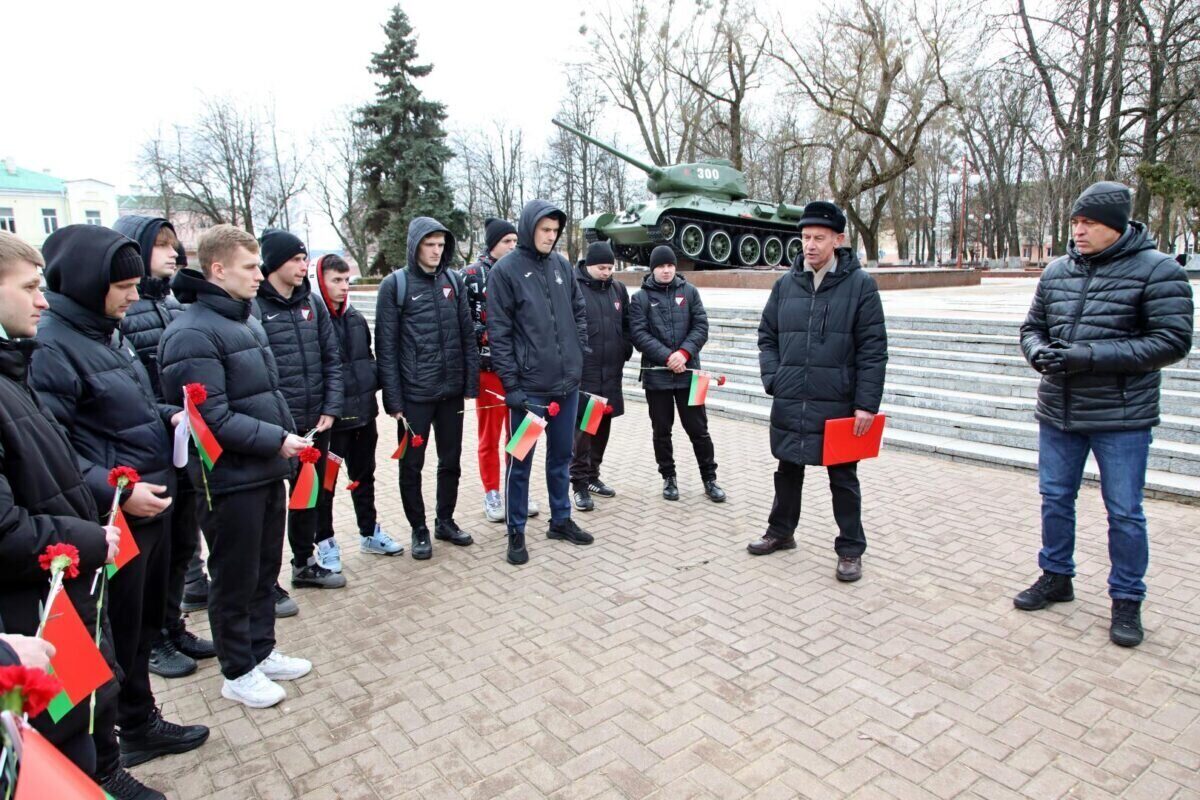 – Мы, футболисты «Белшины», как и вся молодежь Беларуси, склоняем головы перед немеркнущим подвигом наших предков, в жестоких сражениях отстоявших свое Отечество. Мы гордимся их самоотверженностью и несокрушимой силой духа, – отметил защитник команды Артур Слабашевич.
