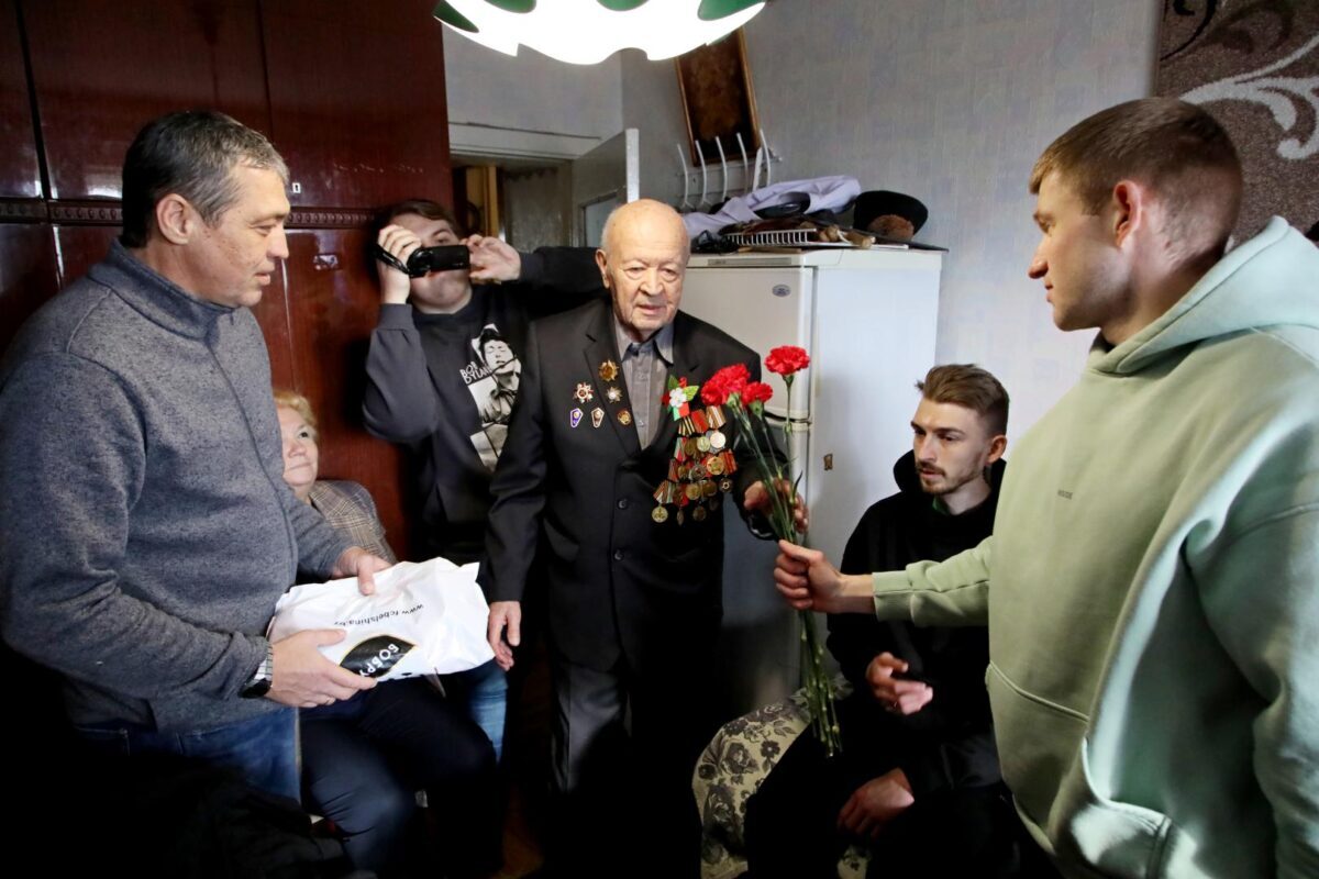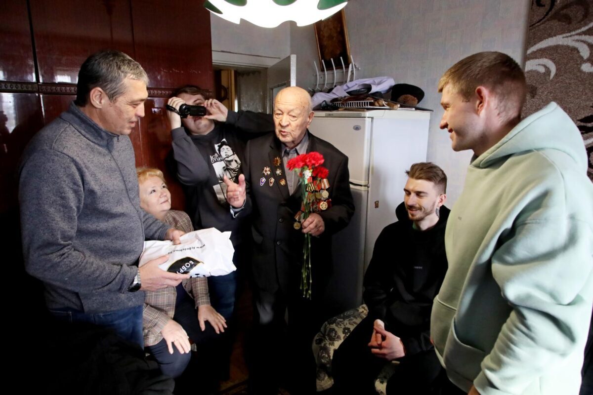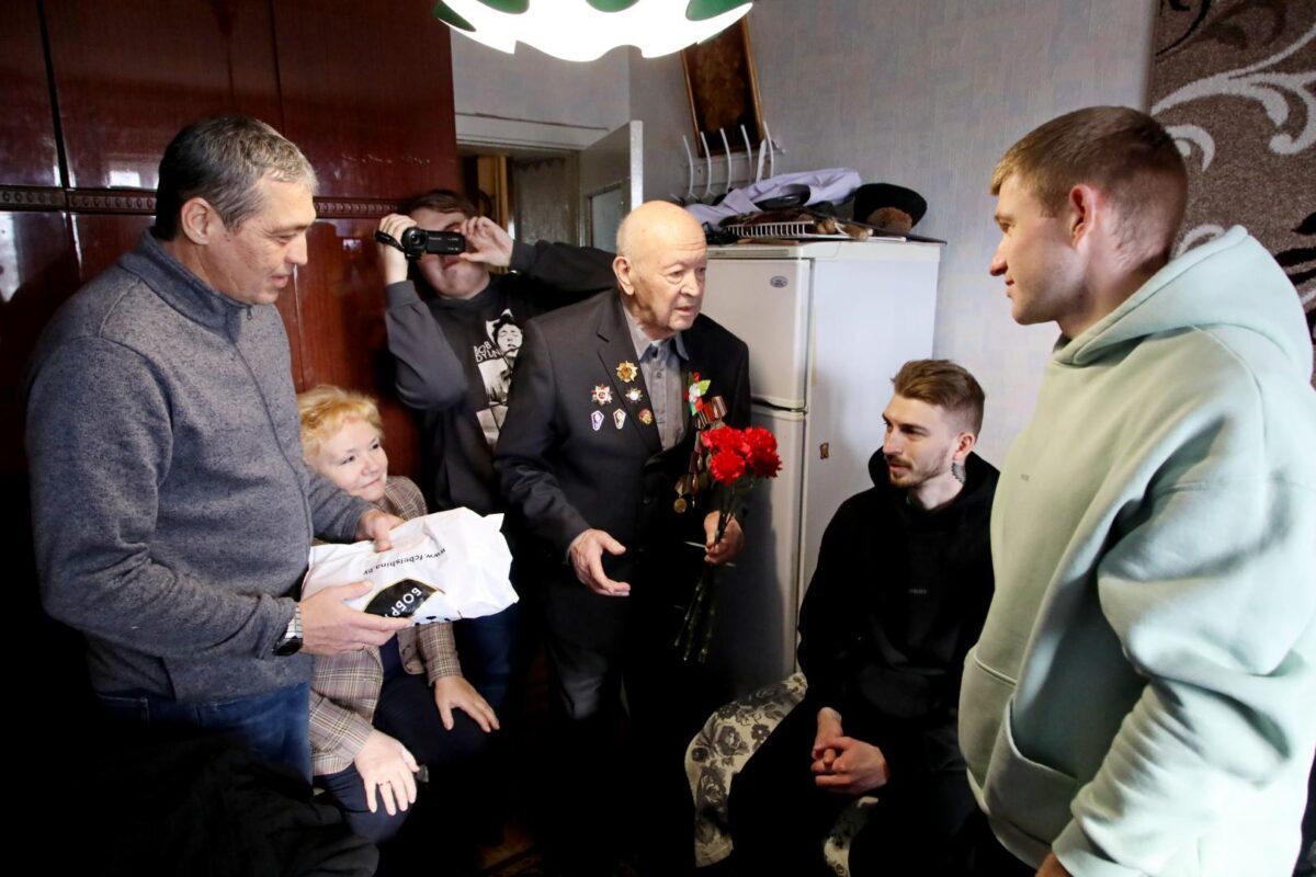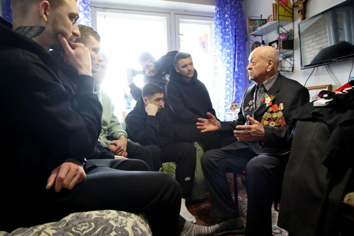 Затем «красно-черные» вместе с председателем городского Совета ветеранов Натальей Коноваловой навестили ветерана Великой Отечественной войны Михаила Волчека. 96-летний Михаил Тимофеевич рассказал интересные факты из своей биографии, о том, как был связным и разведчиком в партизанском отряде, как воевал в составе регулярных войск, как после контузии вернулся домой и в мирное время учился в музыкальном училище, а потом 26 лет работал преподавателем по классу баяна в детской музыкальной школе… Футболисты с интересом задавали вопросы о наградах, о самых трудных минутах на войне и… об увлечениях Михаила Тимофеевича в молодости волейболом и футболом.