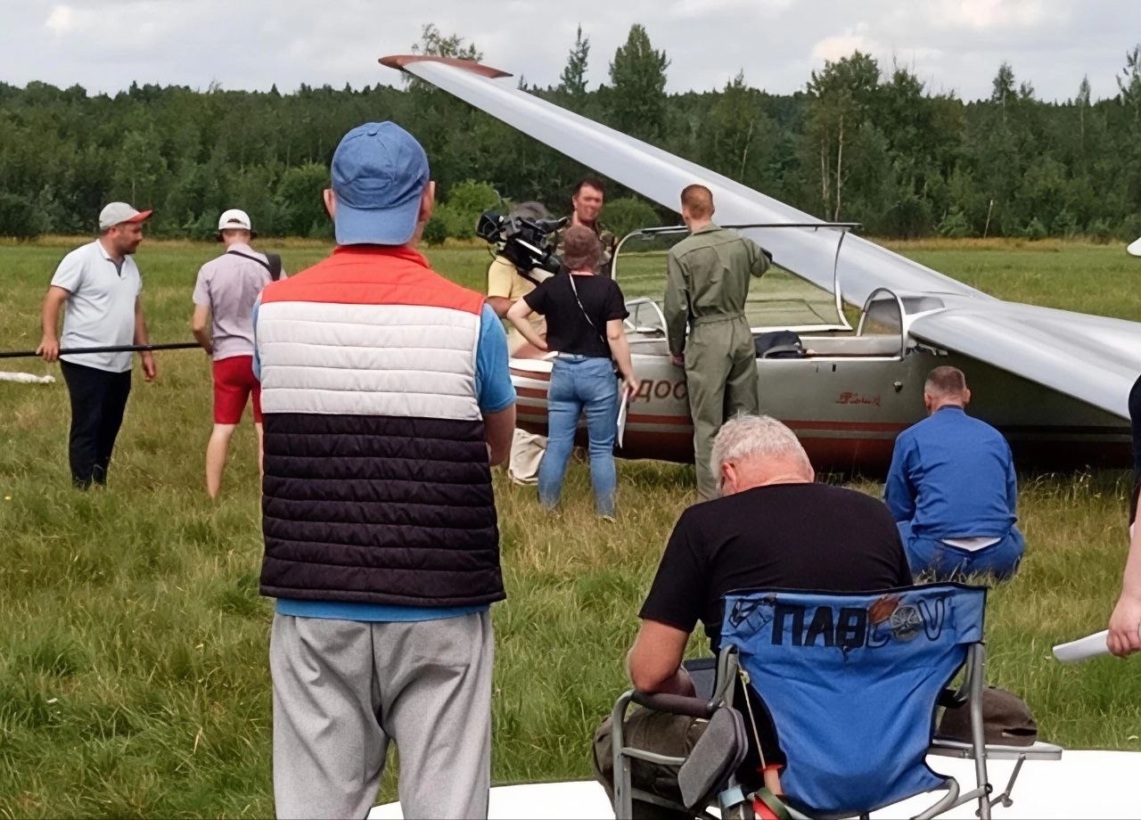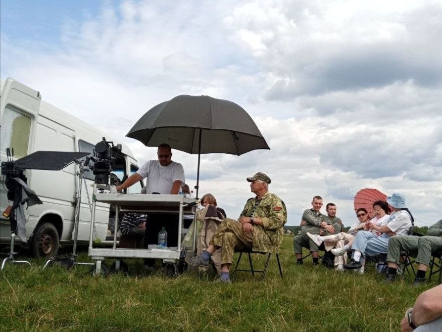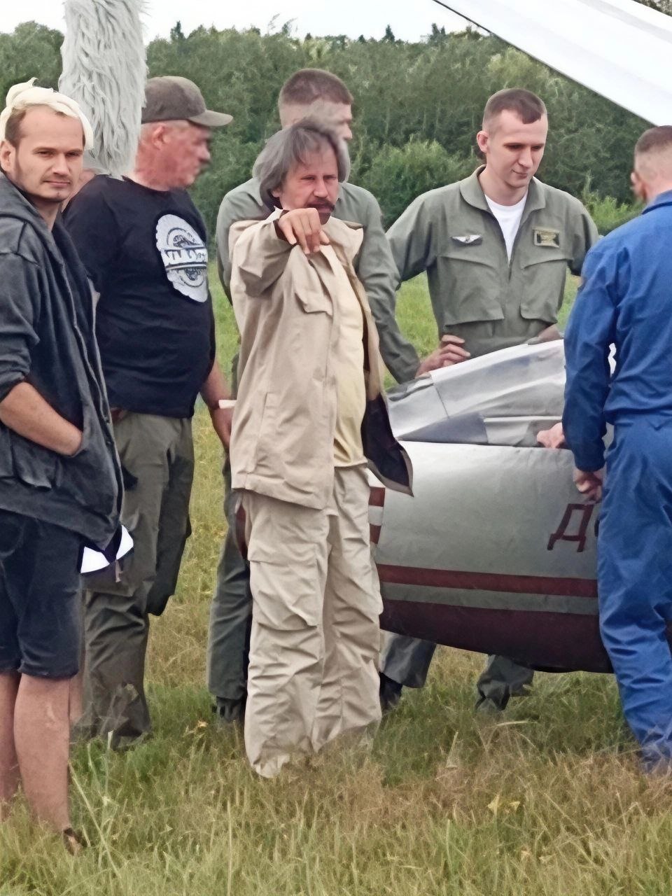 Аэродром в Сычково. Ребята в форме. Техники, помощники. В сотый раз обсуждается очередной дубль. Режиссер и оператор эмоционально спорят, анализируя детали.