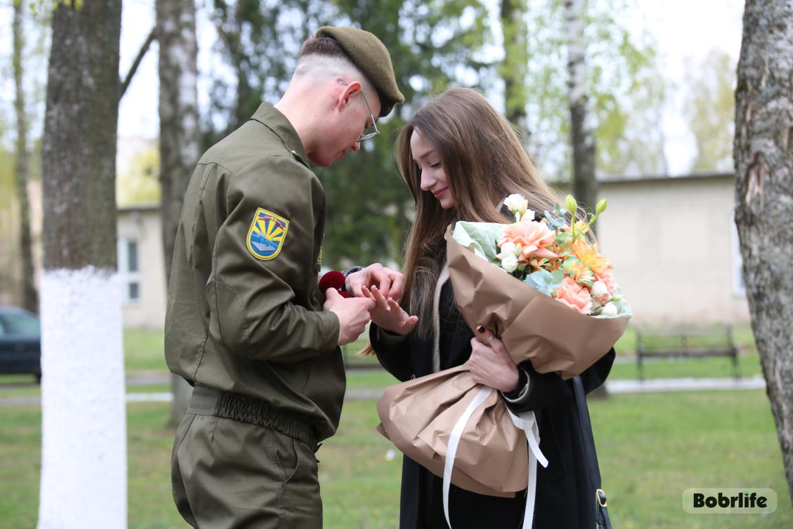 Сразу после торжественного построения рядовой Дмитрий Шашура сделал предложение руки и сердца своей девушке. Символично, что этот шаг совпал с завершением службы: один важный этап остался позади, впереди — новая жизнь и новые решения.