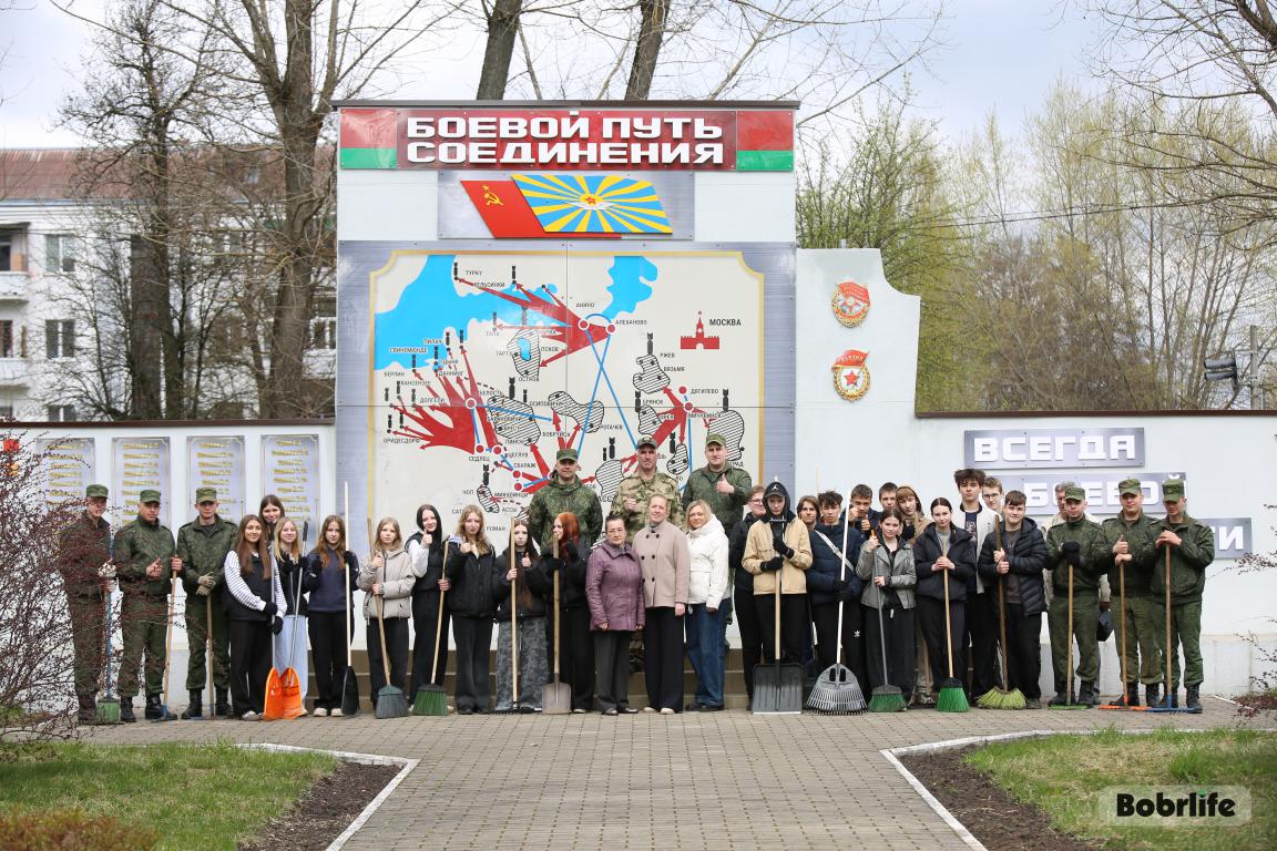 Бобруйск. Солнечный апрельский день в микрорайоне Авиагородок выдался жарким не только погодой, но и атмосферой трудового единства. Порядка полсотни бобруйчан вышли на субботник к мемориалу, посвященному воинам-авиаторам легендарной 22-й гвардейской тяжелой бомбардировочной авиадивизии. Место выбрано не случайно — именно отсюда, с берегов Березины, летчики поднимались в небо, чтобы бить врага.