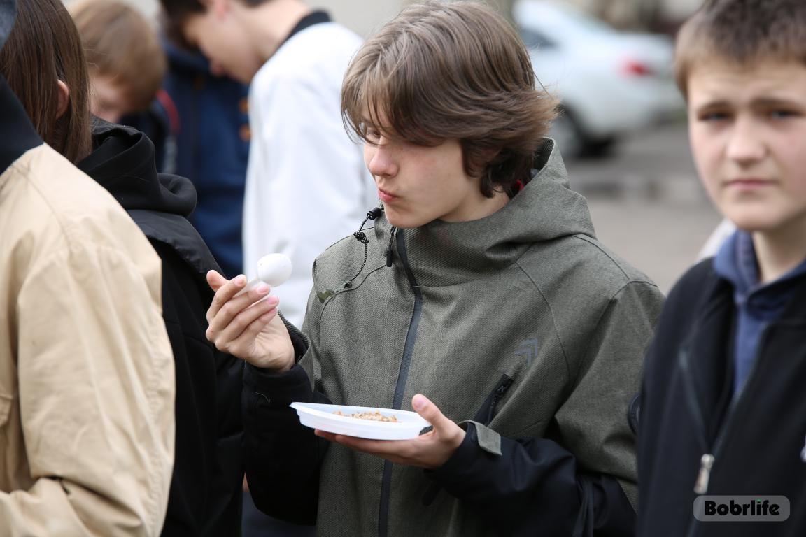 Владимир Вячеславович лично позаботился о полном «боекомплекте»: каждый получил инвентарь, перчатки и пакеты для сбора мусора. А чтобы силы не покинули тружеников до финиша, организовал полевую кухню. Горячий чай и та самая гречневая каша с тушенкой — по рецепту 1942 года — разлетались мгновенно.
