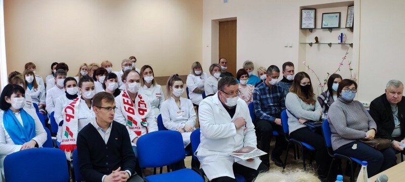 В обсуждении проектаизменений и дополнений Конституции Республики Беларусь приняли участие медицинские работники. Спикерами выступили управляющий делами администрации Первомайского района г.Бобруйска Одиноченко А.С.,  главный врач УЗ «Бобруйская городская поликлиника №3» Кизимова Н.В.,  председатель Бобруйской городской организации РОО "Белая Русь" Вяткин В.В., председатель Бобруйского городского объединения профсоюзов Балакер Л.Г.