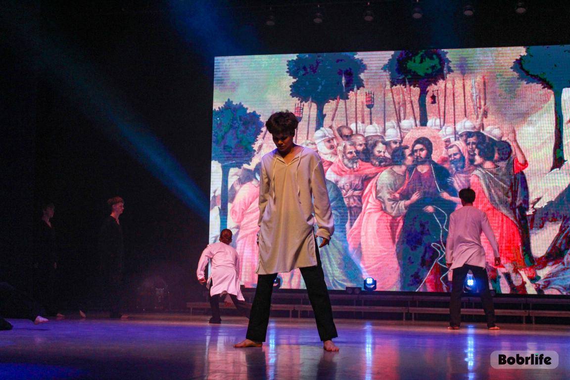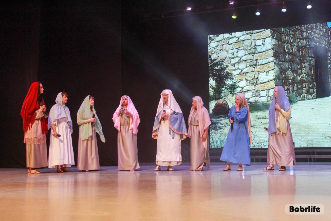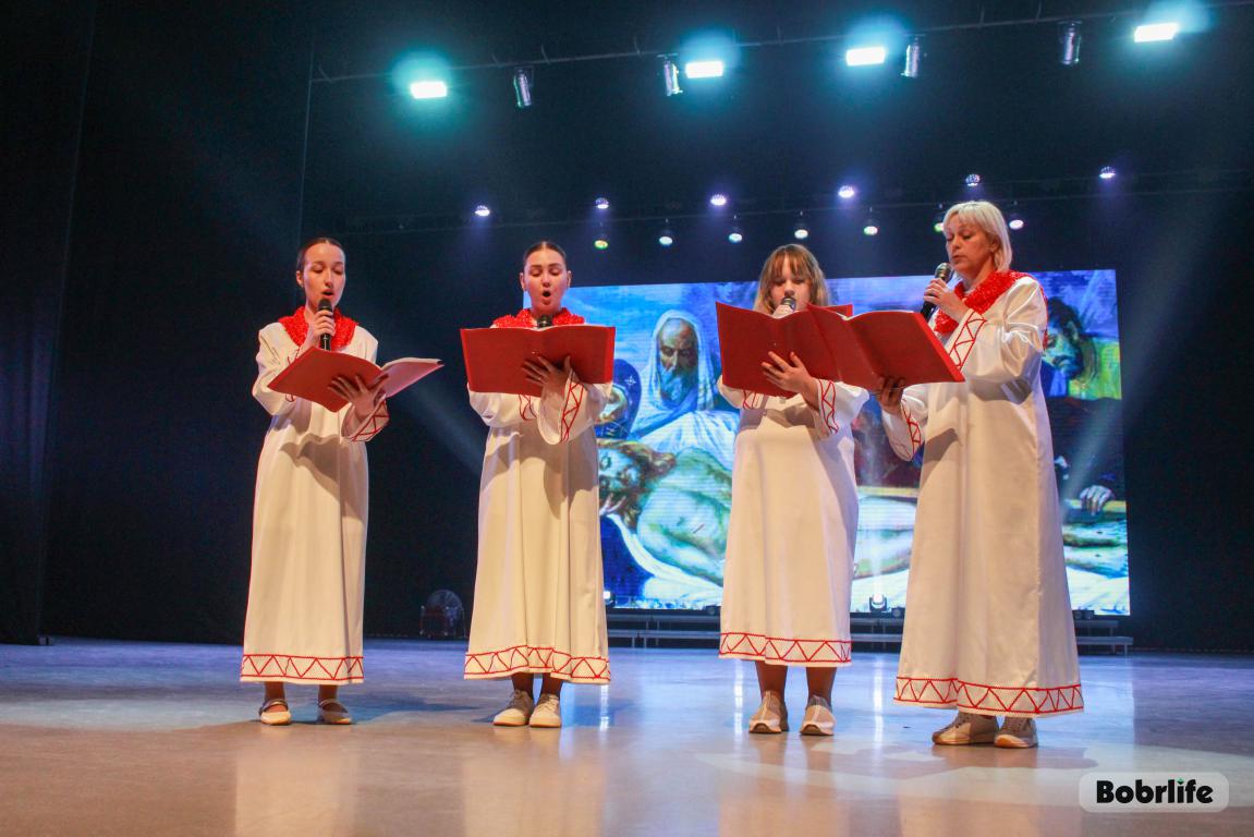 После яркого плац-концерта и праздничных гуляний зрители переместились в зрительный зал, где спустя час их ждала главная встреча дня. Православный театр «Убрус» под руководством режиссера Людмилы Наумчик представил музыкальный спектакль «Христос Воскресе!». Со сцены прозвучали известные евангельские притчи, каждая из которых несла важный духовный урок. Одной из самых пронзительных сцен вечера стало сценическое воплощение притчи о блудном сыне, тронувшее сердца зрителей историей о покаянии, прощении и безграничной отцовской любви.