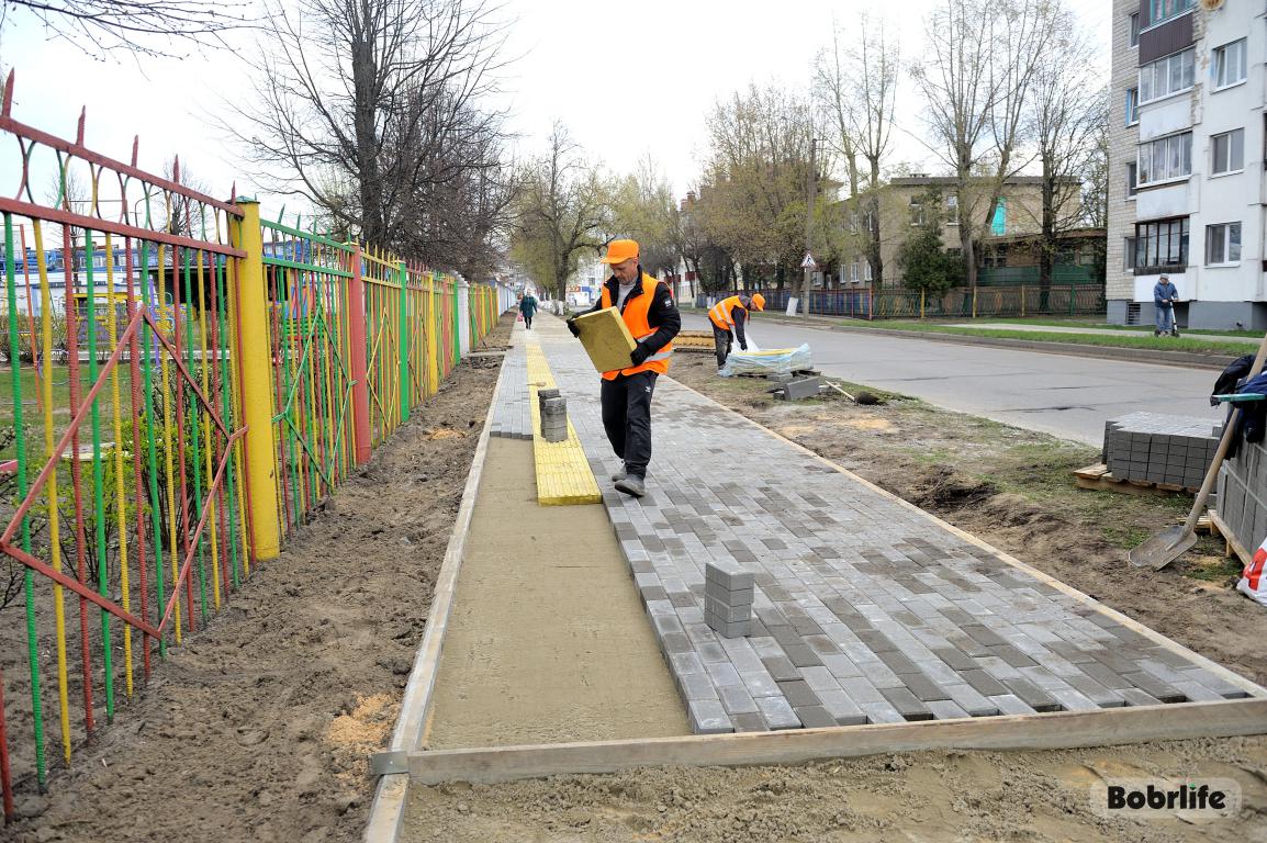 Интенсивно трудятся на укладке новой плитки на улице Орловского. Вдоль детского сада 46 до Бобруйского мясокомбината, от улицы Бахарова до Брестской пешеходы скоро будут гулять по «свежим» дорожкам, которые выполнены с учетом безбарьерной среды и с применением тактильной плитки.