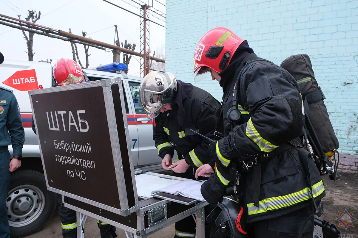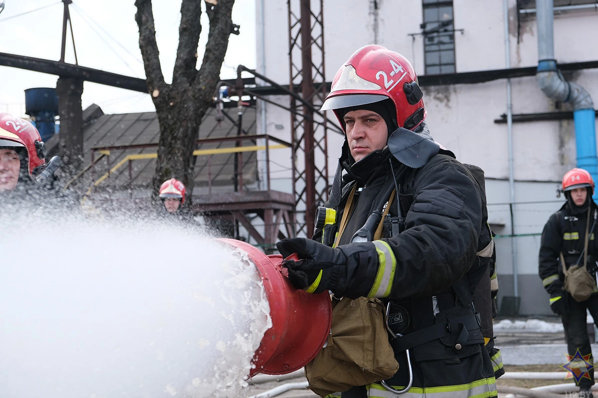 «Пожар на складе спирта». На Бобруйском заводе биотехнологий прошли тактико-специальные учения