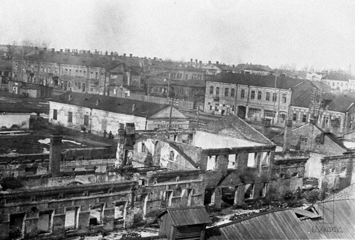 Перед бегством из города гитлеровцы во главе с комендантом генерал-майором Гоманом специально взорвали ряд крупных коммунальных построек и сооружений, разрушили и вывели из строя более 34 сооружений и предприятий союзного и республиканского подчинения. Одни развалины остались от военного городка, а казармы Бобруйской крепости гестаповцы сожгли в 1941 году вместе с 22000 военнопленных.