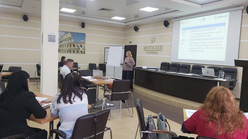 23-24 сентября в Могилеве прошел пятый семинар Мастерской местных СУР. В нем приняли участие представители Дрибинского, Кировского, Кличевского, Краснопольского, Кричевского, Мстиславского, Славгородского районов и города Бобруйска, которые победили в конкурсе на право получить экспертную поддержку при разработке местных Стратегий устойчивого развития в рамках Стратегии устойчивого развития Могилевской области до 2035 года. Этот семинар является заключительным на этапе разработки концепций местных СУР и предполагает освоение участниками Мастерской методики локализации ЦУР и областной СУР в местные СУР. Участники презентовали свои наработки, сформировавшиеся в результате работы тематических групп на местах, тем самым представили первые версии проекта структуры концепций местных СУР. Практическое освоение участниками методики локализации ЦУР, НСУР, областной СУР и иных документов позволило им скорректировать свои проекты концепций и подготовиться к общественному обсуждению. Тема "Активное долголетие" получила активное обсуждение на Клубной встрече 23.09 и стала полезной для всех участников в формулировке основных позиций концепции СУР по данному направлению.
