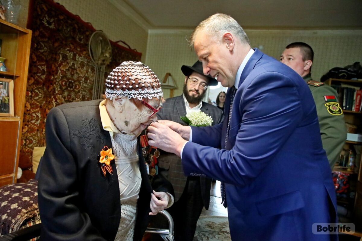 Ветераны Бобруйска перед праздничной датой принимают поздравления. Один из многочисленных адресов в эти дни – квартира Евгении Блувол. В годы Великой Отечественной Евгения Григорьевна была санитаркой в военном госпитале. 8 мая с подарками, цветами и наилучшими пожеланиями к ней пришли заместитель председателя горисполкома Владимир Книга, военный комиссар Бобруйска, Бобруйского, Глусского и Кировского районов Алексей Березовский, раввин Шауль Хабабо.