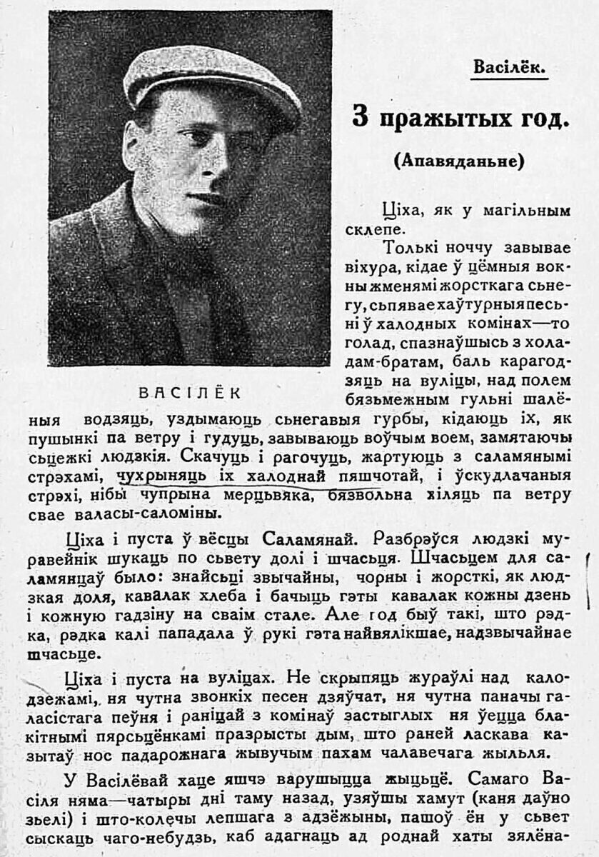Конечно, не обходилось на первых порах без детских, и не только, болезней. Об этом и редактор «Камуніста» самокритично признавался: «У самім Бабруйску няма больш-менш буйных сярэдніх і вышэйшых школ, як, напрык­лад, тэхнікумаў і г.д. Адсюль – адсутнасць у самім горадзе такіх асяродкаў, дзе можна было б шырока разгарнуць маладнякоўскую працу сярод моладзі. З гэтай жа прычыны ядро нашай філіі – бюро – хварэе, хранічна хварэе, калі не на сухоты, дык на малакроўнасць: няма людзей, а з двума-трыма чалавекамі ў горадзе не разгонішся. Праўда, у бліжэйшыя часы мы робім усе магчымыя для нас захады, каб перацягнуць, перакінуць некаторых таварышаў у Бабруйск».                                                                              И в самом деле, все эти болезни роста видны на страницах первого литературного сборника. Достаточно сказать, что среди его авторов мы практически не найдем бобруйчан. За исключением самого Михася Тихоновича и его брата Рыгора, поместивших соответственно: первый под своим именем и псевдонимами Василек и Михась – статью, два рассказа, подборку юмористических образков и даже стихотворение, а второй под псевдонимом Р. Суница – восемь небольших стихов. Остальные поэты – Я. Ивашин, М. Верас, Хв. Бужан, Я. Хмель, С. Голуб и Р. Смелый – представляли большой Бобруйский округ, а А. Глинская прислала свои произведения даже из Ленинграда.