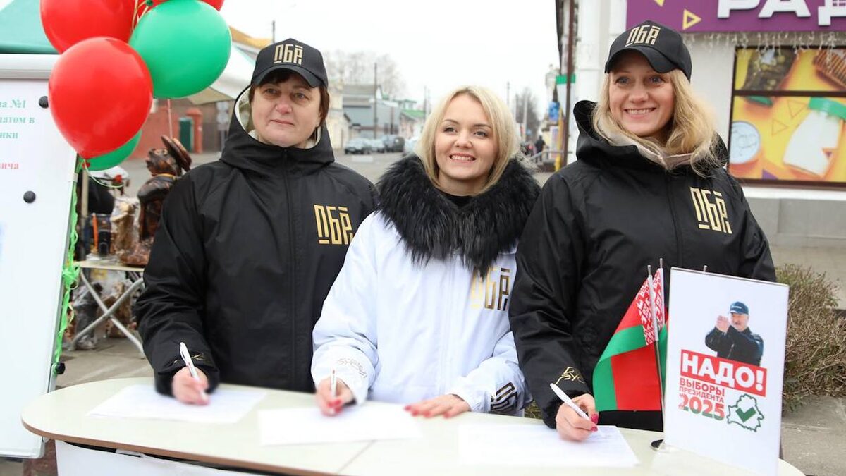 «Ленинское отделение г. Бобруйска Могилевской области Белорусской партии «Белая Русь» не остается в стороне от избирательной кампании. Сегодня мы находимся на пикете. Члены «Белой Руси» зарегистрированы в качестве членов инициативной группы по выдвижению кандидатом в Президенты Беларуси Александра Григорьевича Лукашенко».