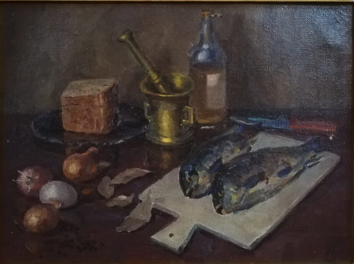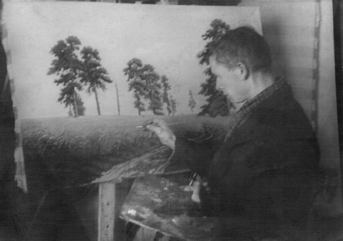 С портретным жанром в биографии художника имел место необычный и любопытный факт. В самом начале 1950-х гг. он стажировался на специальных курсах в Москве, по завершении которых получил свидетельство, дававшее ему право писать портреты вождей, Ленина и Сталина.