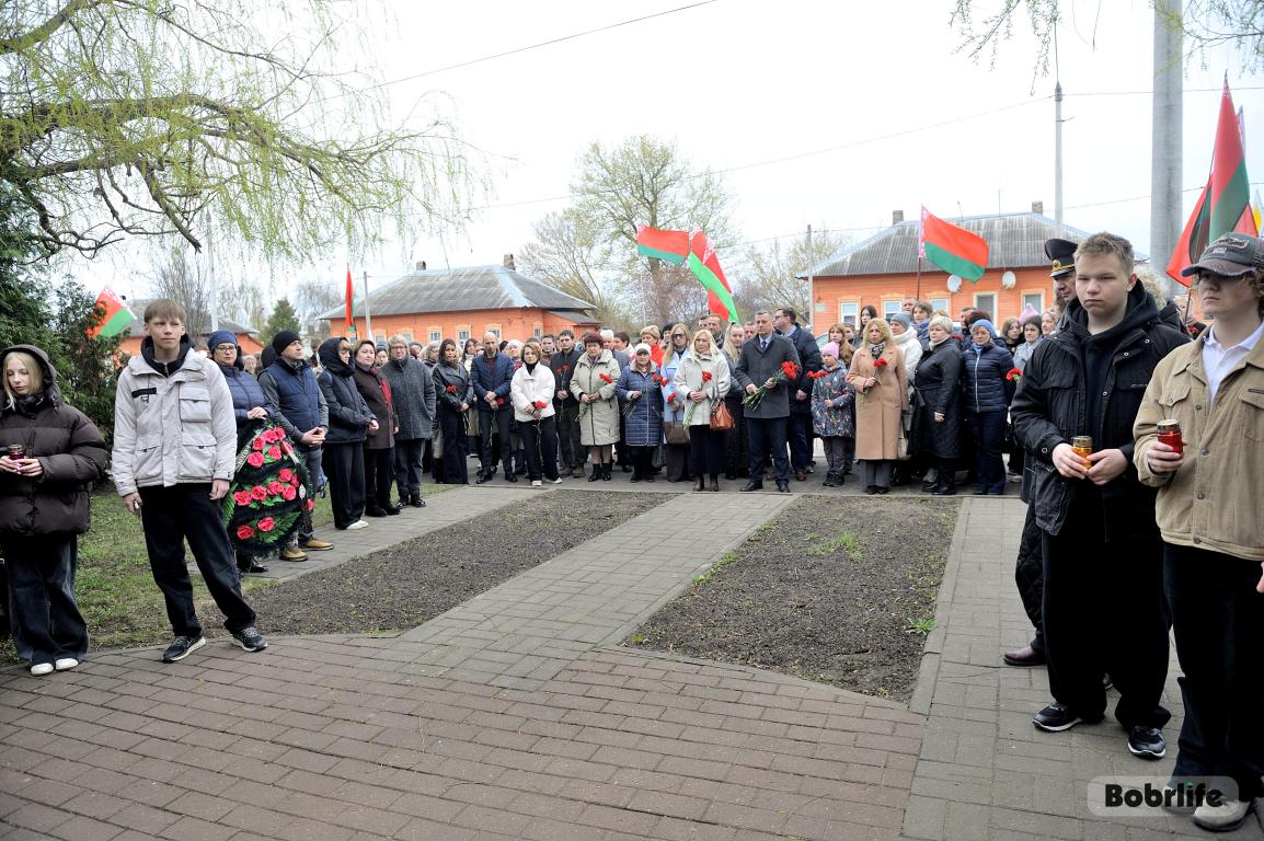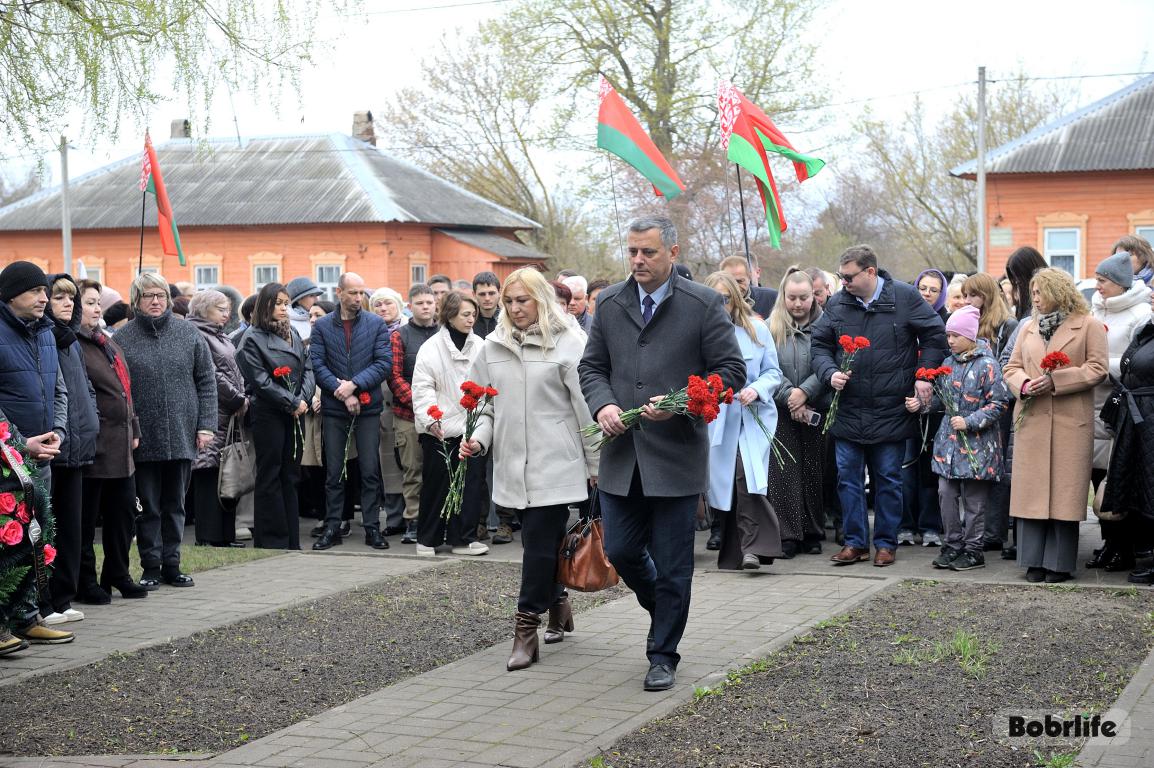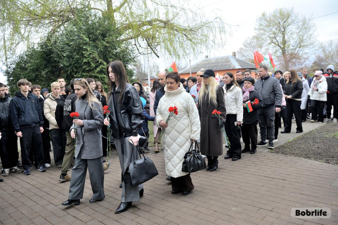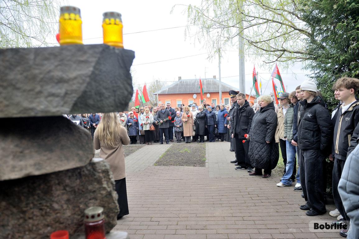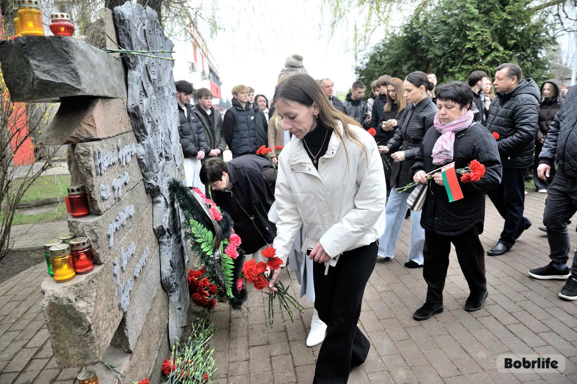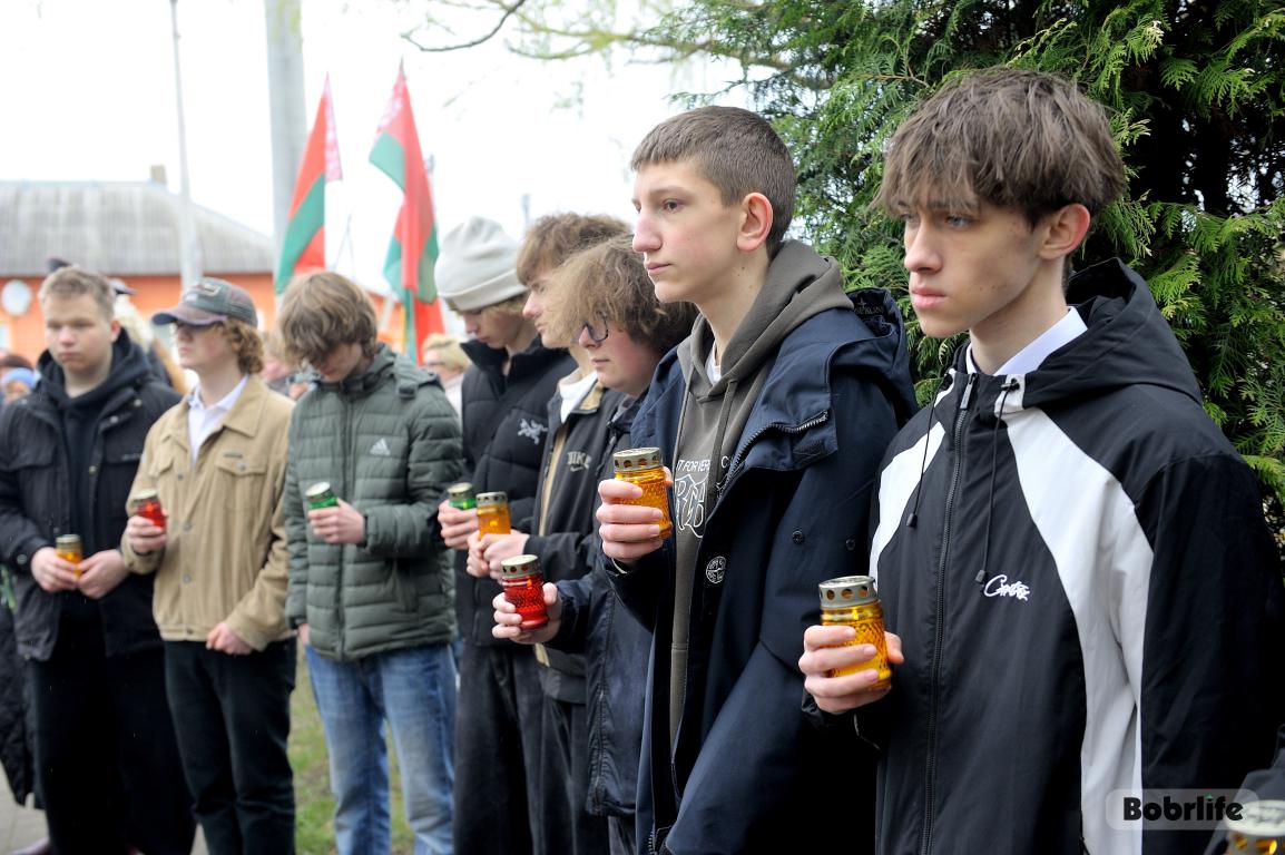 В этот памятный, важный для каждого белоруса день небо над Бобруйском затянуло серыми тучами. Моросил мелкий холодный дождь, словно сама природа оплакивала жертв великой трагедии, но ни капризы погоды, ни пронизывающий ветер не заставили бобруйчан остаться дома. Люди пришли к мемориалу, чтобы вспомнить и оплакать тех, чьи судьбы оборвались в кровавых фашистских застенках. Юноши декламировали стихотворения, призывая не предавать забвению тех, кто ценой своей жизни вошел в бессмертие.