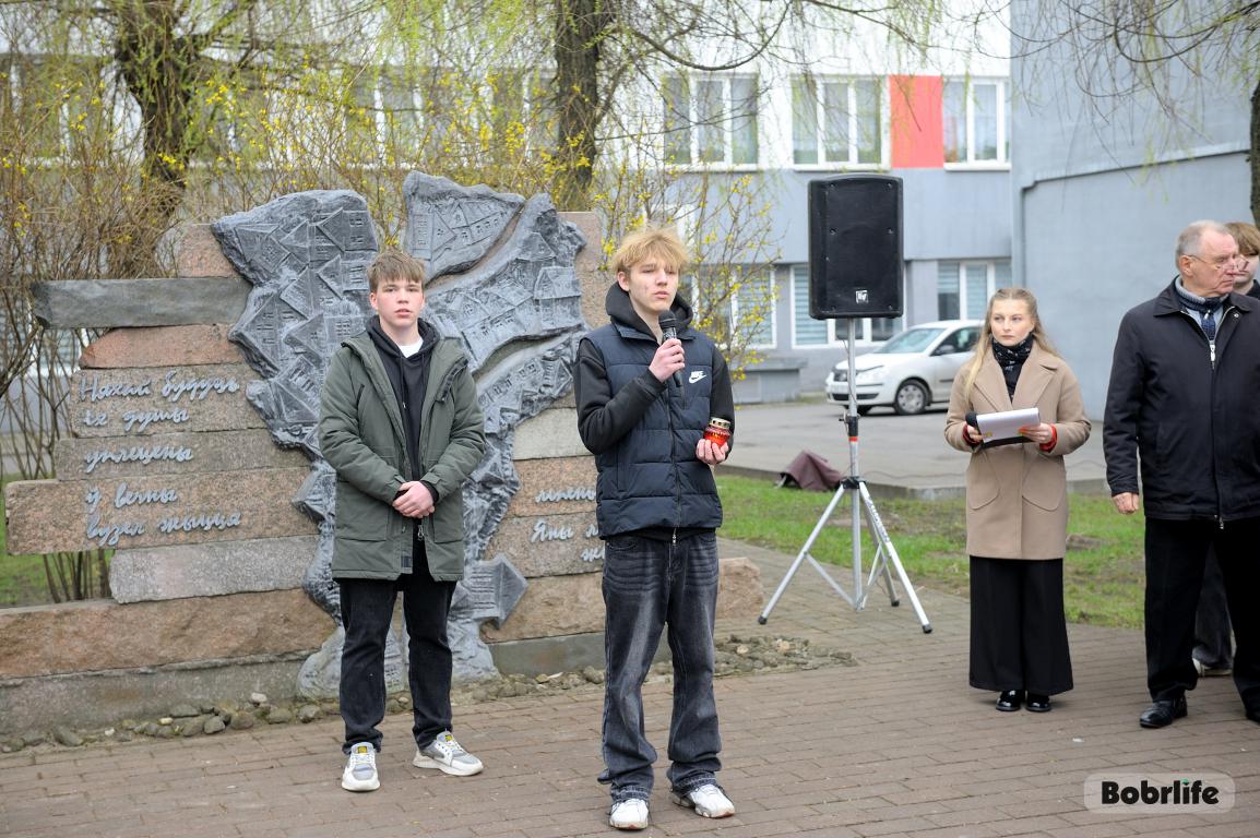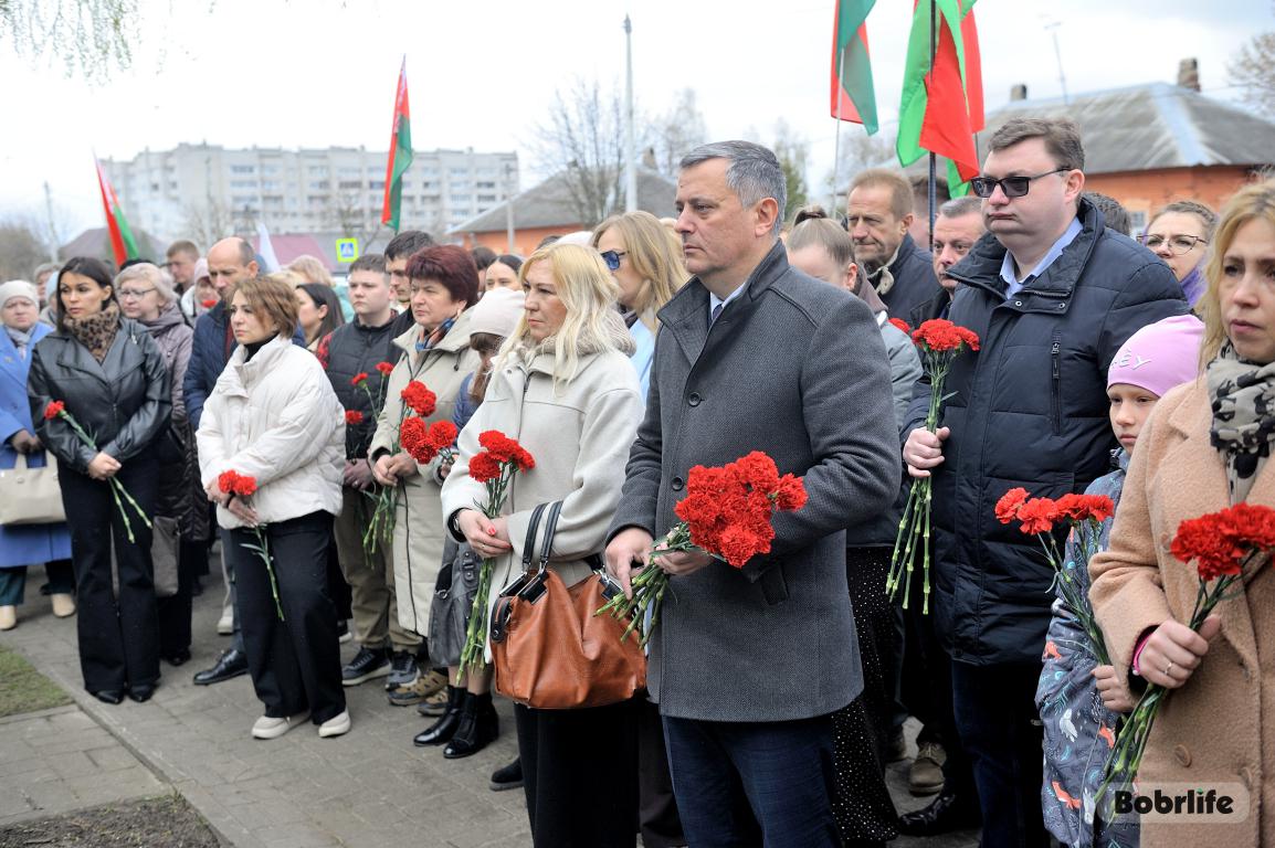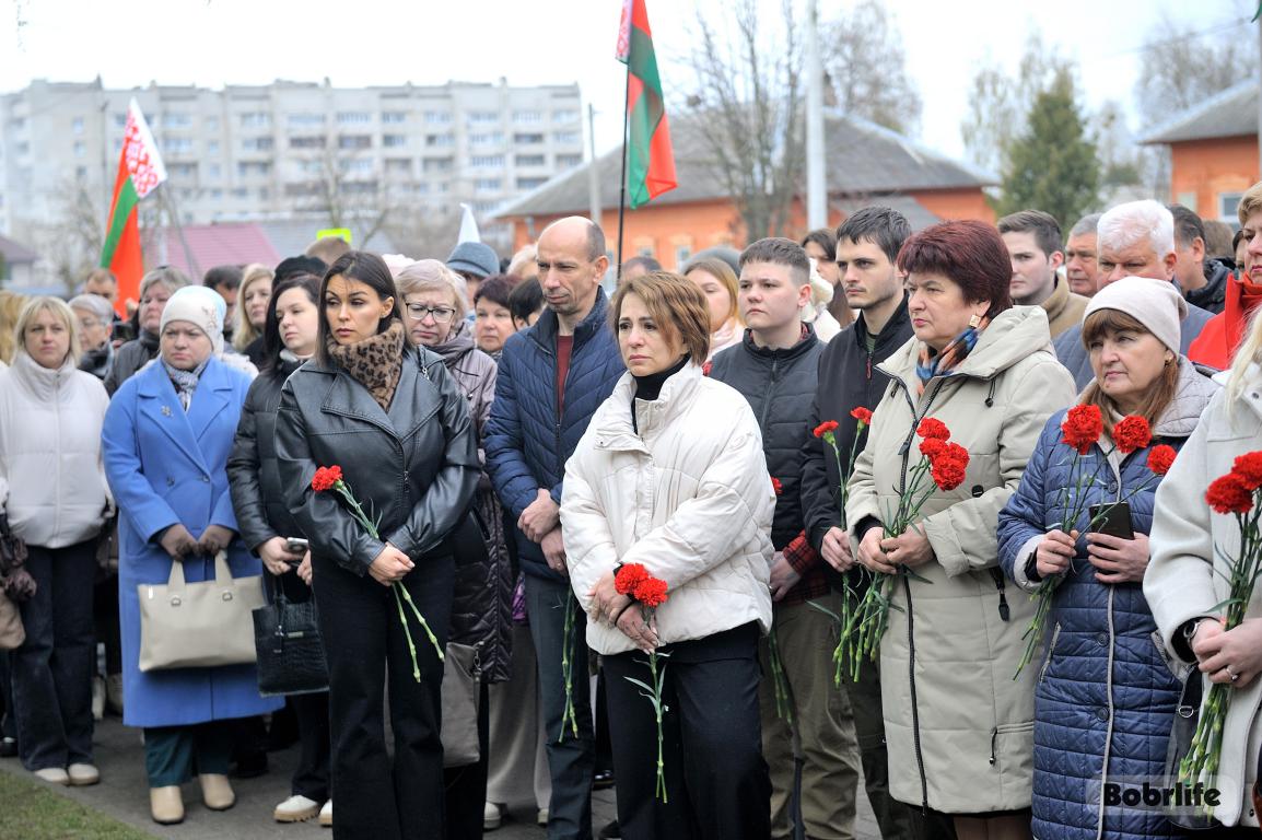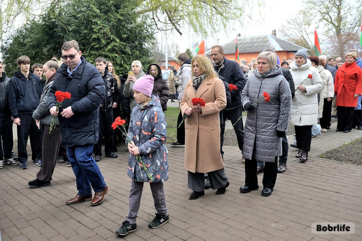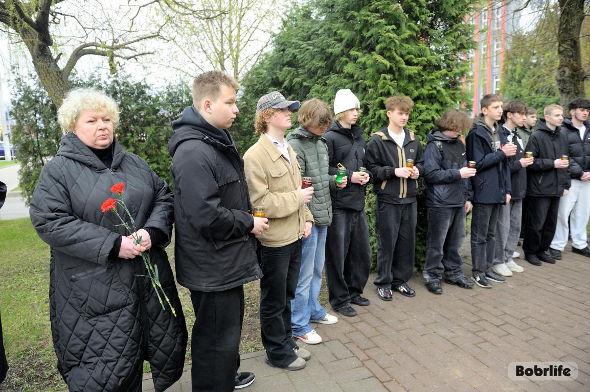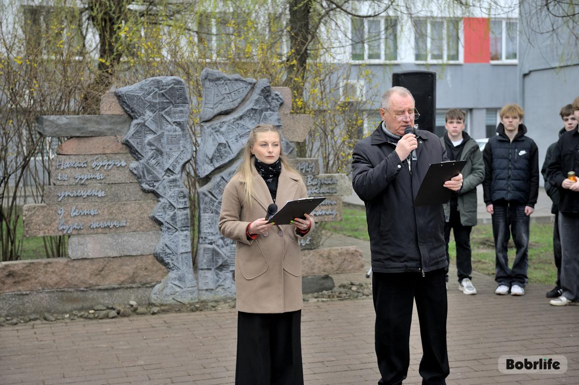 В этот памятный, важный для каждого белоруса день небо над Бобруйском затянуло серыми тучами. Моросил мелкий холодный дождь, словно сама природа оплакивала жертв великой трагедии, но ни капризы погоды, ни пронизывающий ветер не заставили бобруйчан остаться дома. Люди пришли к мемориалу, чтобы вспомнить и оплакать тех, чьи судьбы оборвались в кровавых фашистских застенках. Юноши декламировали стихотворения, призывая не предавать забвению тех, кто ценой своей жизни вошел в бессмертие.