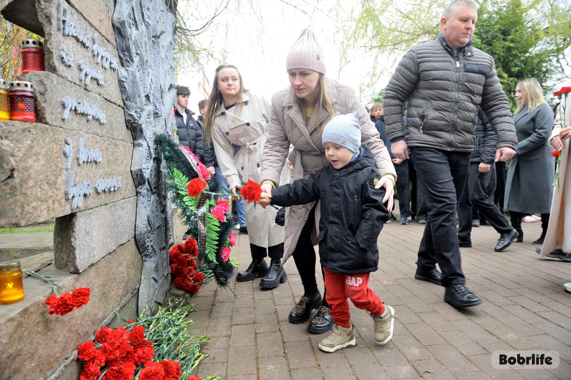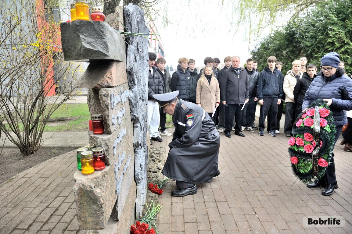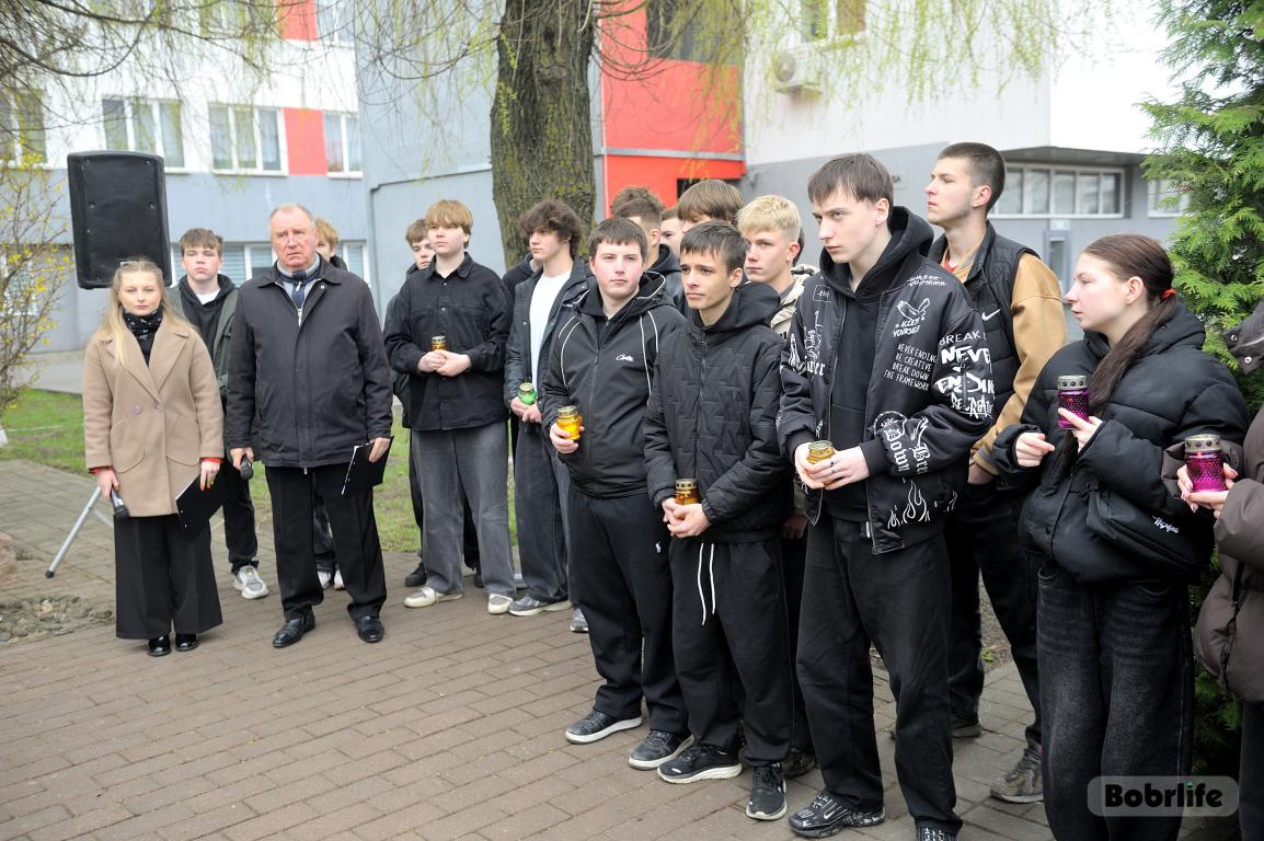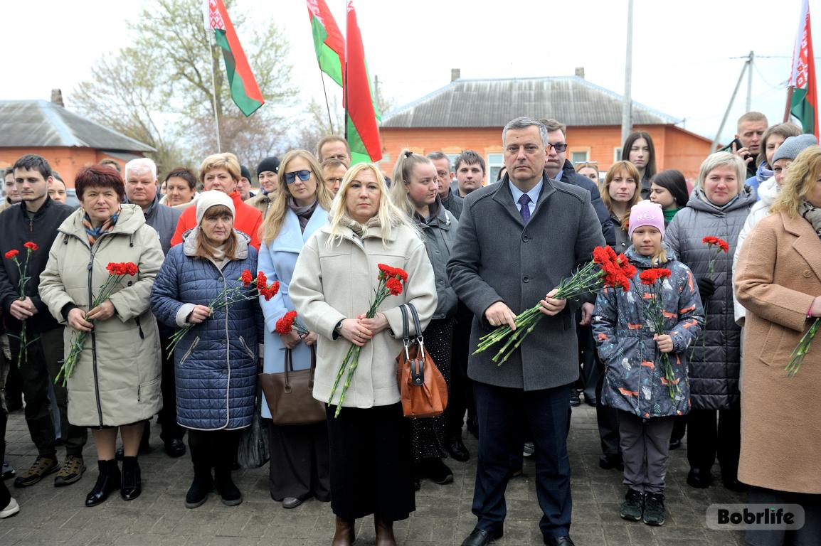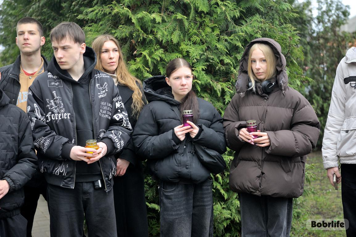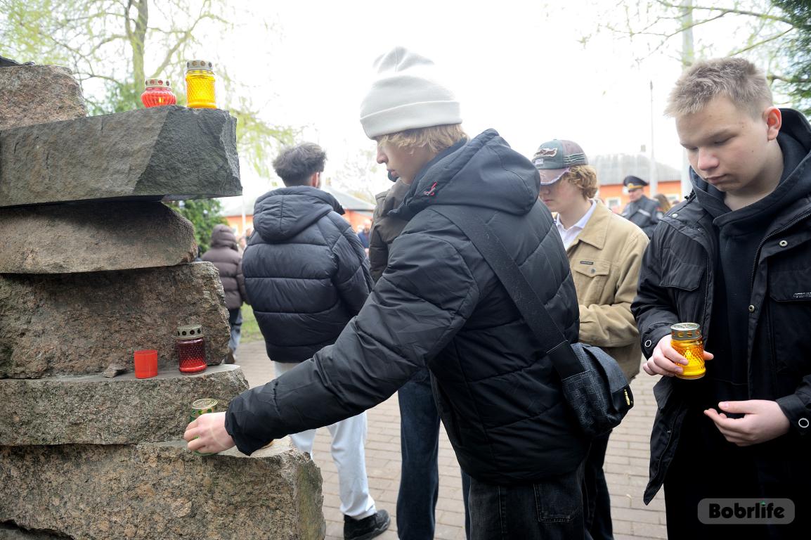 В этот памятный, важный для каждого белоруса день небо над Бобруйском затянуло серыми тучами. Моросил мелкий холодный дождь, словно сама природа оплакивала жертв великой трагедии, но ни капризы погоды, ни пронизывающий ветер не заставили бобруйчан остаться дома. Люди пришли к мемориалу, чтобы вспомнить и оплакать тех, чьи судьбы оборвались в кровавых фашистских застенках. Юноши декламировали стихотворения, призывая не предавать забвению тех, кто ценой своей жизни вошел в бессмертие.