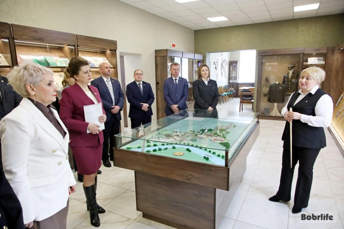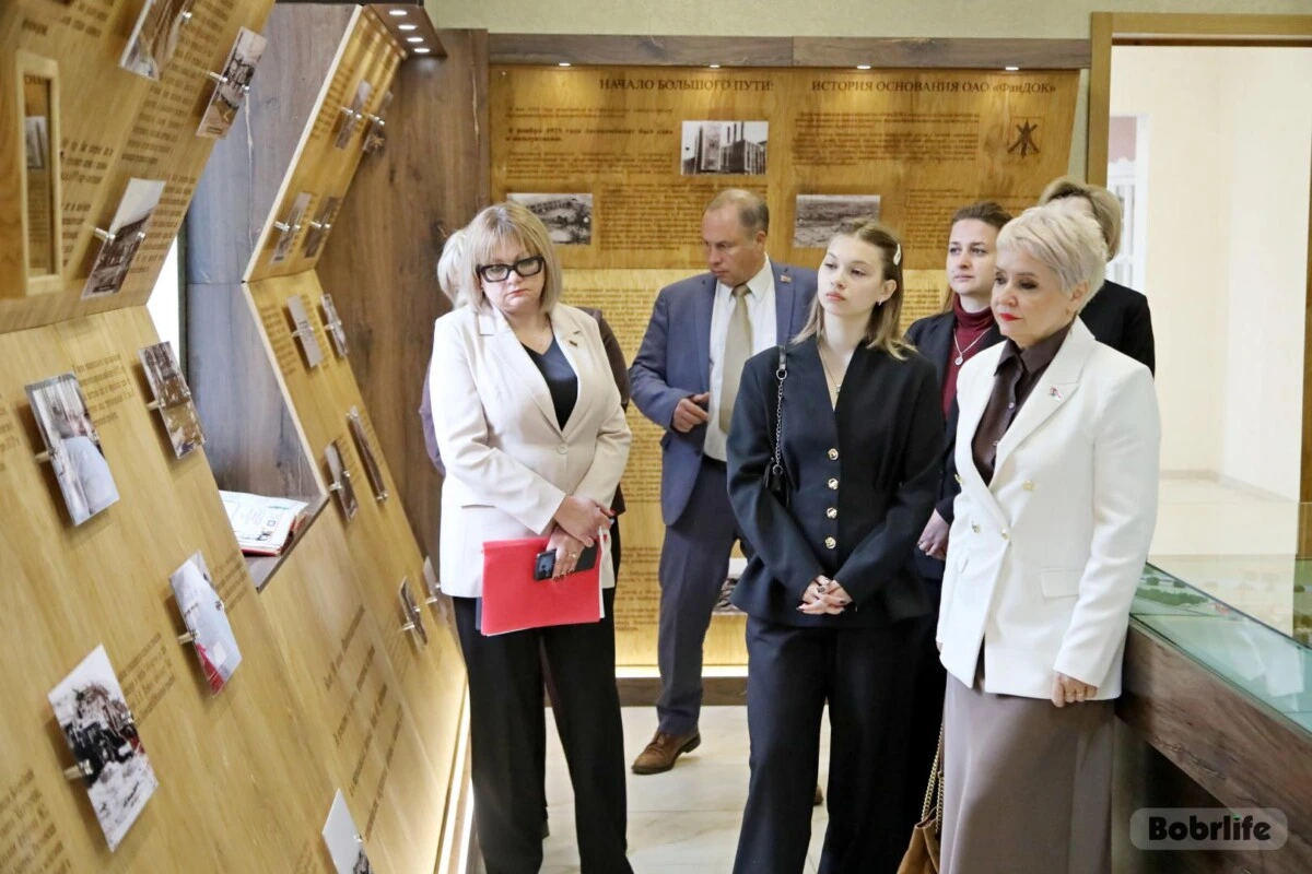 Заместитель генерального директора ФанДОКа Марина Овсяник поделилась интересными фактами о героическом прошлом работников в годы Великой Отечественной войны и периоде восстановления городского хозяйства, трудовых династиях и современных успехах. Музейная комната создана силами коллектива, чтобы сохранить для потомков эпоху, объединившую многие поколения фандоковцев. В этот день экспозиция пополнилась еще одним ценным экспонатом: Ирина Рынейская вручила книгу «Бобруйск – город мужества и славы», посвященную памятным местам, мемориалам воинской славы, увековечившим бессмертный подвиг советских воинов. Издание было подготовлено в год 80-летия Победы по инициативе Бобруйского горсовета депутатов и при поддержке Могилевской областной ассоциации местных Советов депутатов.