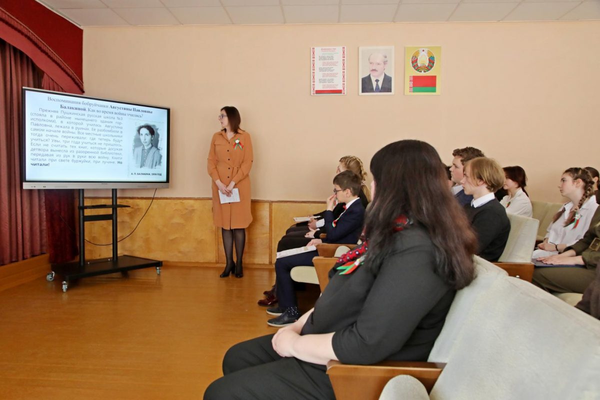 Ребятам рассказали и о всех ужасах оккупации БССР. О том, как на фронтах Великой Отечественной сражались более 1,3 млн. белорусов и уроженцев Беларуси. Войсковыми соединениями во время войны командовали 217 генералов и адмиралов – белорусов.