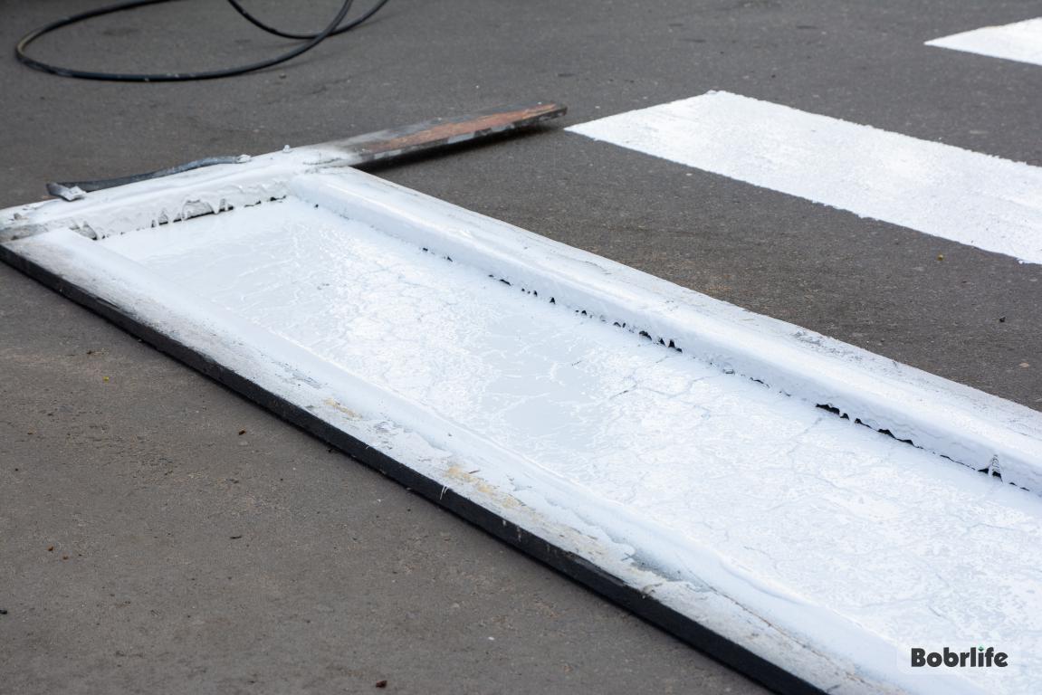 Там, где пока отсутствуют белые полосы, приходится порой ездить по памяти или интуитивно, что осложняет автомобилистам передвижение. Работники наносят на асфальт специальную краску, которая гарантирует долговечность разметки и ее видимость в течение длительного времени.