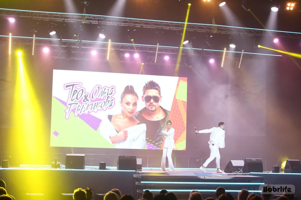 Поздравить бобруйчан с Днем города приехали солисты вокальной группы «Чистый голос» и артисты белорусской эстрады Тео и Ольга Рыжикова, которые являют собой яркий семейный и творческий дуэт. Гости подарили бобруйчанам прекрасное настроение, волну позитива и горячих эмоций. А зрители подпевали талантливым исполнителям, бурно аплодировали, танцевали и кричали «Браво!».