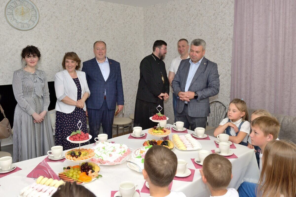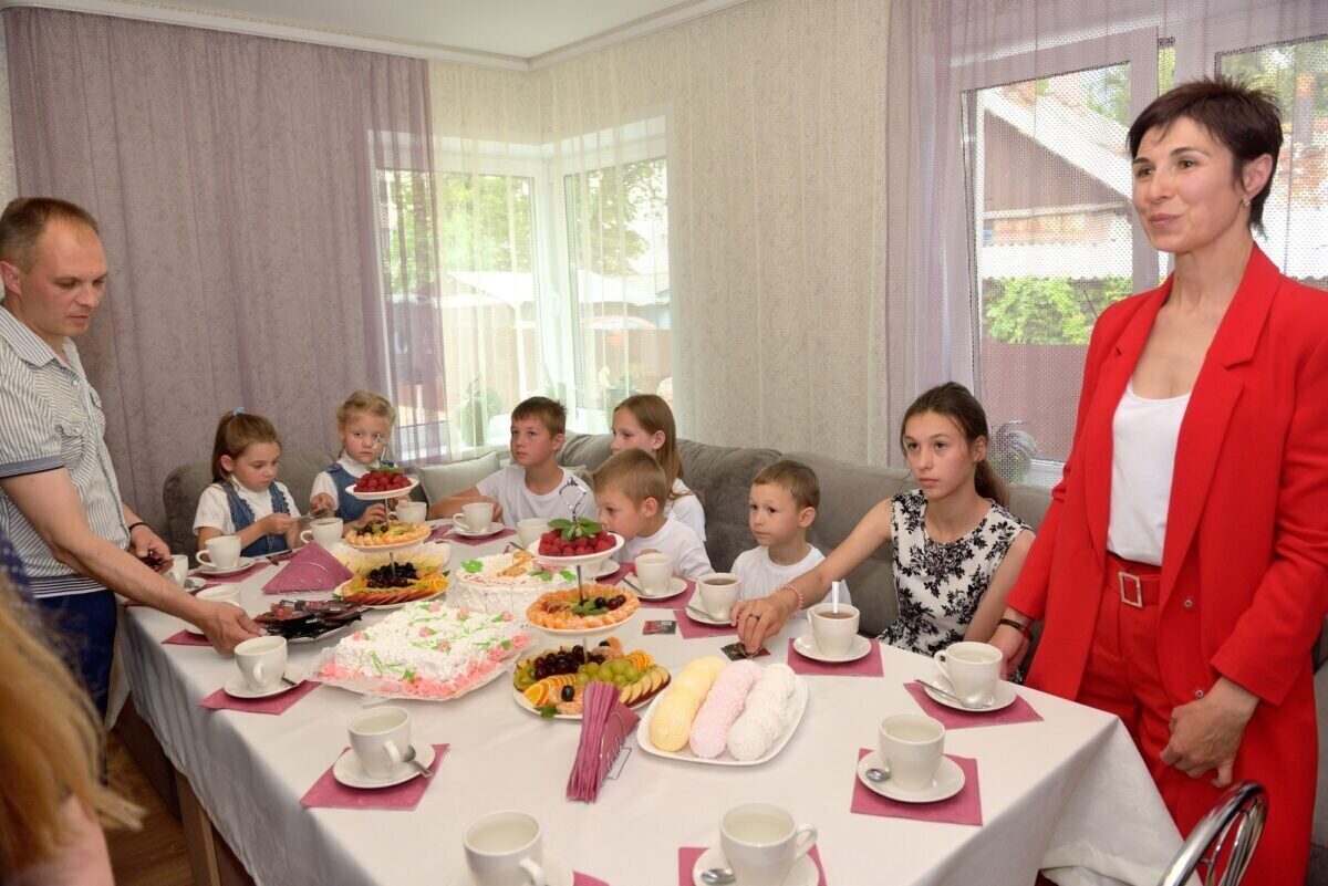 Двухэтажный коттедж обрел 1 июля семейный уют и тепло. Теперь это не просто стены с ремонтом, а и второй дом для тех, кто отчаялся произнести когда-нибудь заветные слова «мама» и «папа». Вереница дарителей на радость детворе. Бытовая техника и игрушки, велосипед, самокат… Главный подарок все же дом, в котором теперь обретут счастье 11 детей Луцкиных. У семьи четверо своих, остальные – приемные, но тоже свои. Не все смогли присутствовать на открытии, – некоторые дети еще в летнем лагере на оздоровлении. В гостях побывали представители организаций, оказывавших помощь в строительстве, руководство города и делегаты от городов-побратимов Бобруйска.