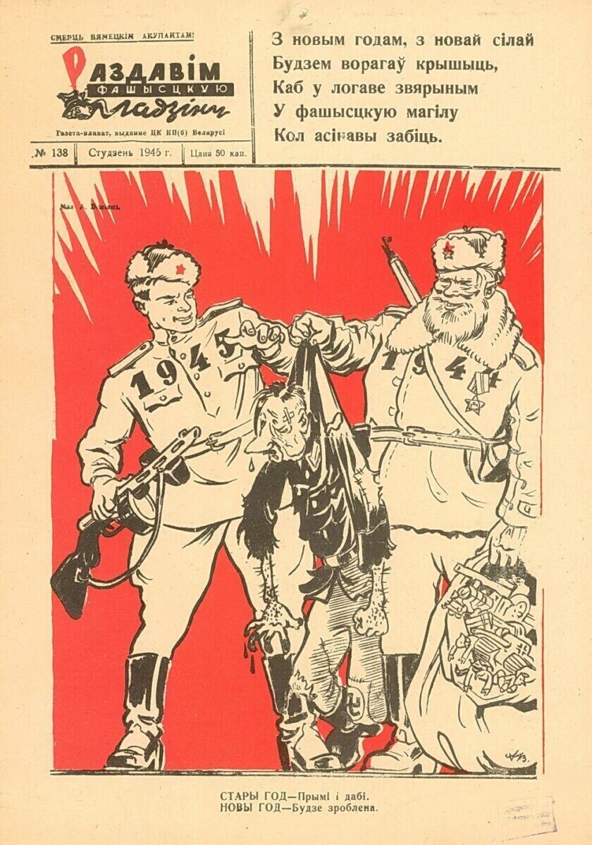 Набирала силу во всех своих проявлениях культурная жизнь. К школьным каникулам Белорусская государственная филармония организовала в белорусской столице концерты для ребят, которые посетили и наши школьники. И хотя еще не был восстановлен в Минске театр оперы и балета, его труппа давала премьеру оперы «Алеся» нашего известного композитора Евгения Тикоцкого на сцене окружного Дома Красной Армии. Другой знаменитый выходец из Бобруйска Михась Лыньков издал сборник новых рассказов «Астап» – первую, между прочим, книгу, выпущенную Белгосиздатом после освобождения Минска от ­немецко-фашистских захватчиков. Но война-то еще продолжалась. Поэтому нередки были выезды фронтовых бригад белорусских артистов в действующую армию, в составе которых были и наши земляки народные артисты БССР Владимир Владомирский и Исидор Болотин. В предновогодние дни 1944-го как раз Владимир Владомирский в одной из газет поздравил соотечественников и поделился планами на новый год: «В 1945 году я буду работать над со­зданием образа прославленного партизанского вожака – батьки Миная. Встречая новый год, я верю и убежден, что он будет годом окончательного разгрома фашистской Германии. Уже близок тот день, когда над Берлином, в самом логове издыхающего зверя, будет водружен стяг победы всех свободолюбивых народов мира. Слава доблестной Красной Армии и ее полководцу товарищу Сталину!».