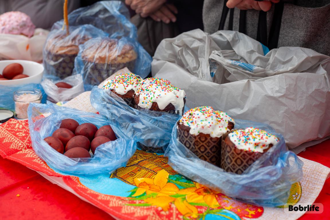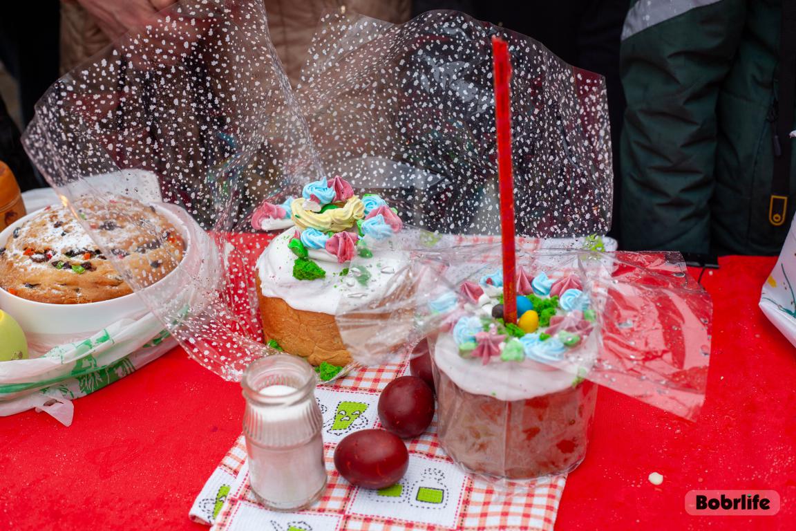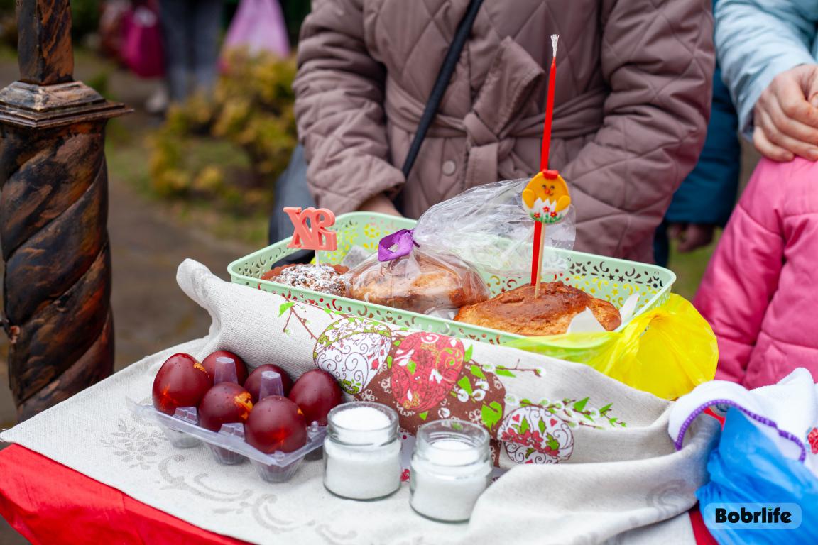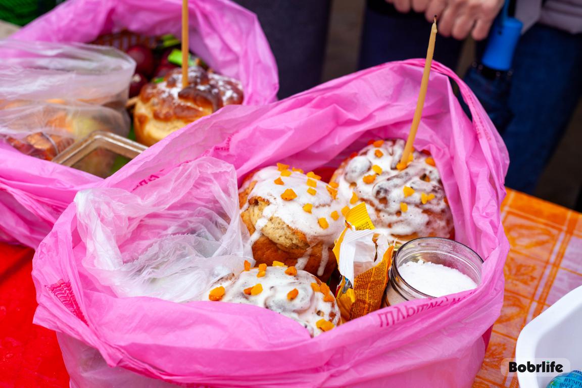 В Великую субботу в храме святого пророка Илии Бобруйска прошло традиционное освящение куличей, яиц и творожных пасх. Прихожане принесли свои угощения, чтобы благословить их перед разговением после Великого поста.
