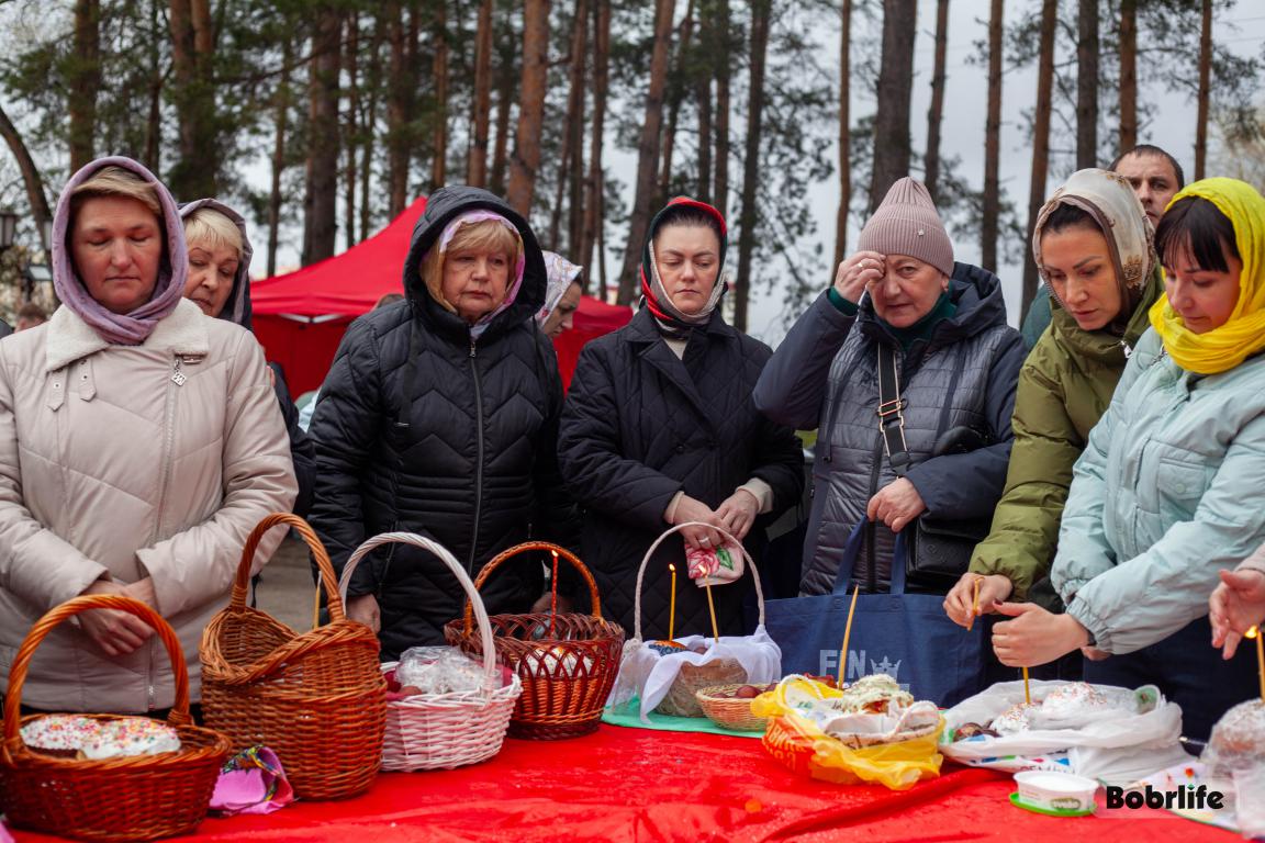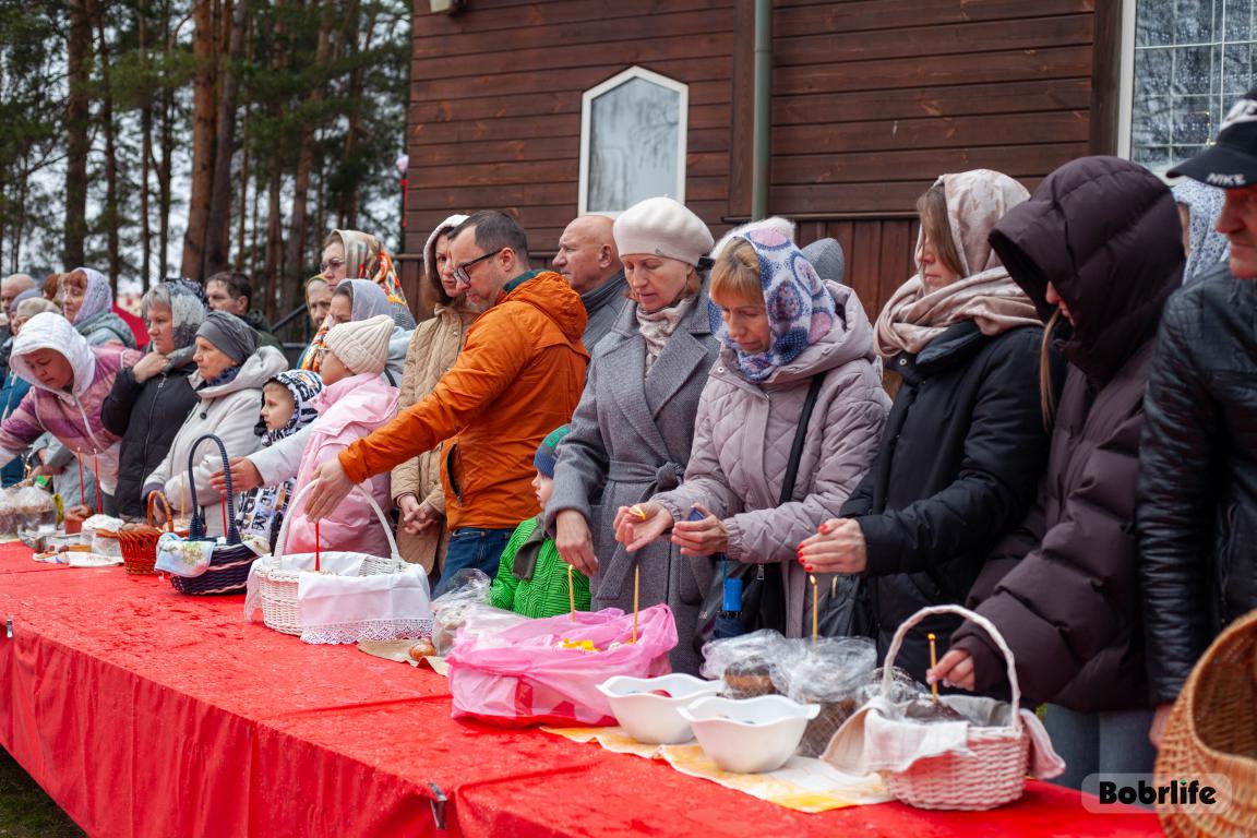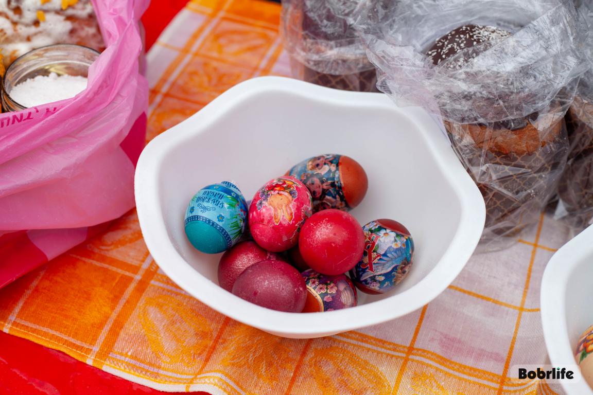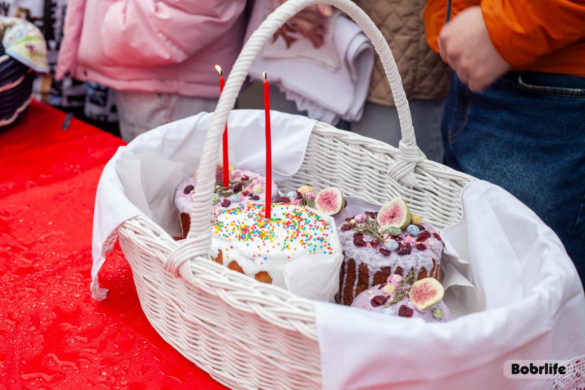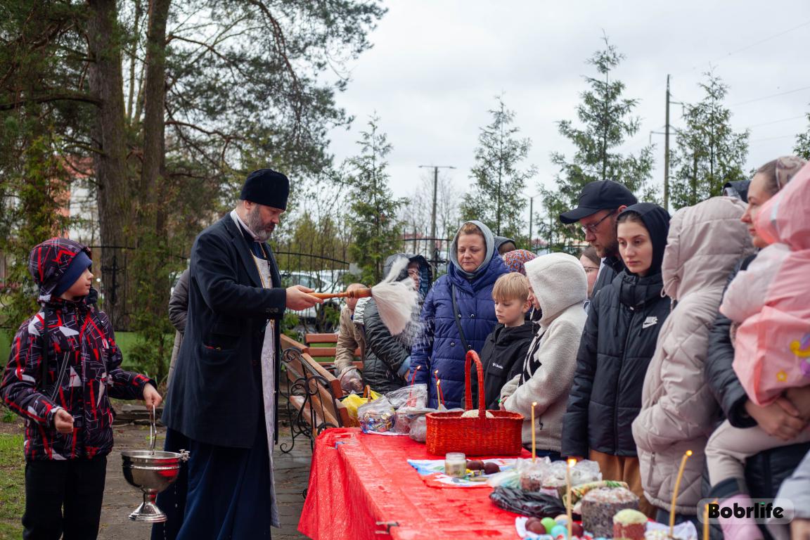 В Великую субботу в храме святого пророка Илии Бобруйска прошло традиционное освящение куличей, яиц и творожных пасх. Прихожане принесли свои угощения, чтобы благословить их перед разговением после Великого поста.