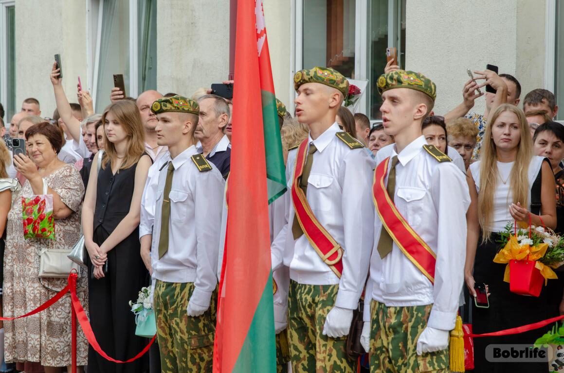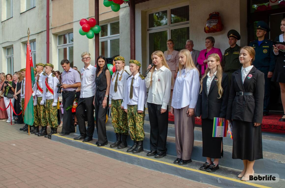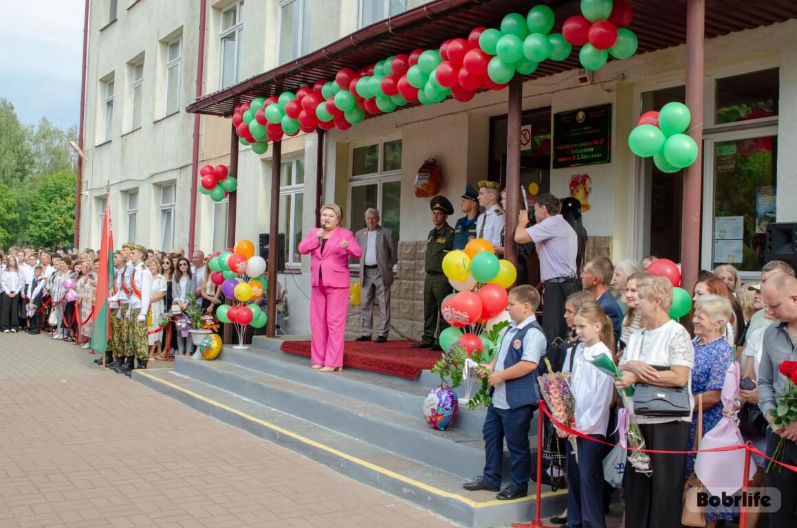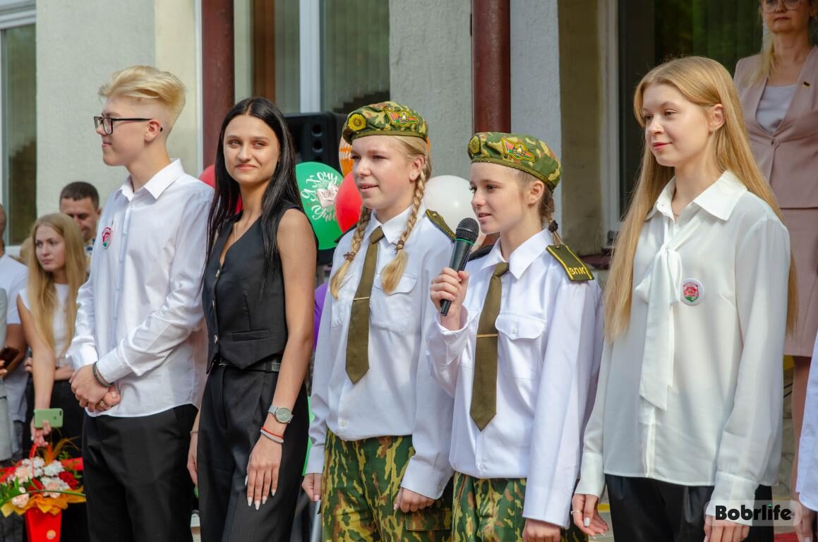 Поздравить ребят, делающих первые шаги в удивительный мир знаний, а также учащихся, которые в этом учебном году оканчивают школу, пришли почетные гости: Ольга Жук, депутат Палаты представителей Национального собрания Республики Беларусь, Ирина Прокопчик, первый заместитель главы администрации Ленинского района Бобруйска, Станислав Румянцев, генерал-майор, командующий 5-й гвардейской танковой армией в 1990-е годы, Павел Готовчиц, командир 147-го зенитного ракетного полка, Павел Шерснев, депутат Бобруйского городского Совета депутатов, первый заместитель начальника Бобруйского горрайотдела по ЧС.