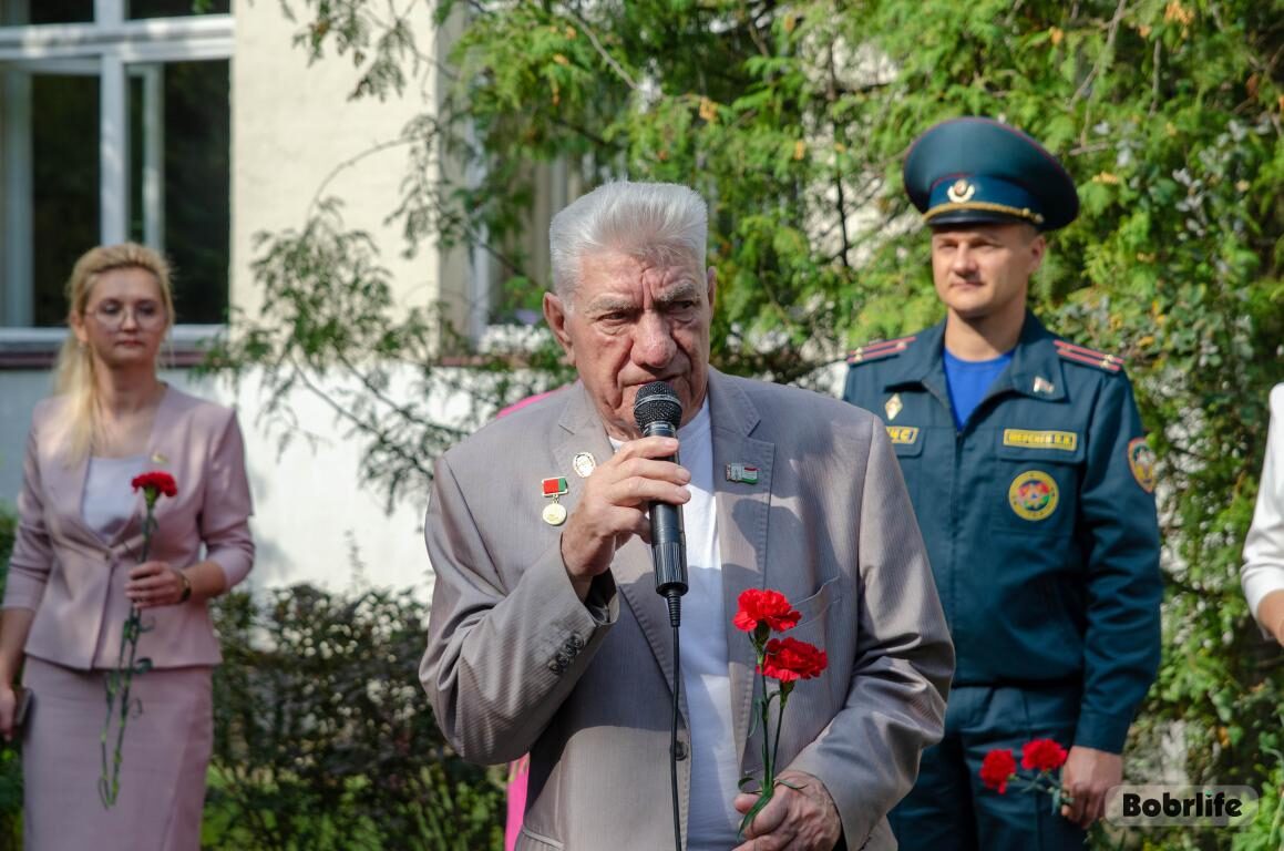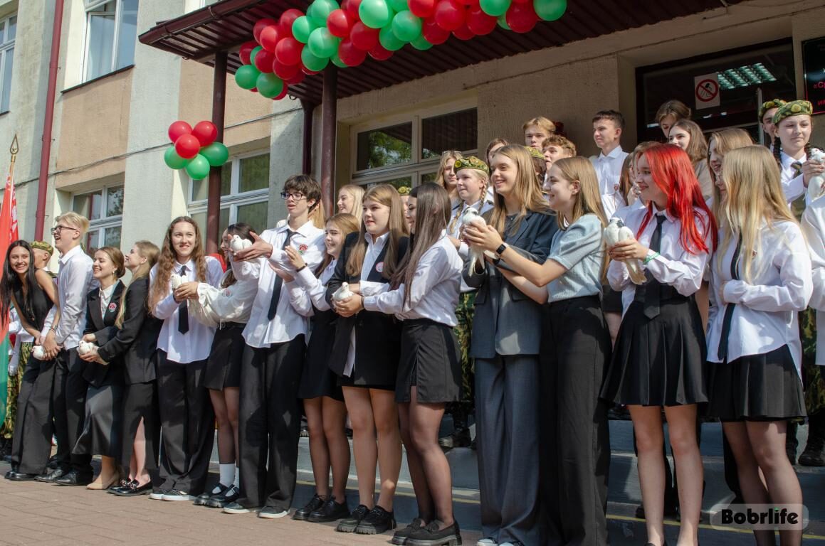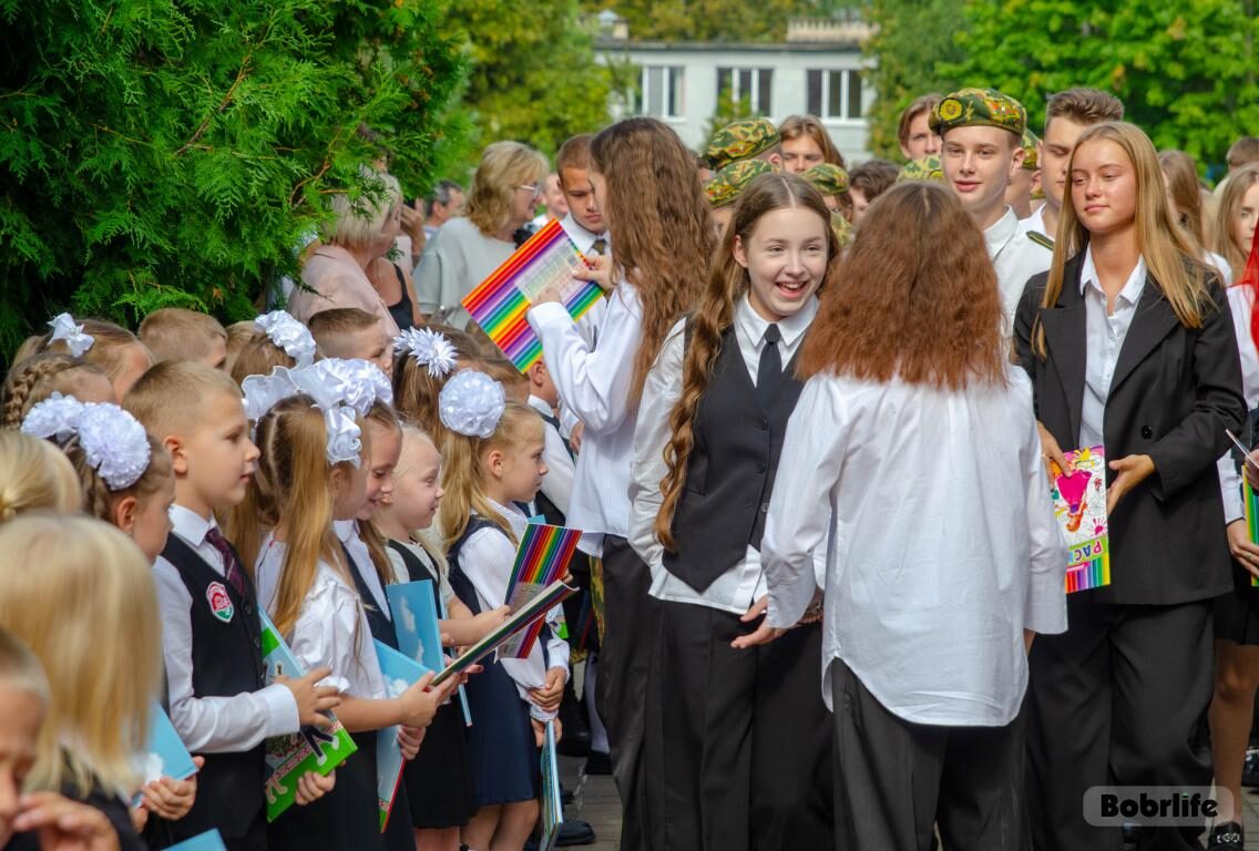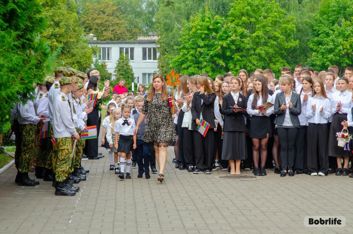 Поздравить ребят, делающих первые шаги в удивительный мир знаний, а также учащихся, которые в этом учебном году оканчивают школу, пришли почетные гости: Ольга Жук, депутат Палаты представителей Национального собрания Республики Беларусь, Ирина Прокопчик, первый заместитель главы администрации Ленинского района Бобруйска, Станислав Румянцев, генерал-майор, командующий 5-й гвардейской танковой армией в 1990-е годы, Павел Готовчиц, командир 147-го зенитного ракетного полка, Павел Шерснев, депутат Бобруйского городского Совета депутатов, первый заместитель начальника Бобруйского горрайотдела по ЧС.
