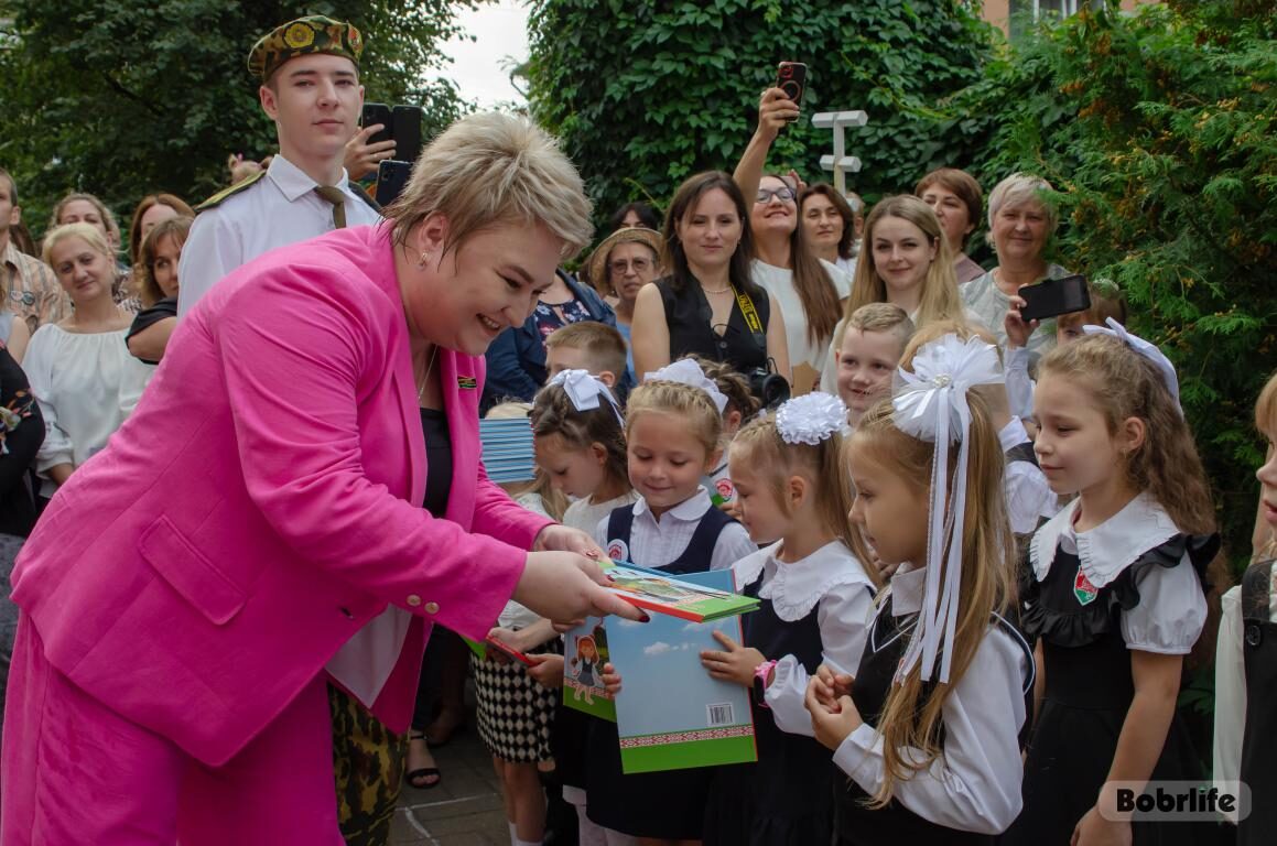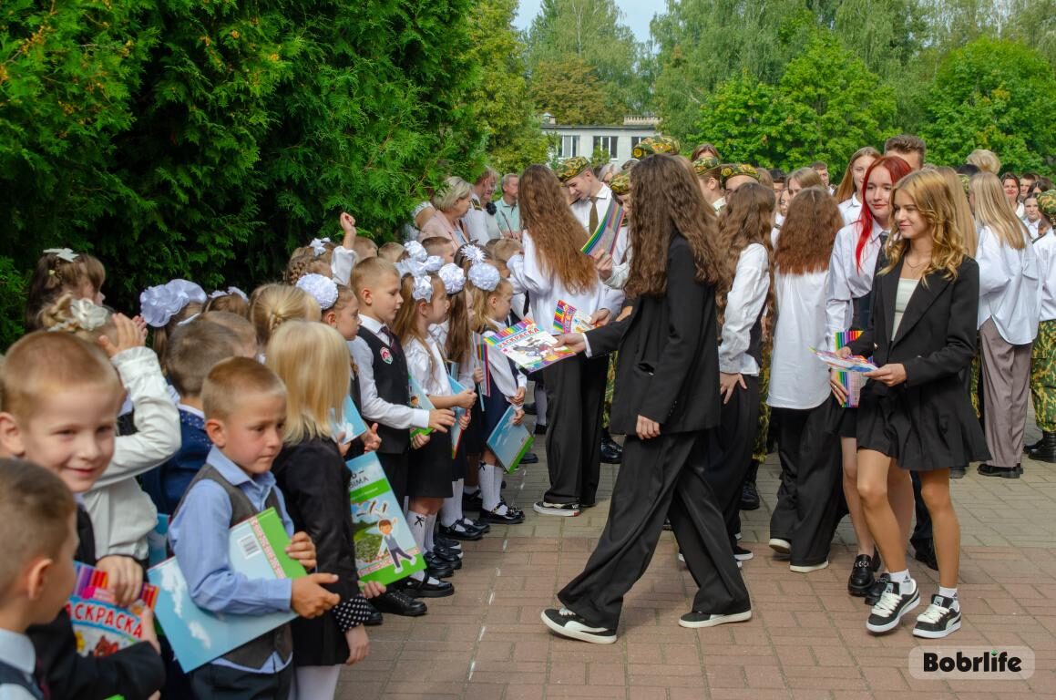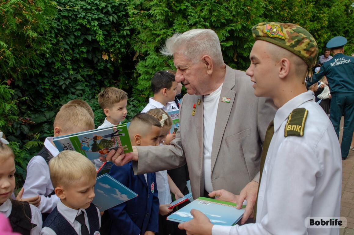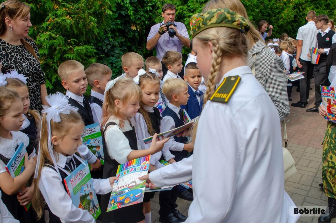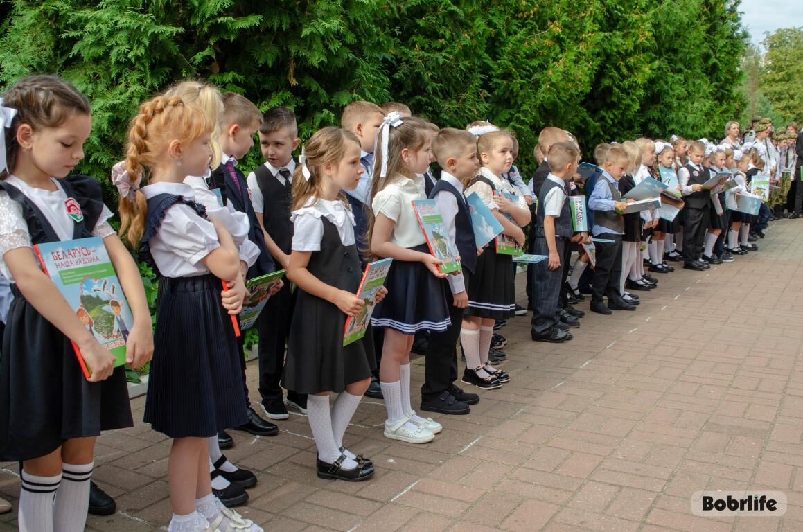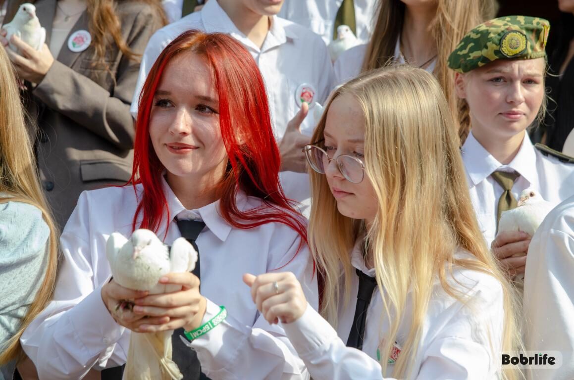 После этого депутат вручила первоклассникам книги «Беларусь – мая Радзiма». Юные бобруйчане внимательно слушали напутственные слова гостей и старшеклассников, а сами подготовили забавные стихи о школе. В завершение торжественной линейки школьники по традиции отпустили в небо белых голубей как символ добра и удачи на пути в страну знаний. Кроме этого, почетные гости, педагоги и учащиеся возложили цветы к памятнику Герою Советского Союза Вере Захаровне Хоружей.