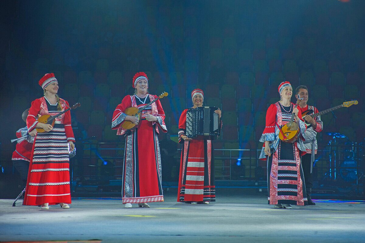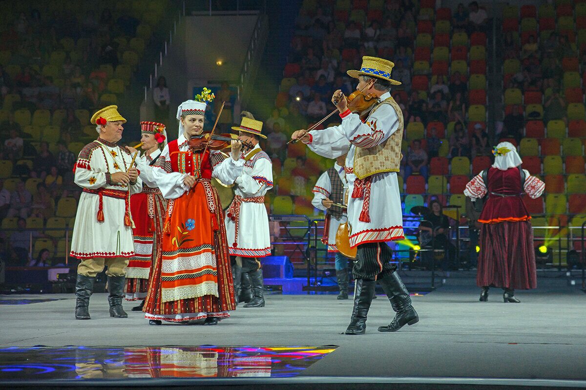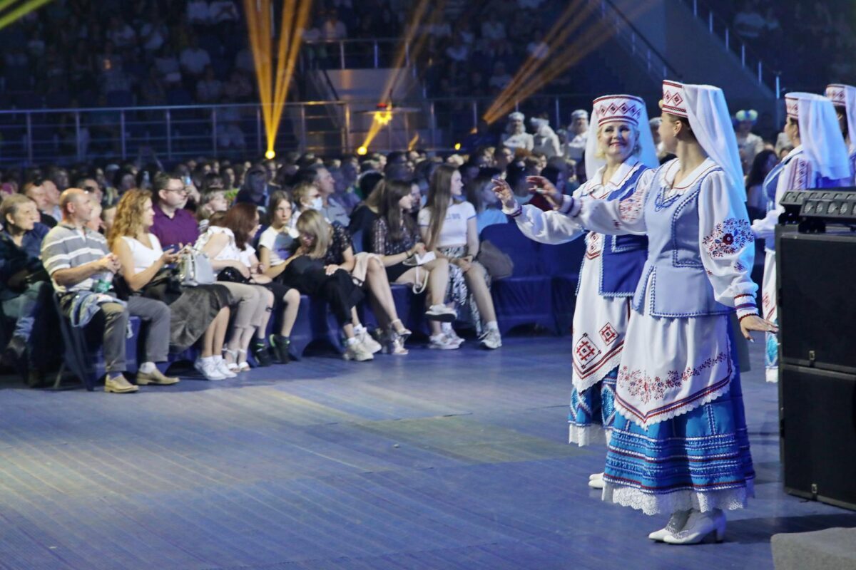 Торжественно подняли флаг фестиваля, и начался гала-концерт «Творчество объединяет друзей». Ведущие знакомили с легендами о Бобруйске и с коллективами, а на сцене перед зрителями предстали завораживающе красивые выступления, богатая программа танцевальных и вокальных номеров, виртуозное исполнение на национальных музыкальных инструментах.
